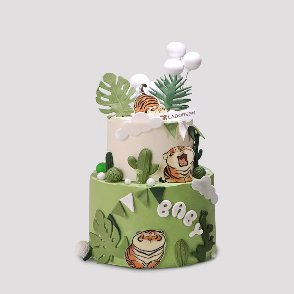 绿色萌萌虎定制蛋糕(单层小老虎随机摆放)