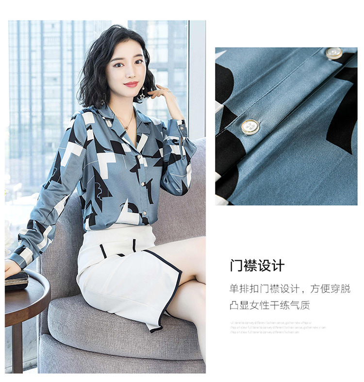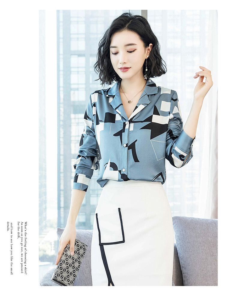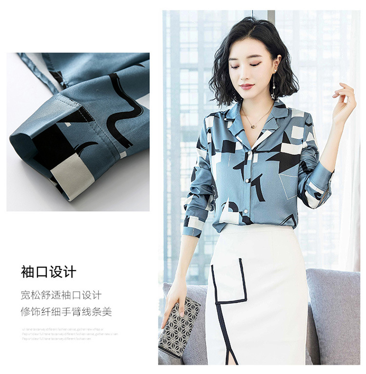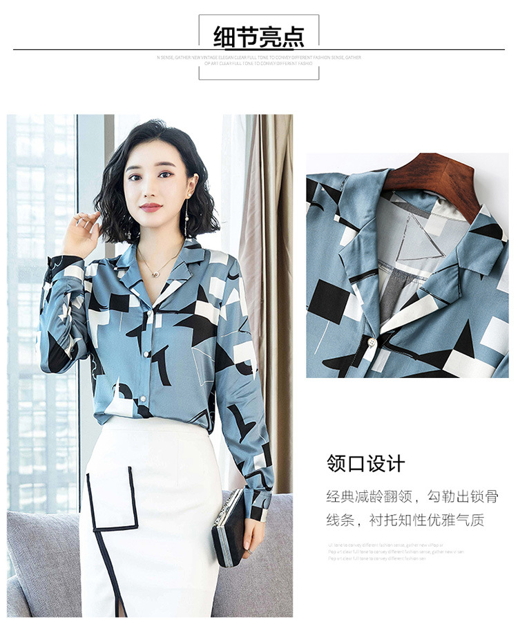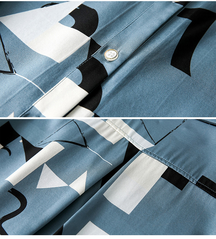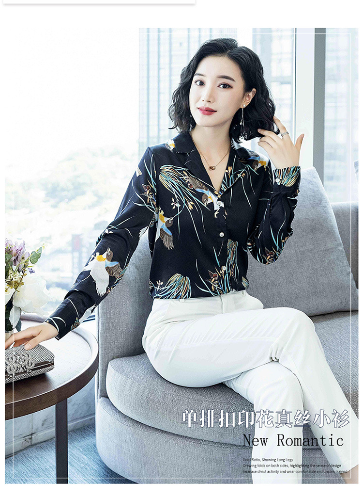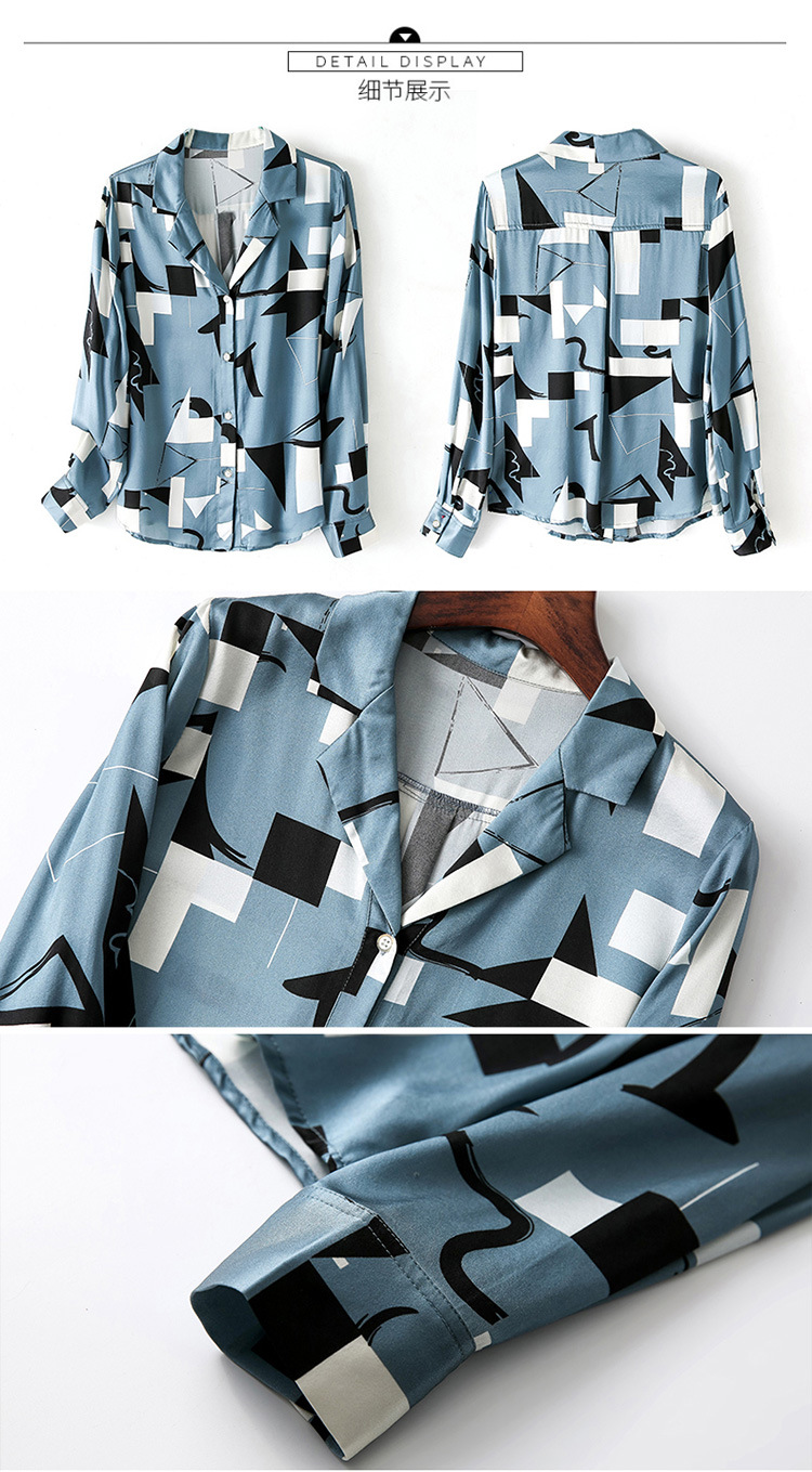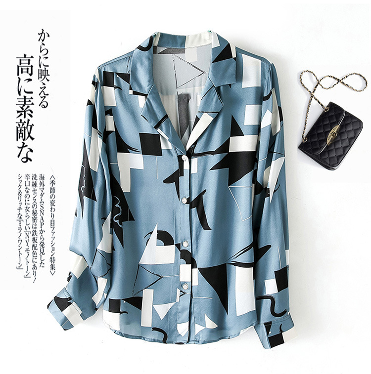 上海旗袍厂ASE-3316时尚复古不规则矩形印花翻领单排扣真丝小衫