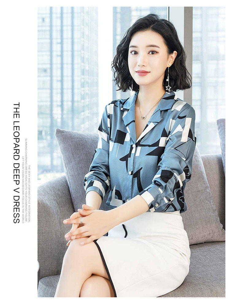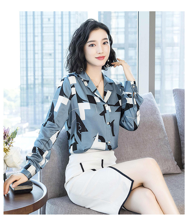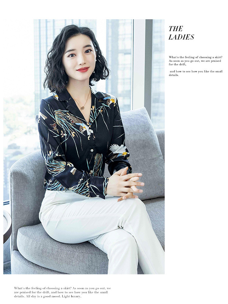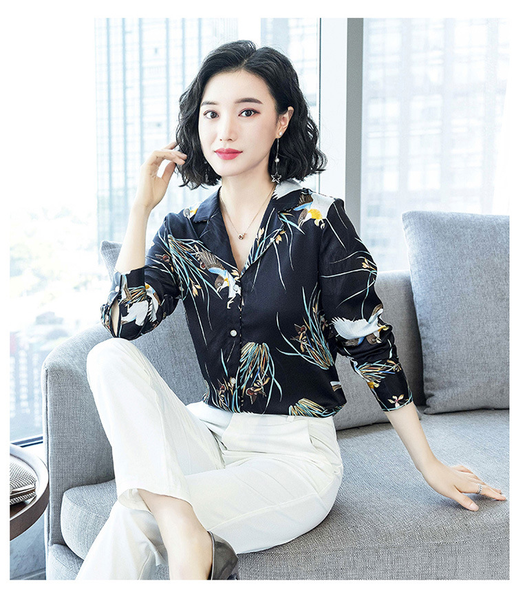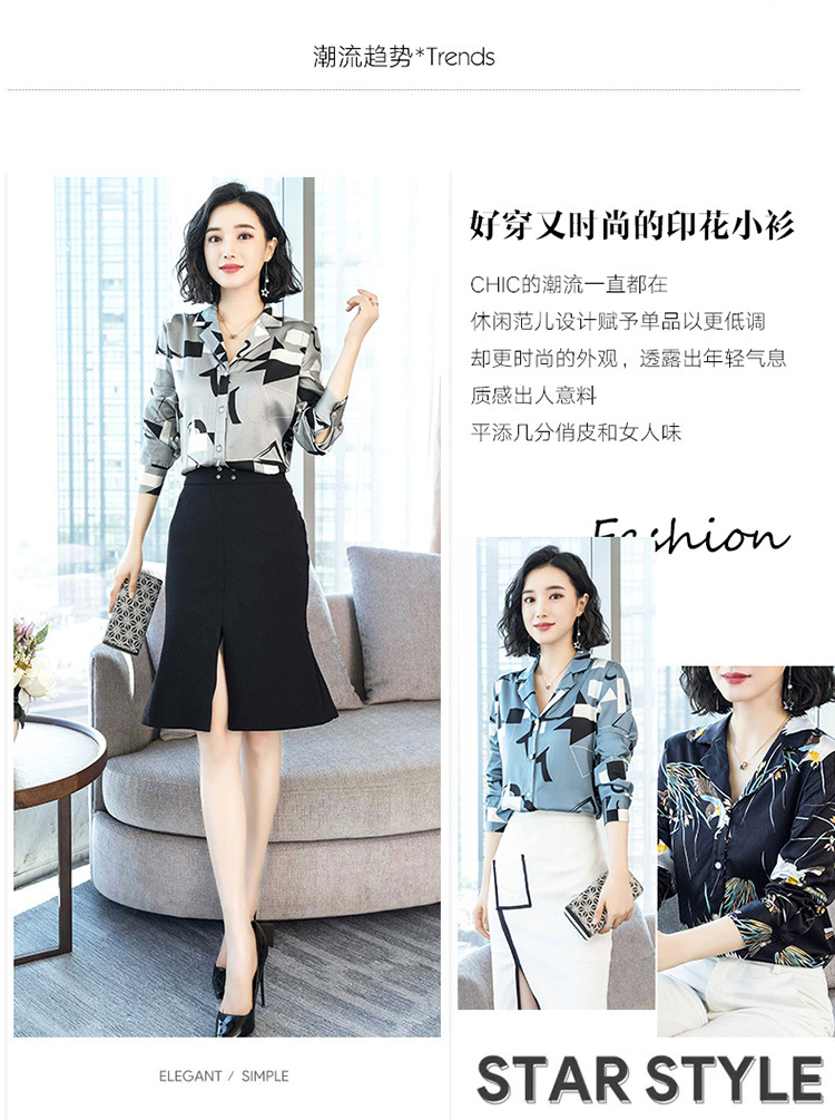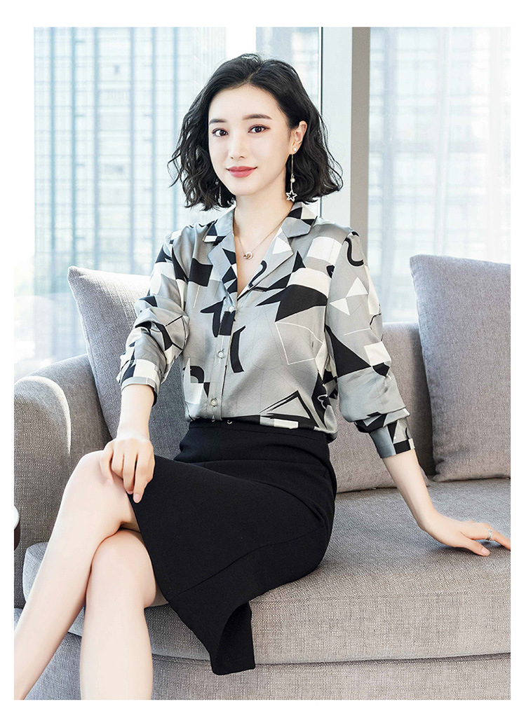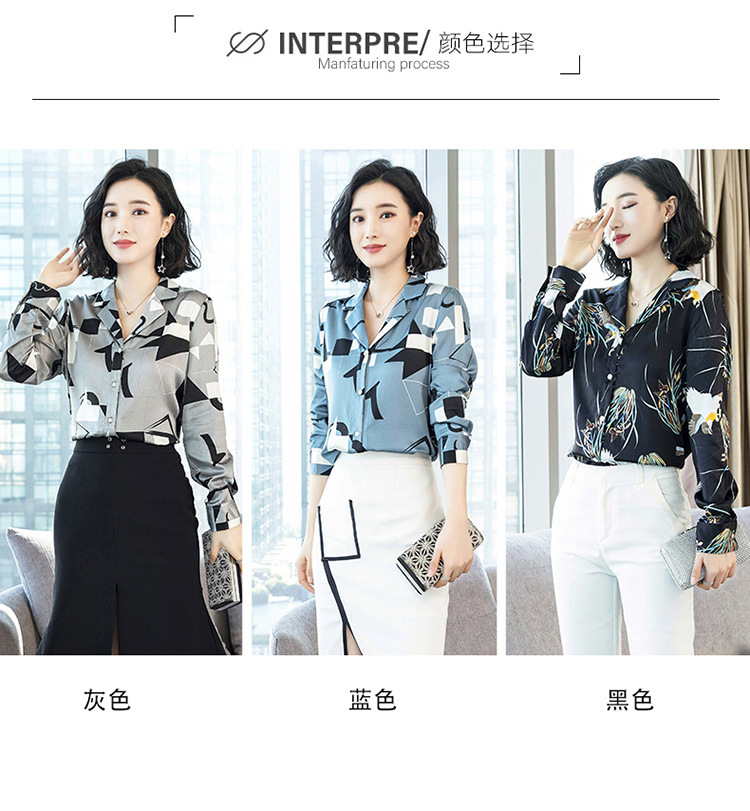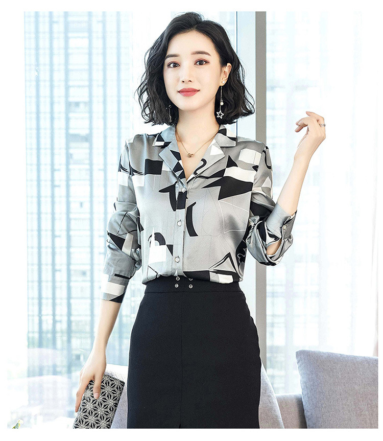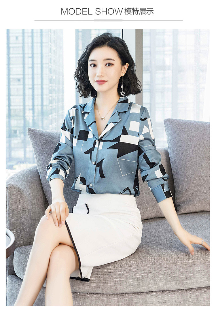 上海旗袍厂ASE-3316时尚复古不规则矩形印花翻领单排扣真丝小衫