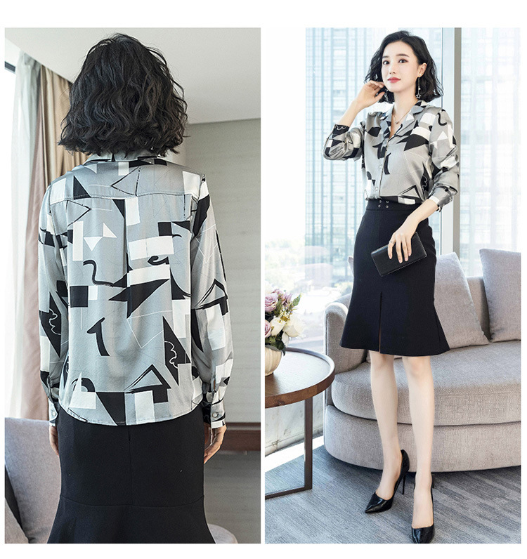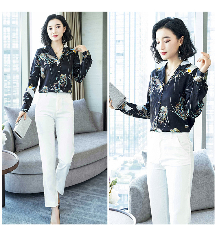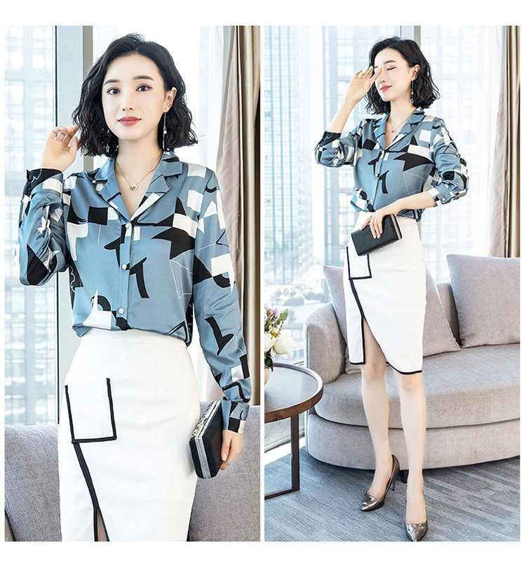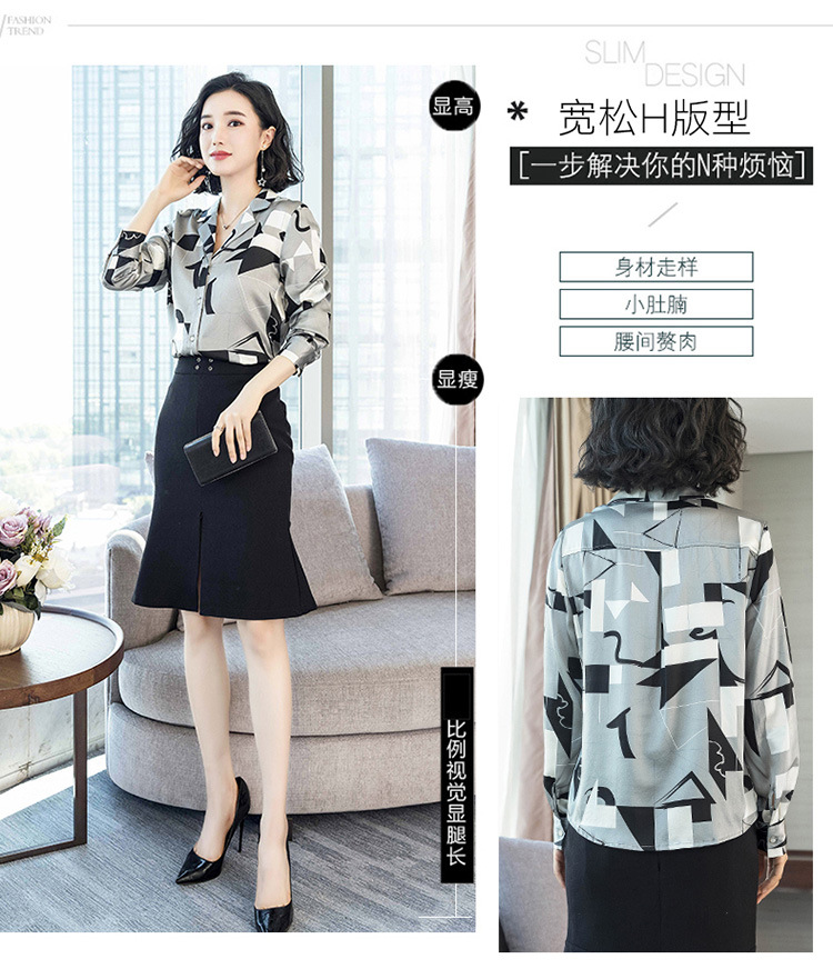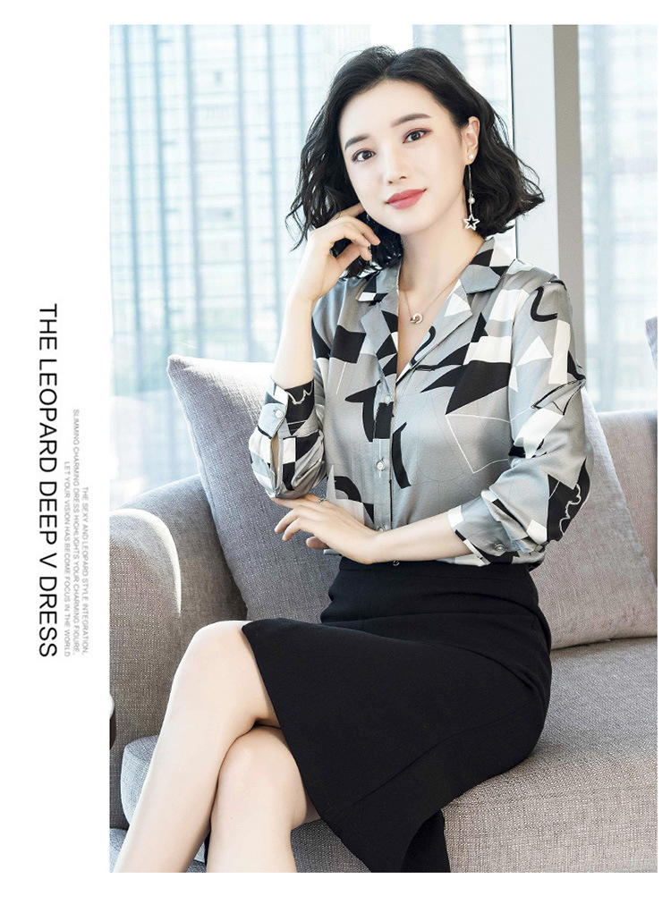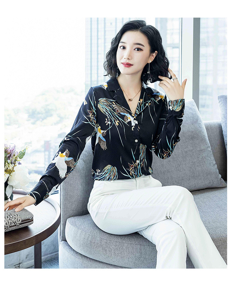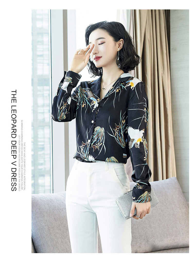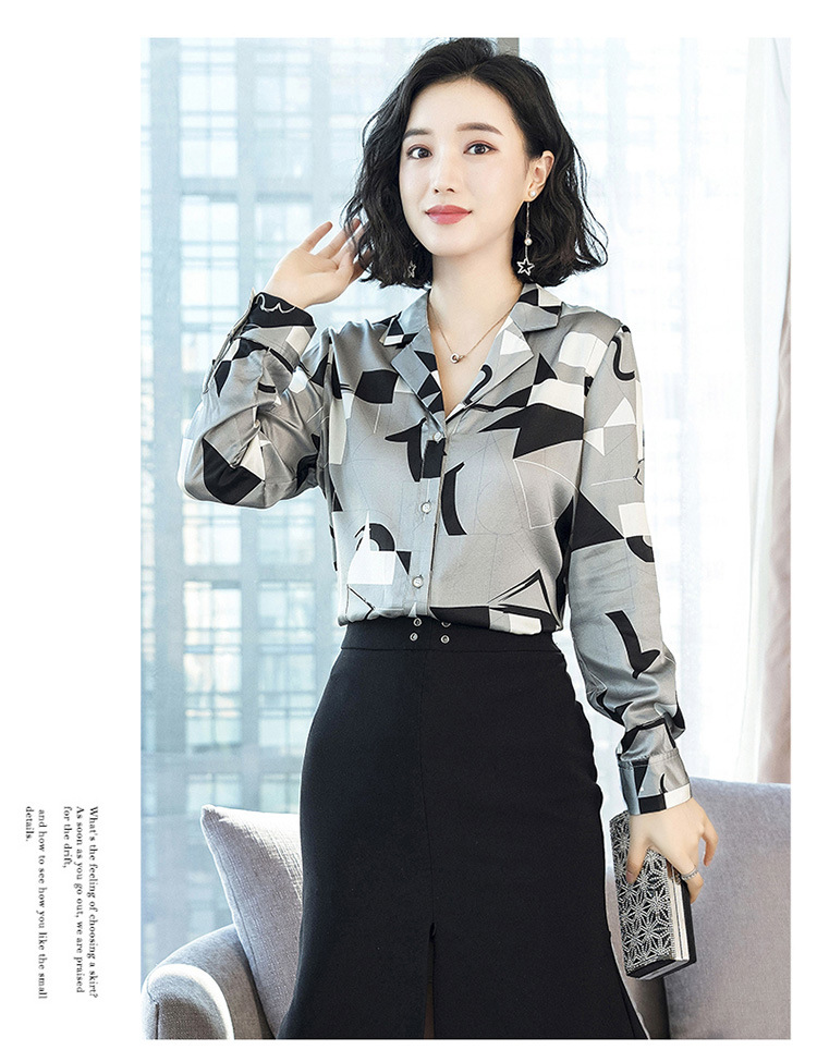 上海旗袍厂ASE-3316时尚复古不规则矩形印花翻领单排扣真丝小衫