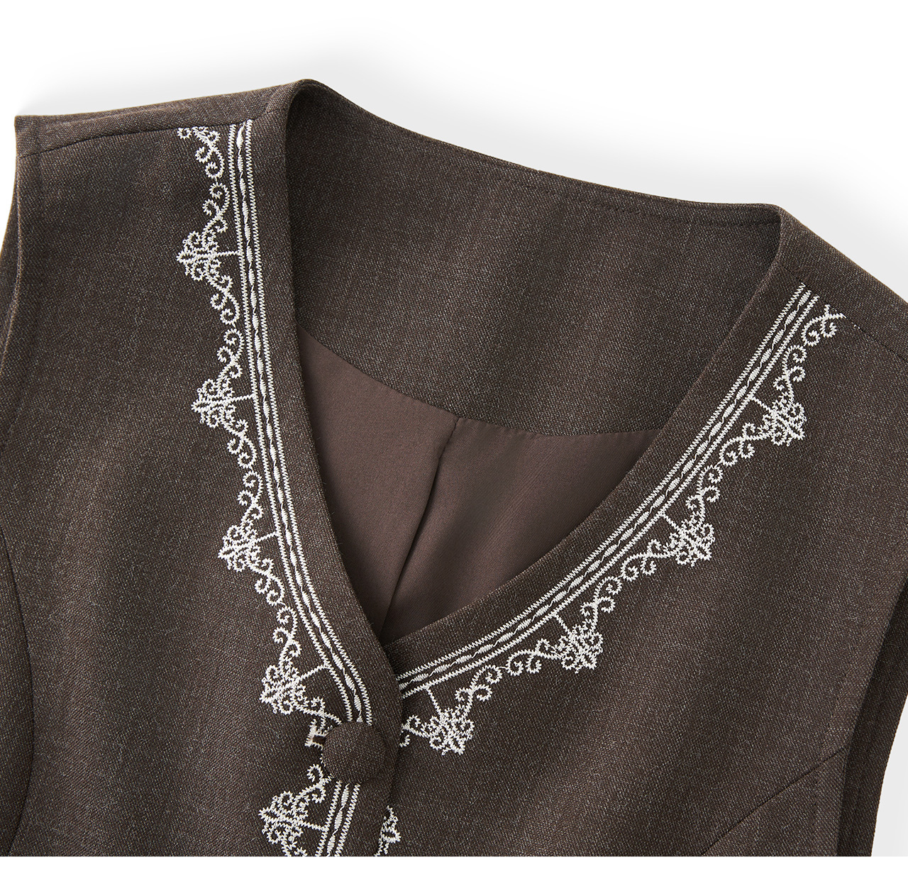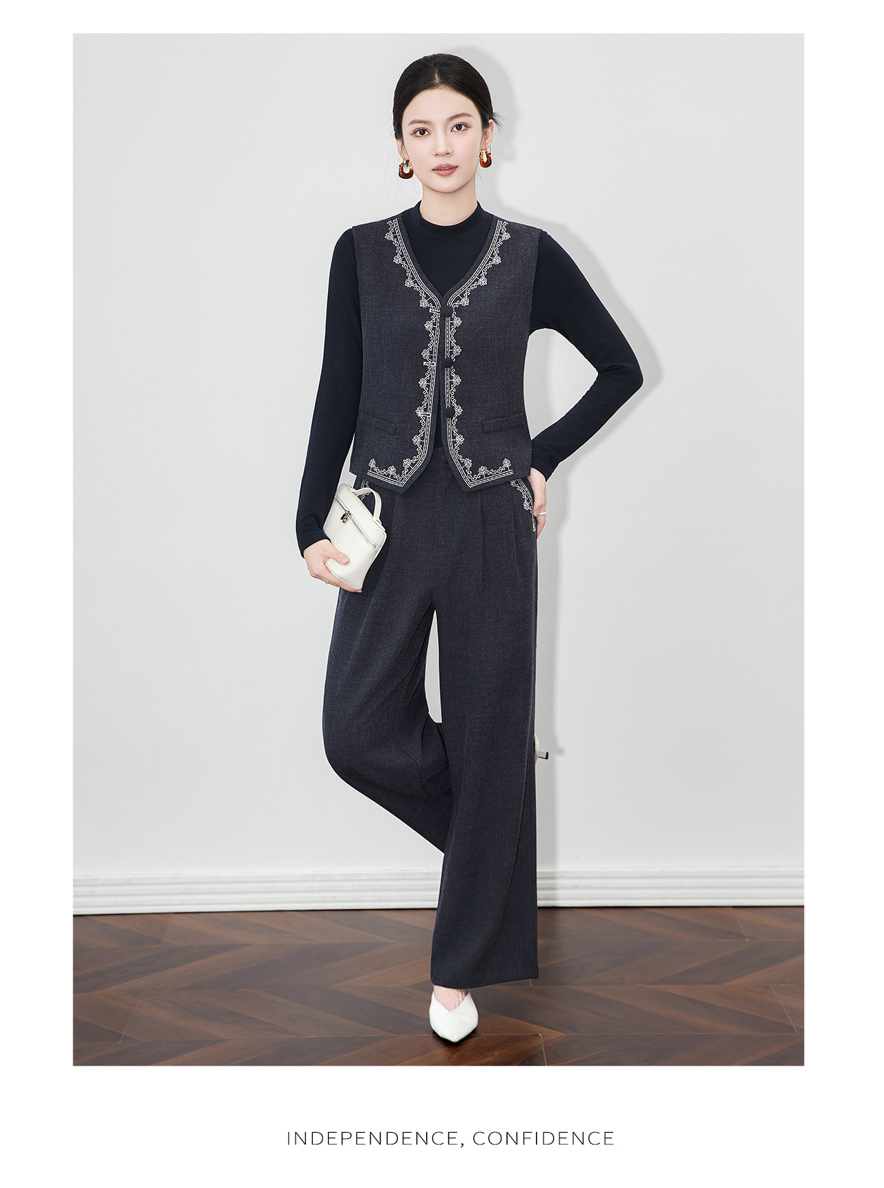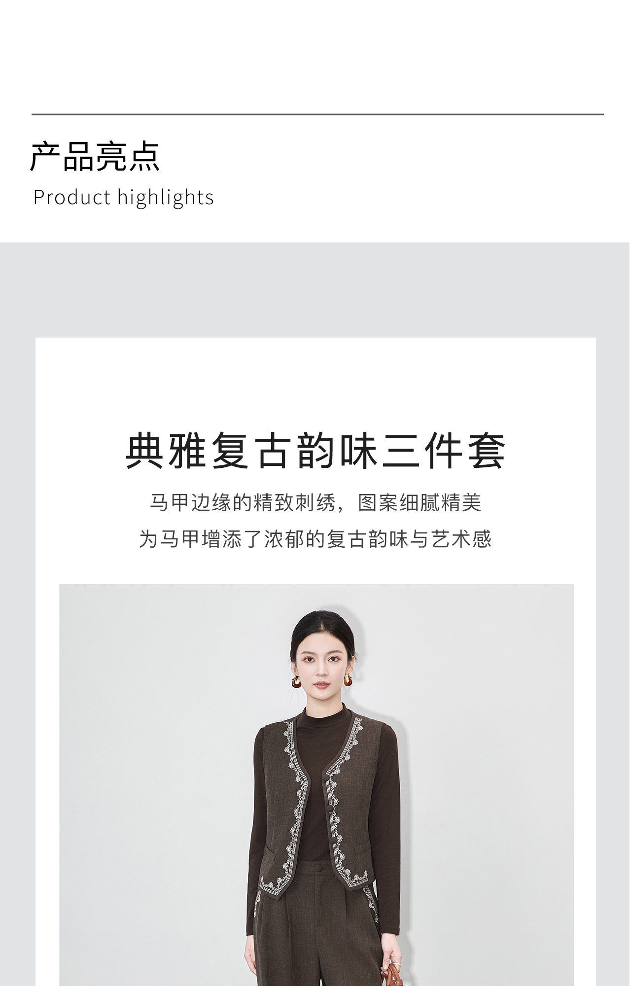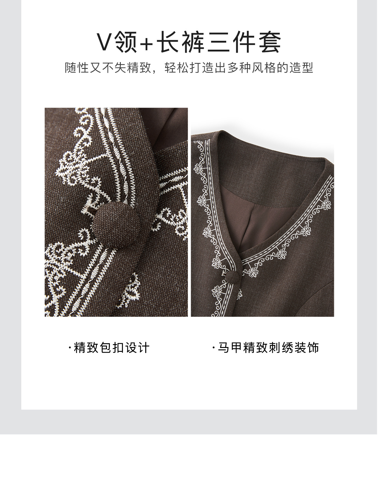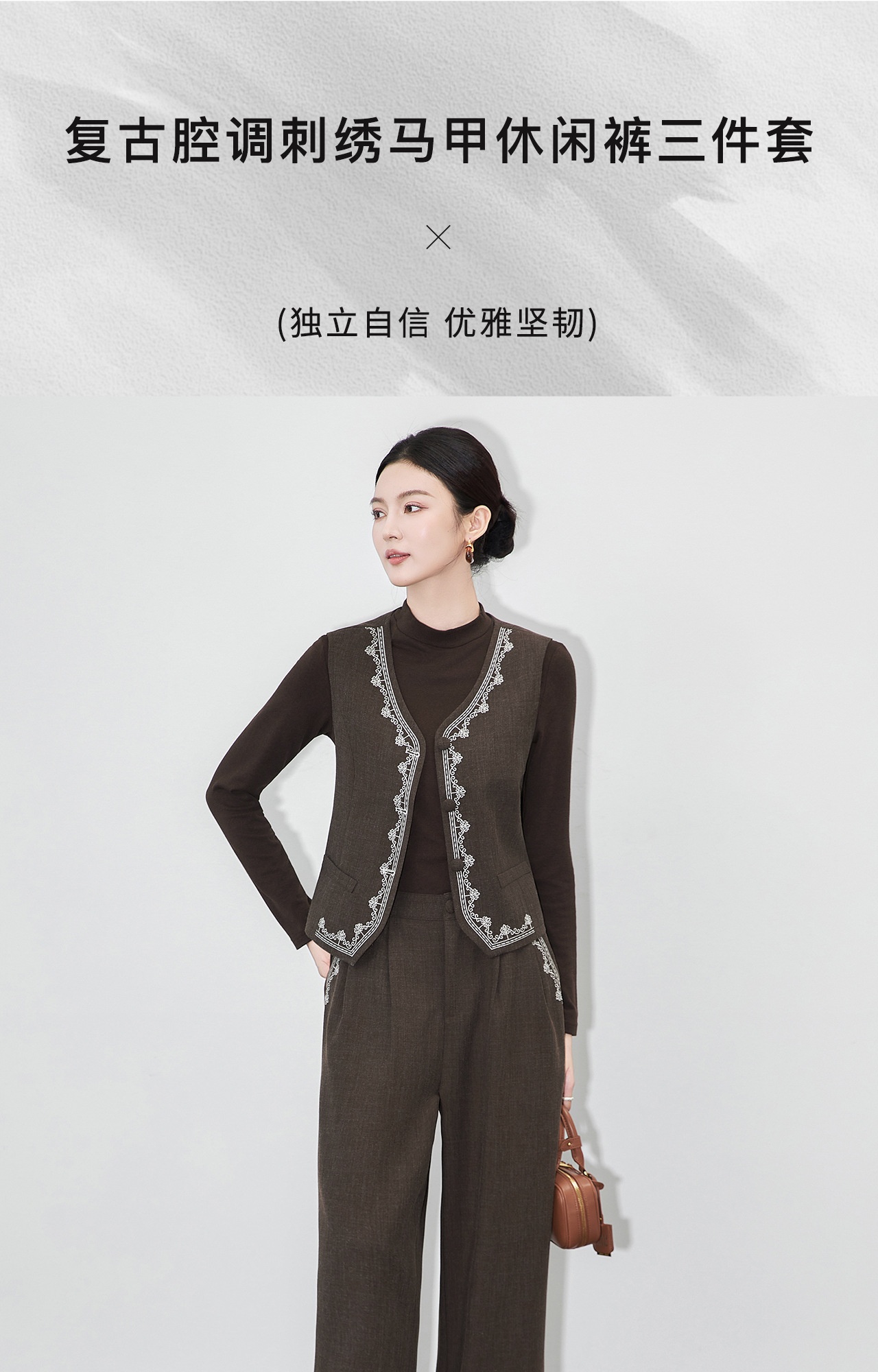 「高货wl」全新升级【铂金会员413/天猫559/差价146】(99034)洛诗琳2025秋季民族风重工刺绣马甲内搭打底长裤三件套