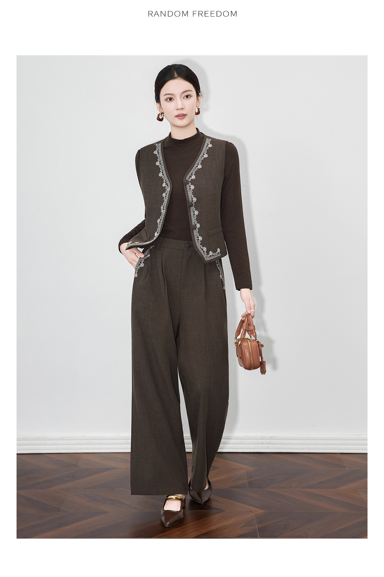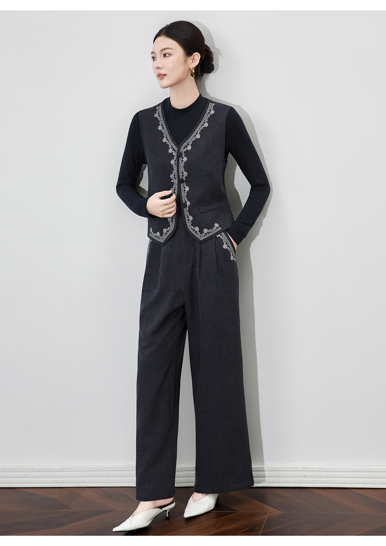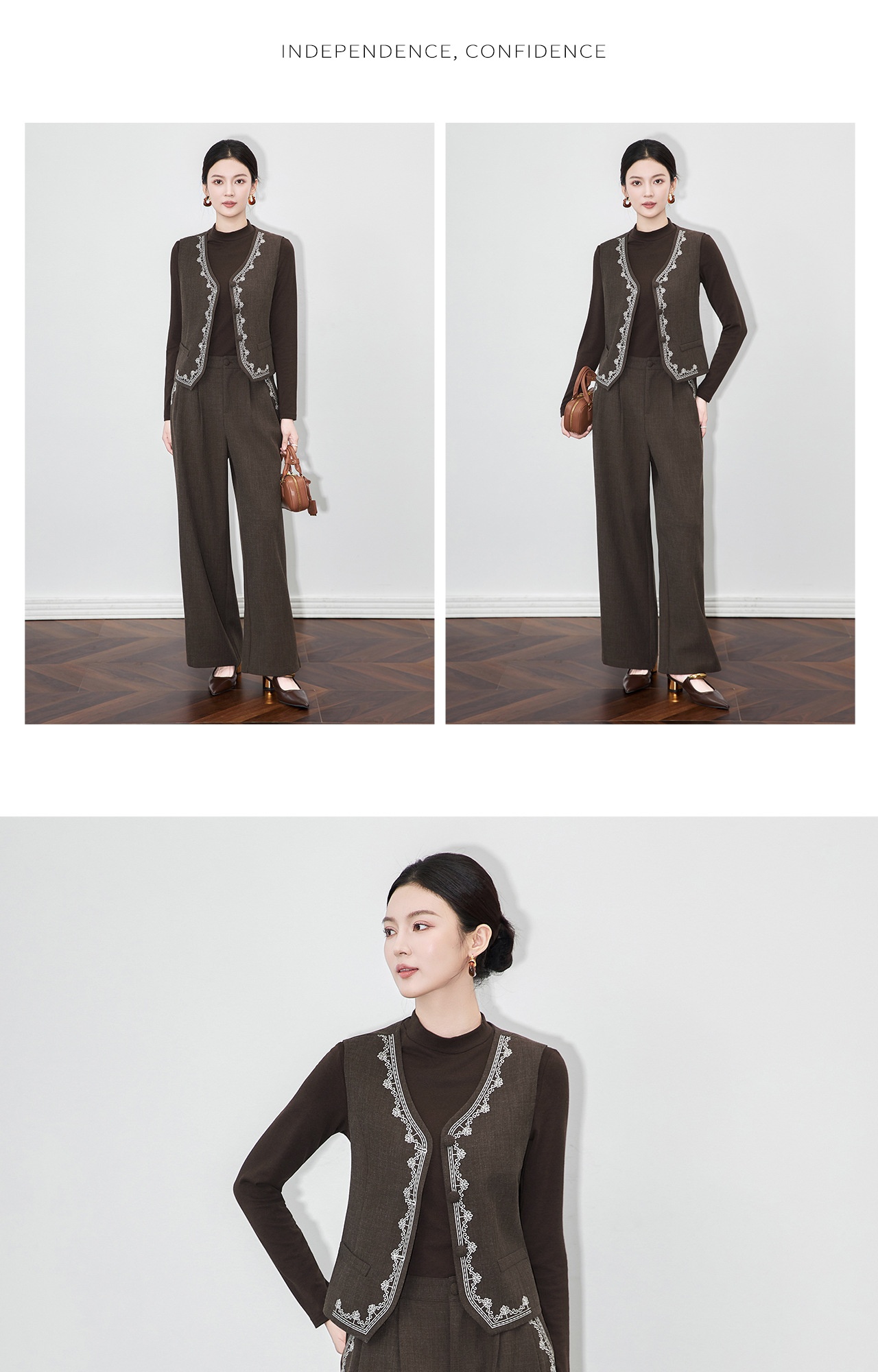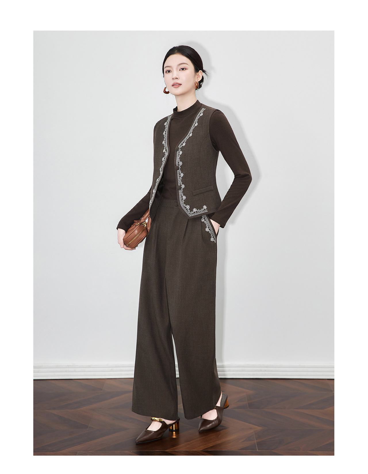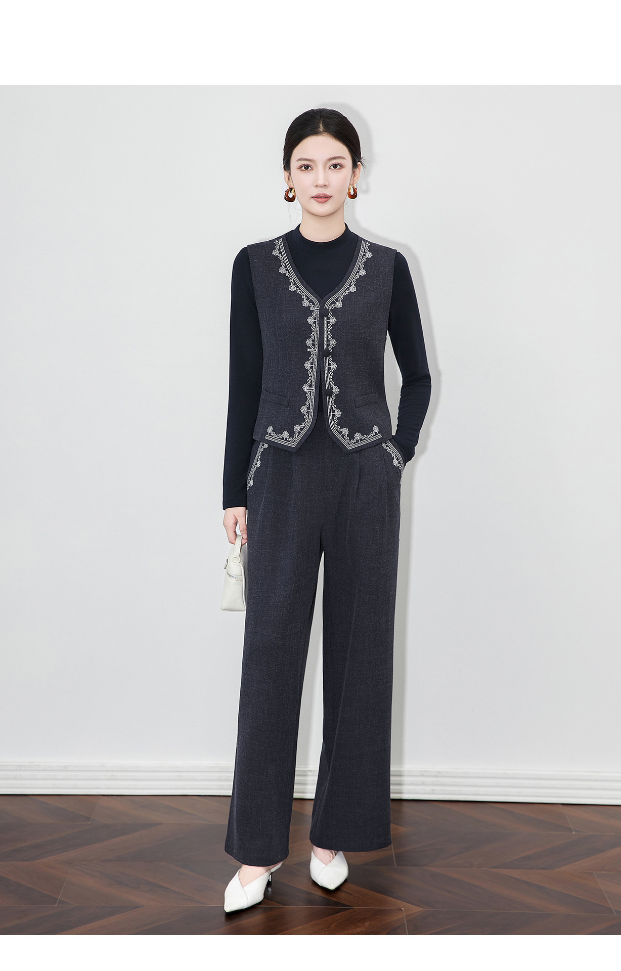 「高货wl」全新升级【铂金会员413/天猫559/差价146】(99034)洛诗琳2025秋季民族风重工刺绣马甲内搭打底长裤三件套