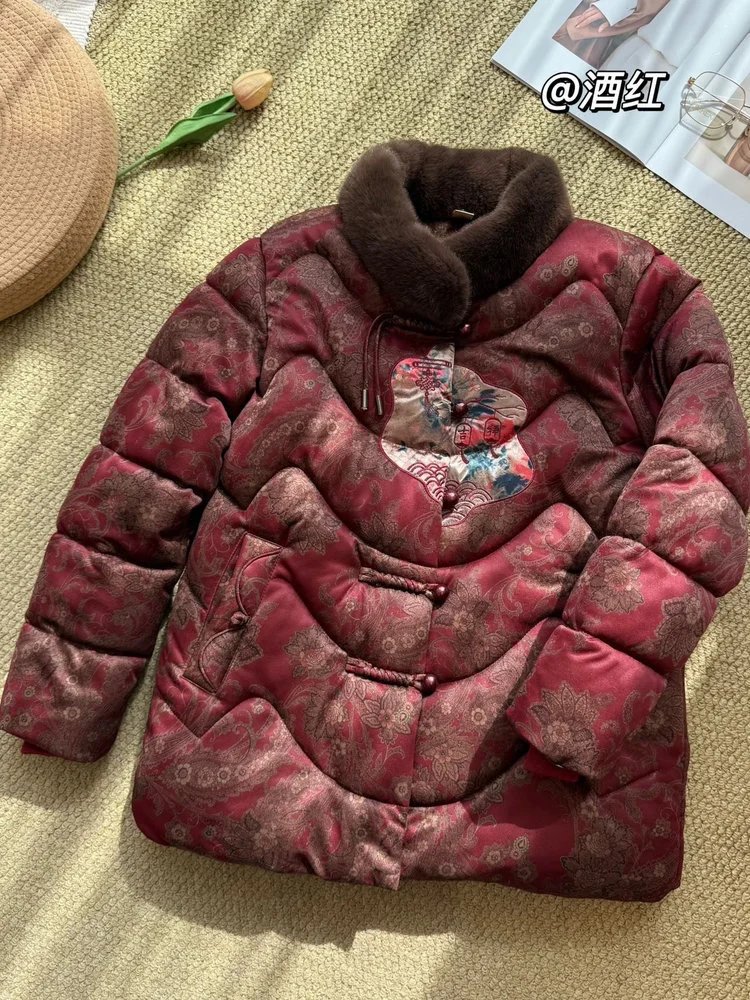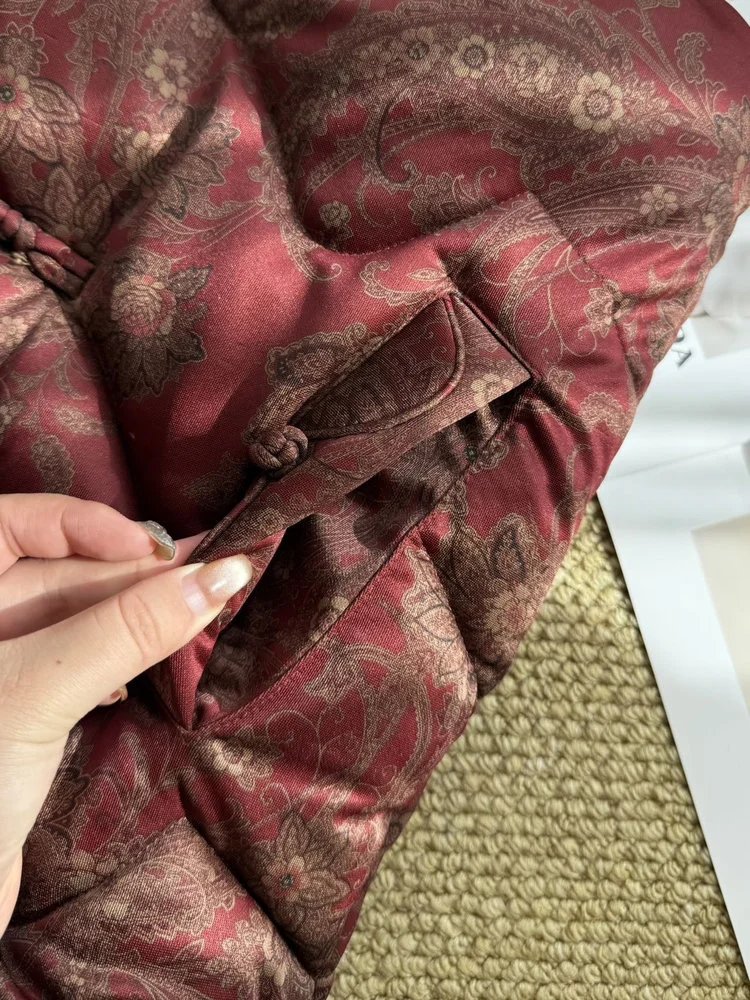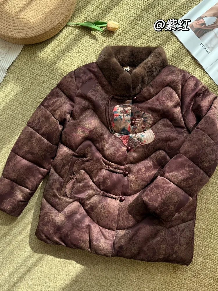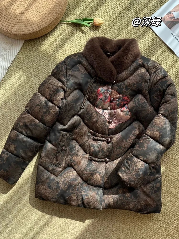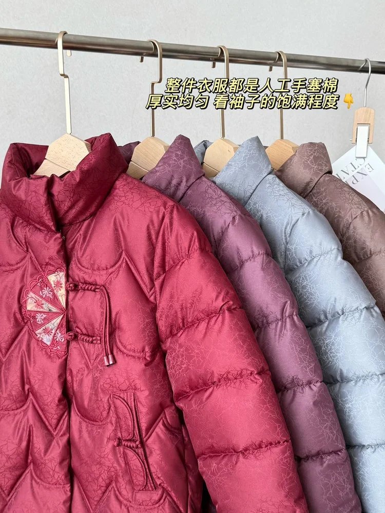 针脚细密又精致,再配上复古的盘扣,一整个显贵气!