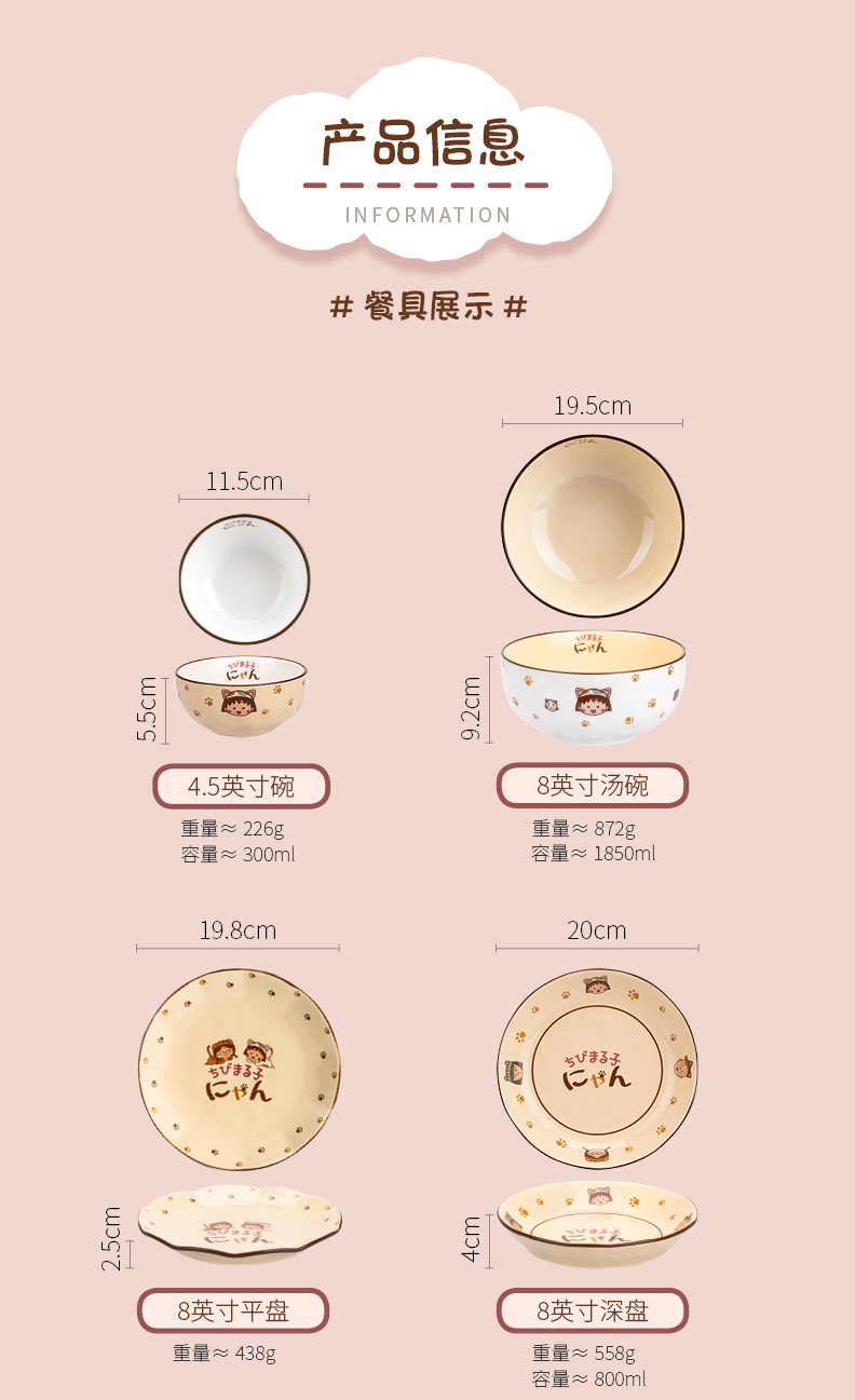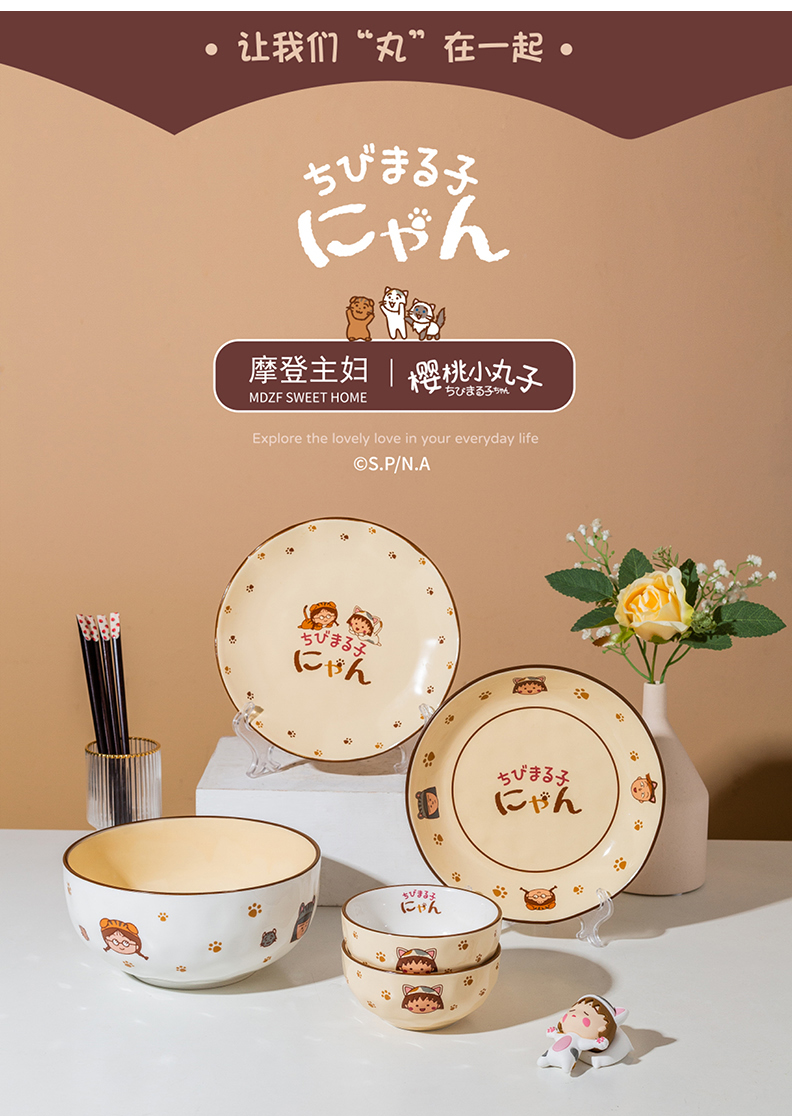 【樱桃小丸子联名】摩登主妇碗碟餐具套装家用日式碗盘马克杯组合