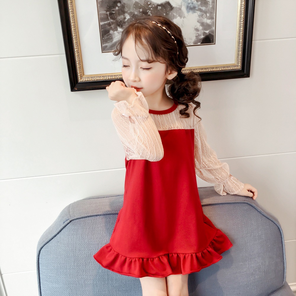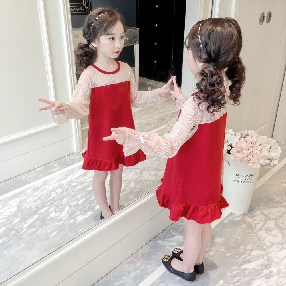 MY-1063新款韩版网纱女童洋气蕾丝鱼尾连衣裙