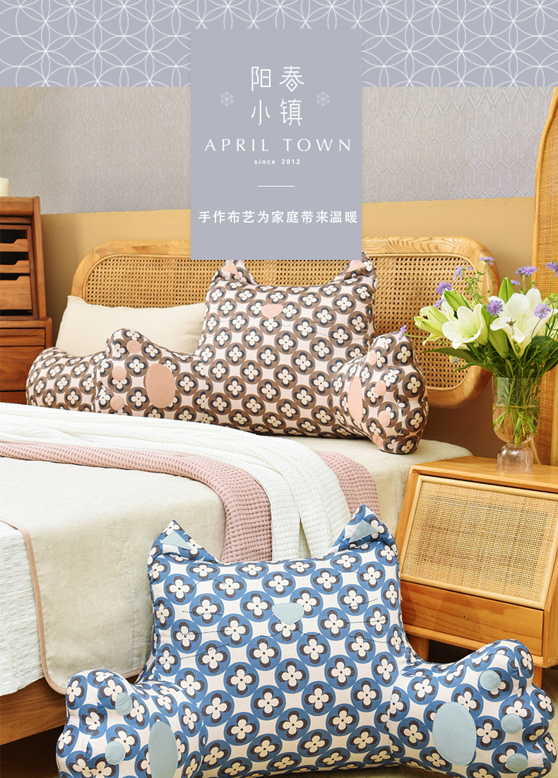 四叶草系列猫咪靠床头沙发软包大靠背腰靠