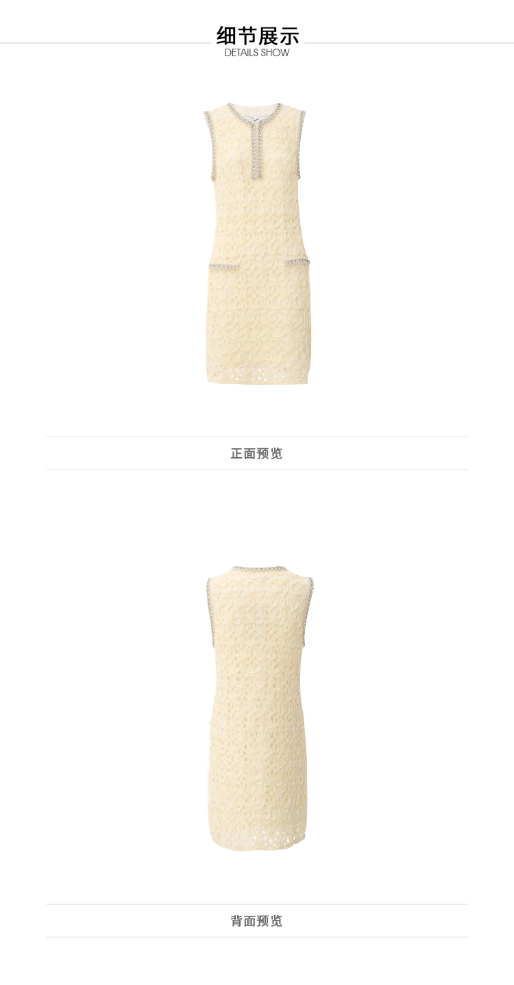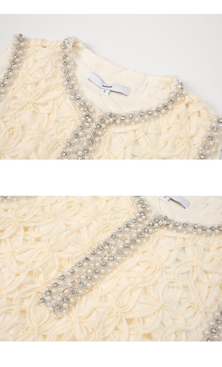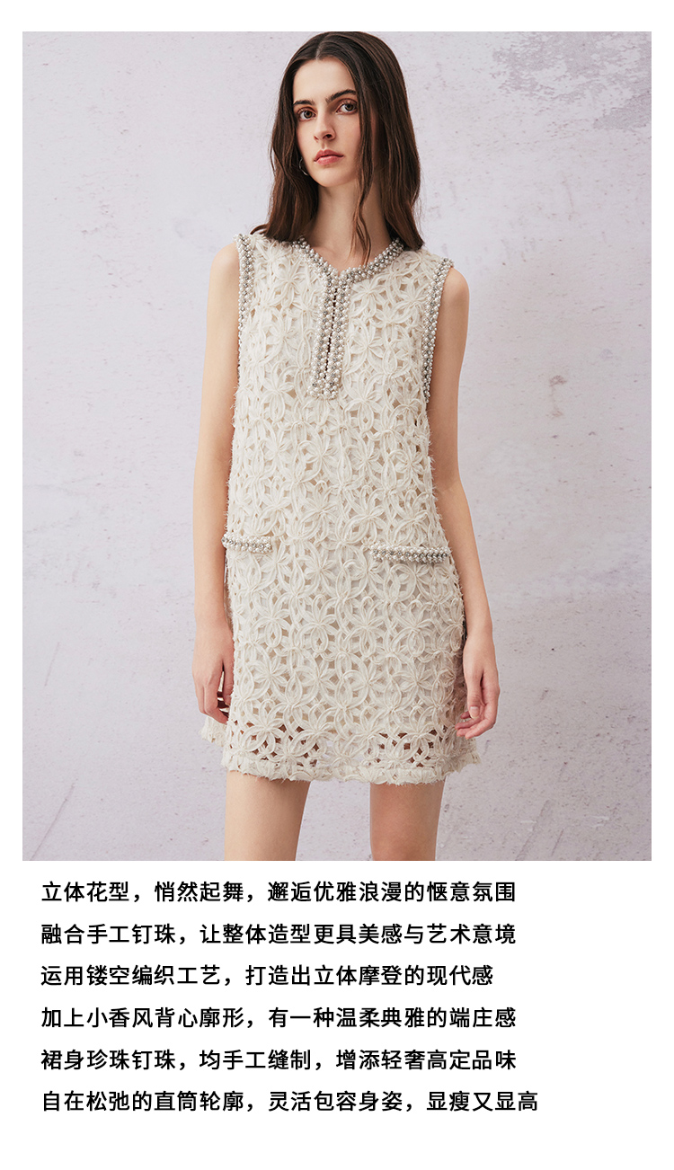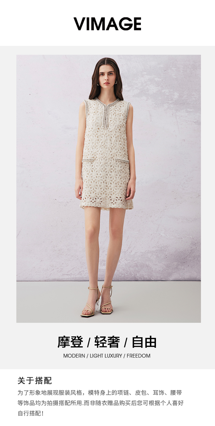 VIMAGE纬漫纪夏季新款小香风别致轻奢钉珠高腰连衣裙V2177710