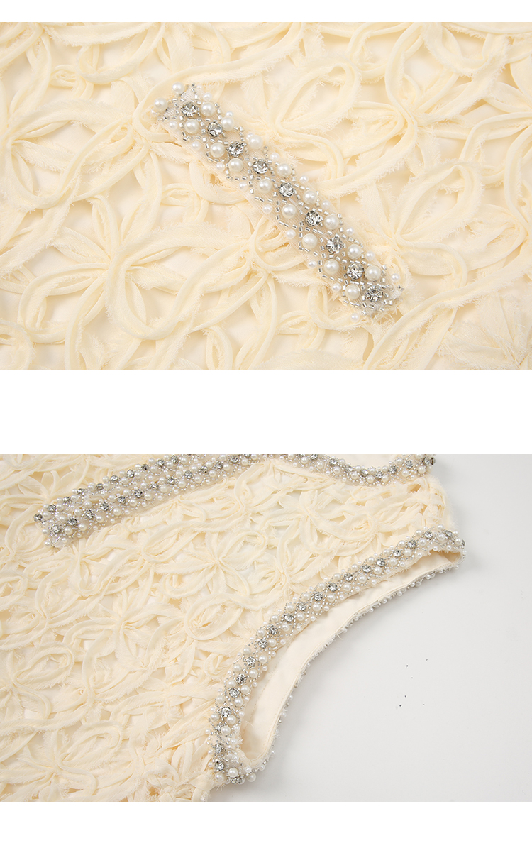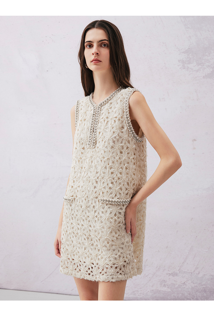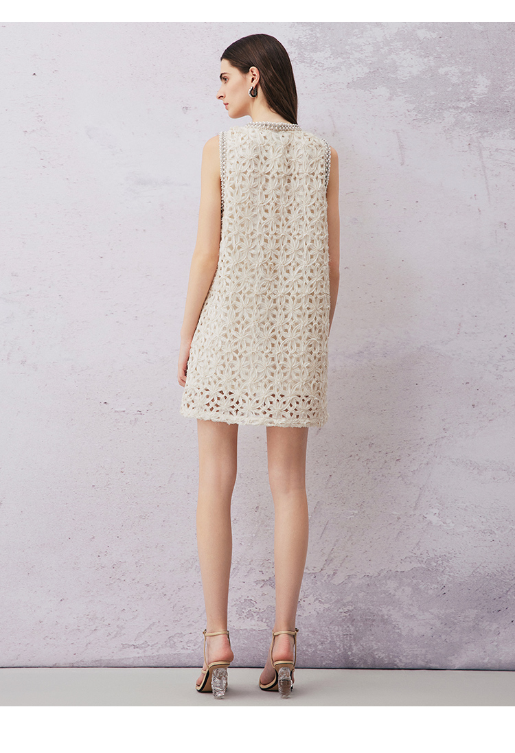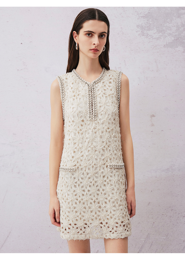 VIMAGE纬漫纪夏季新款小香风别致轻奢钉珠高腰连衣裙V2177710