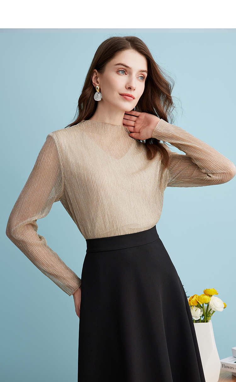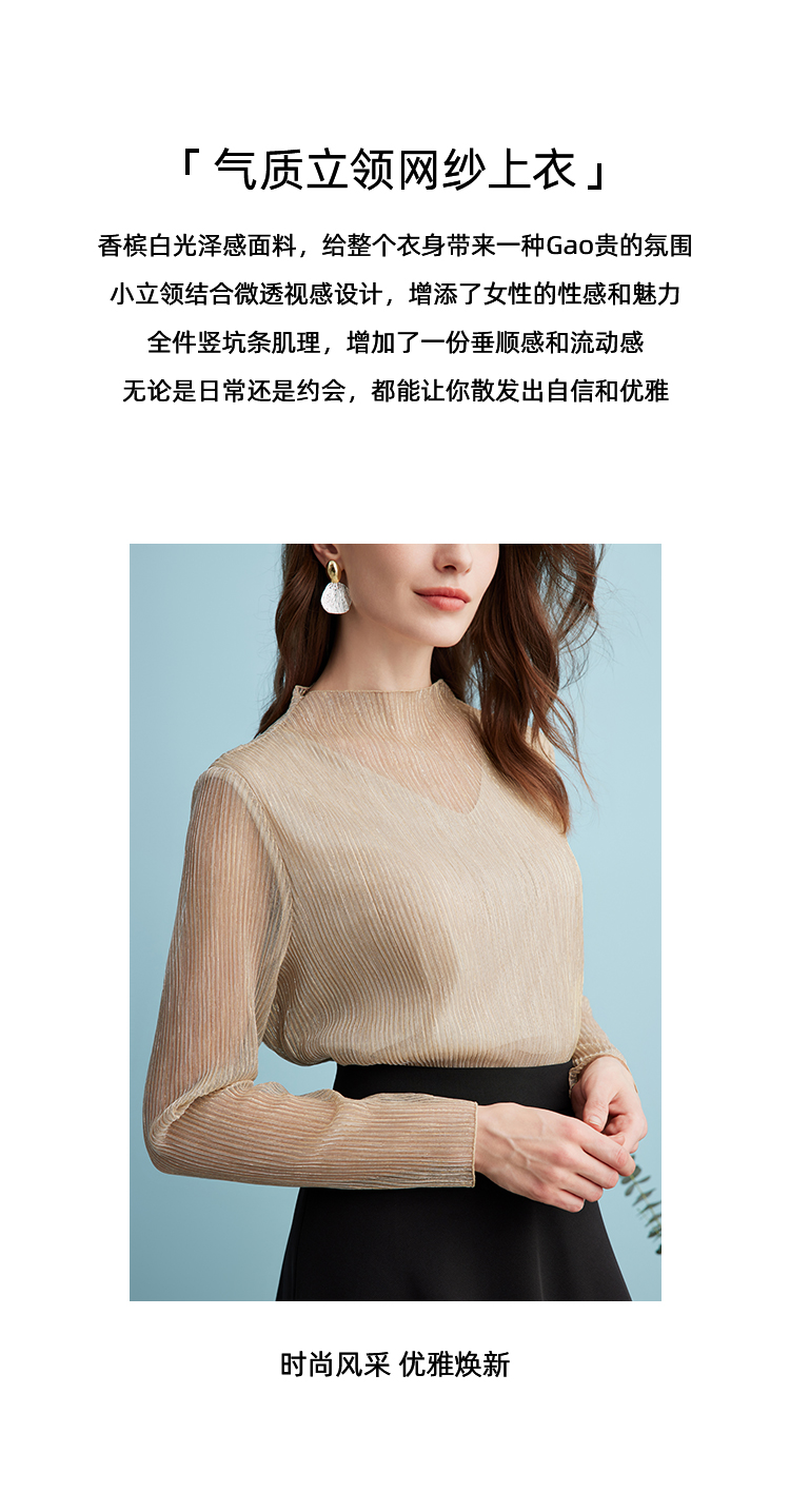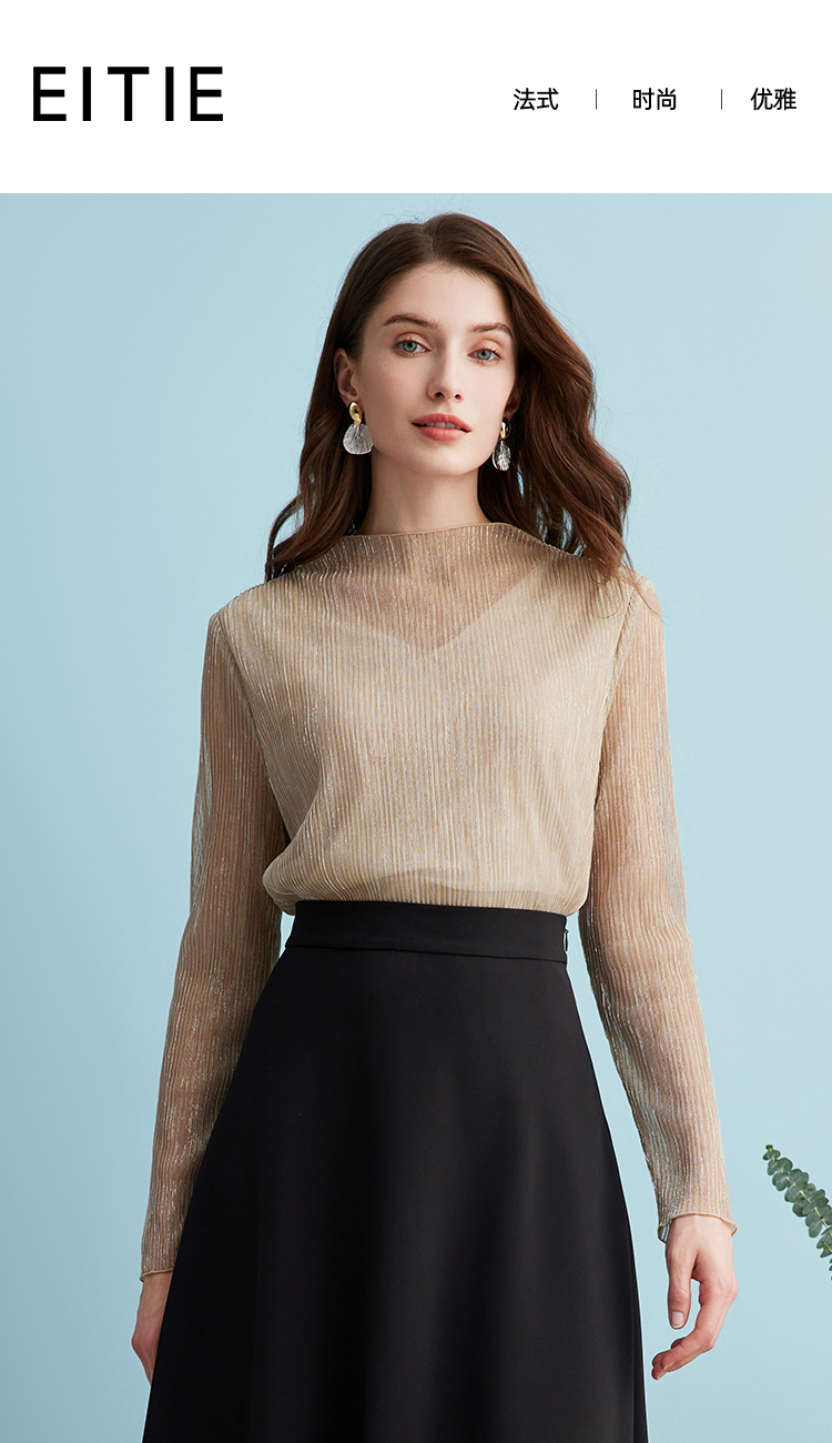 EITIE爱特爱气质立领网纱直筒显瘦金丝打底衫上衣春新款A2413311