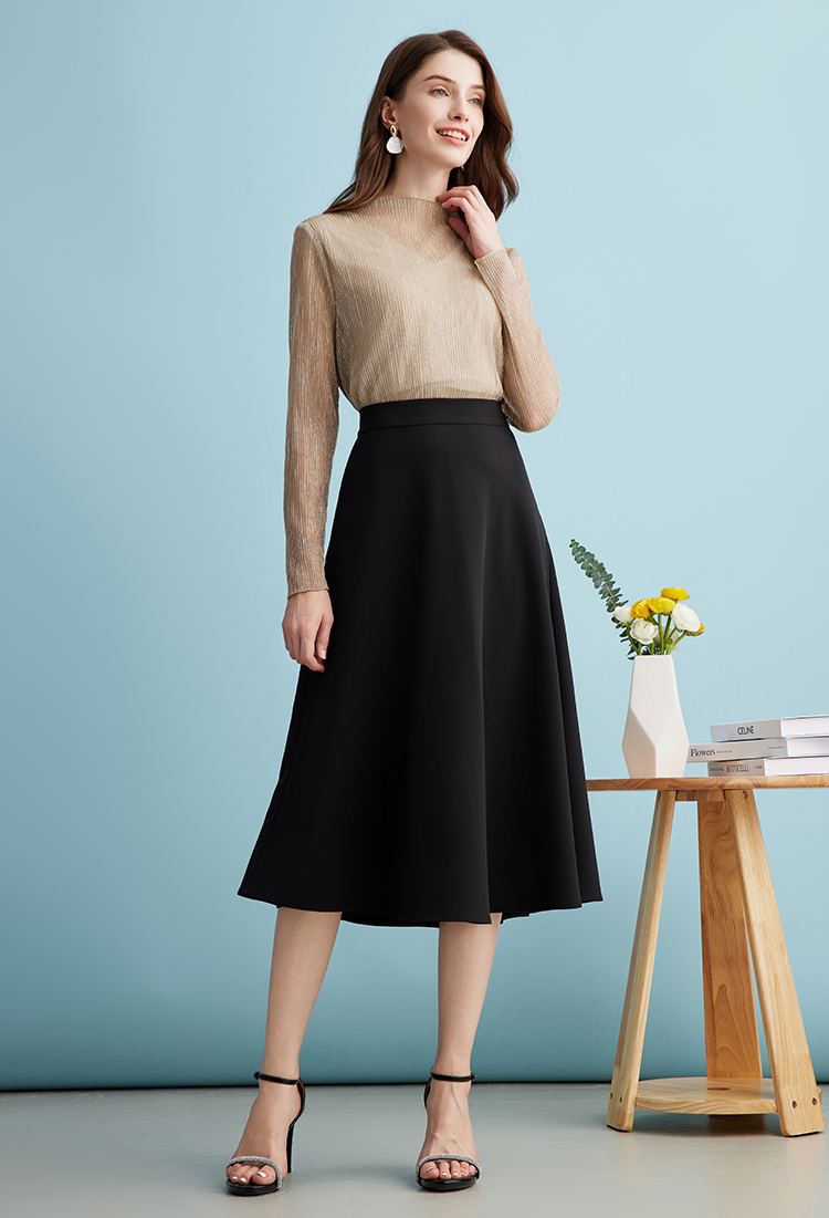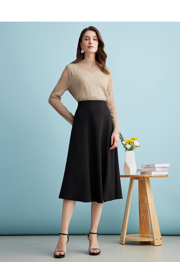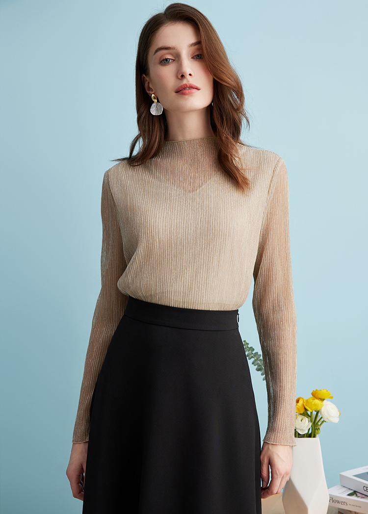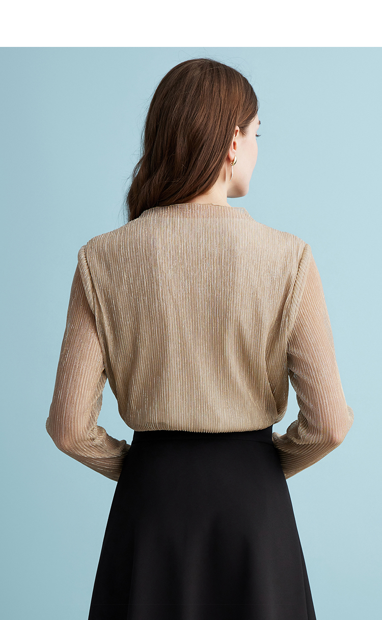 EITIE爱特爱气质立领网纱直筒显瘦金丝打底衫上衣春新款A2413311
