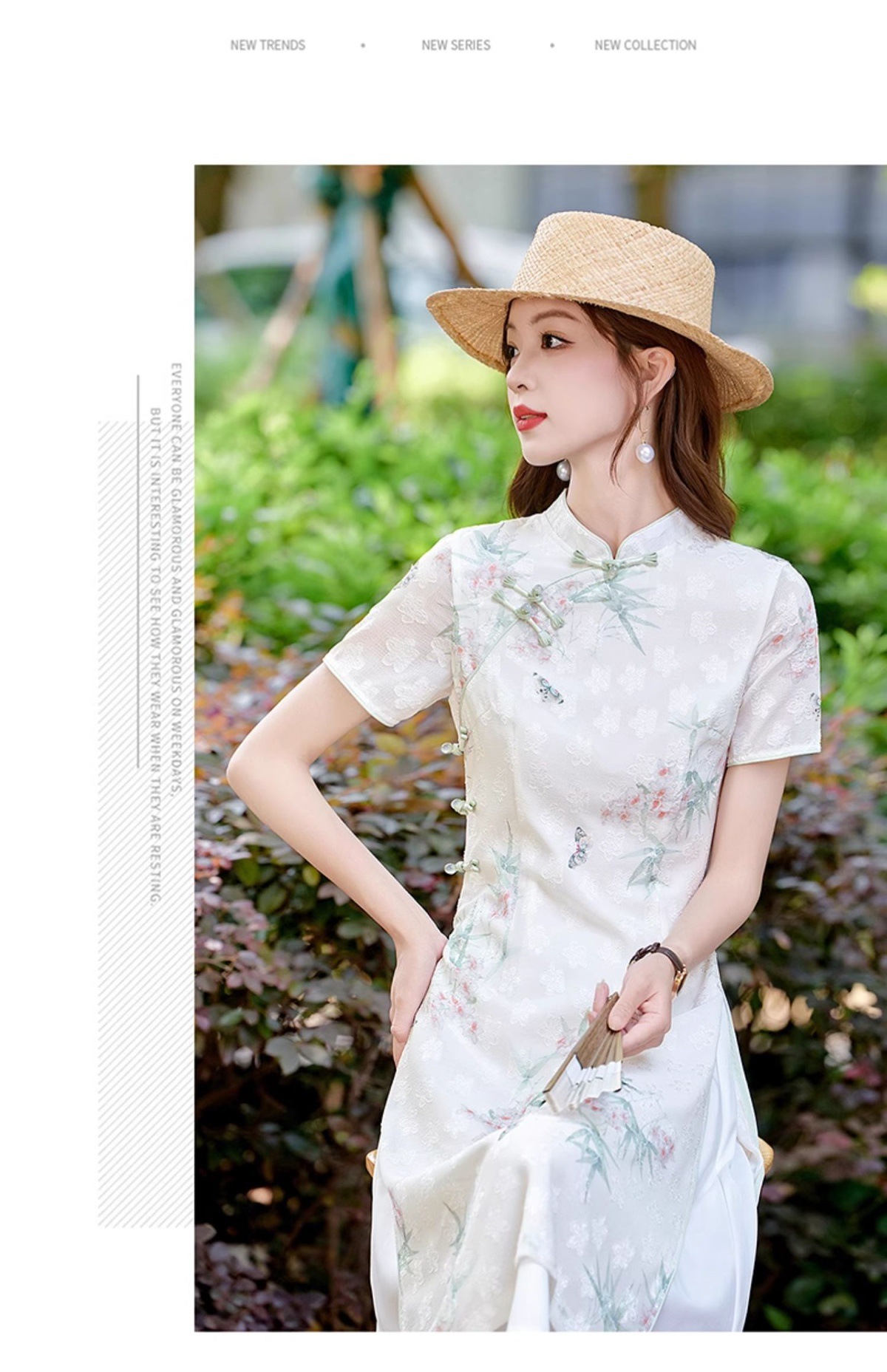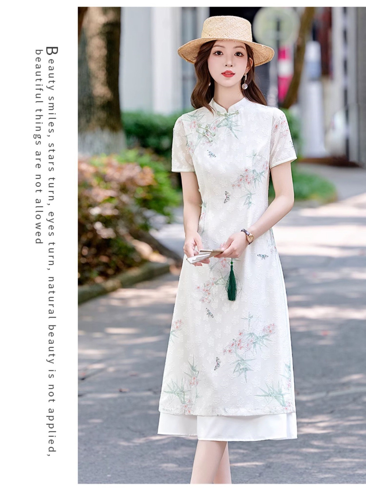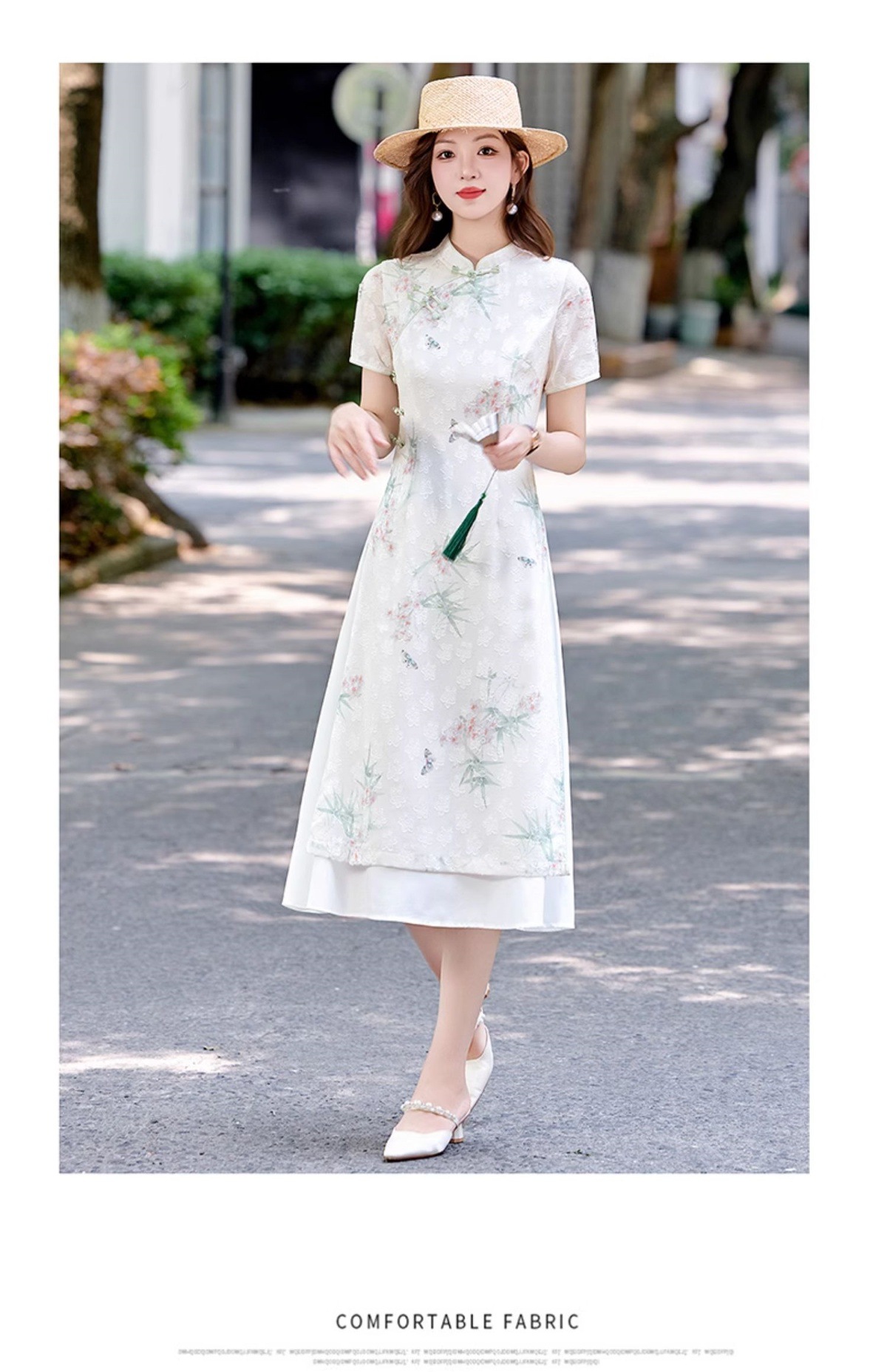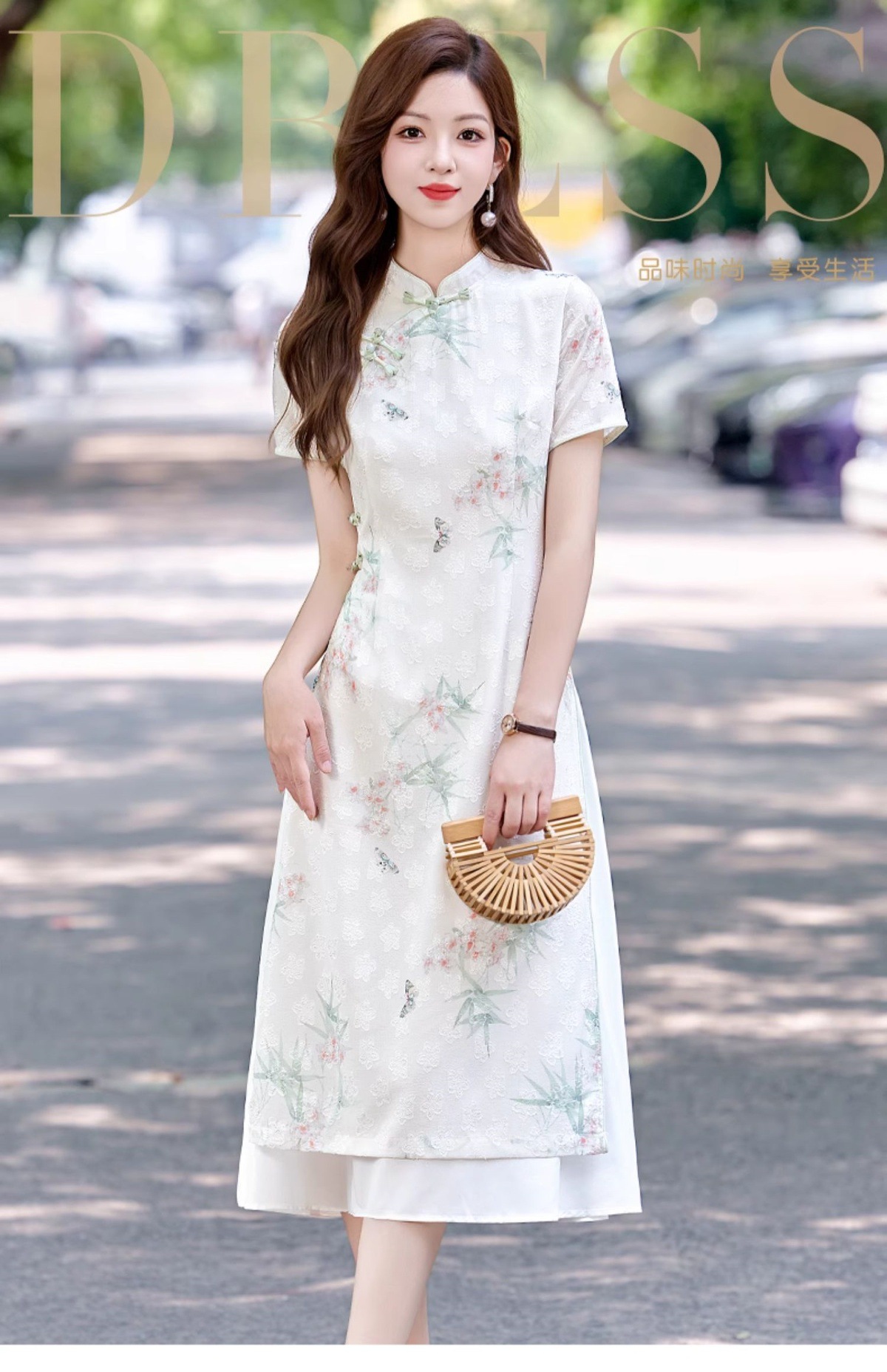 新中式国风改良旗袍连衣裙,显瘦气质提花盘扣绝美裙子HR-MJ996230