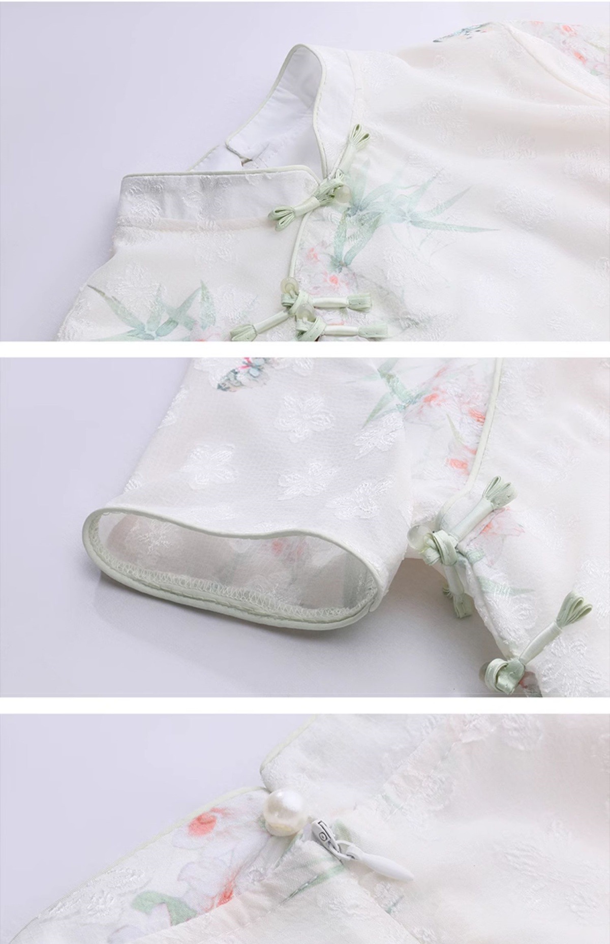 新中式半高领短袖小衫,网纱提花T恤LA43907