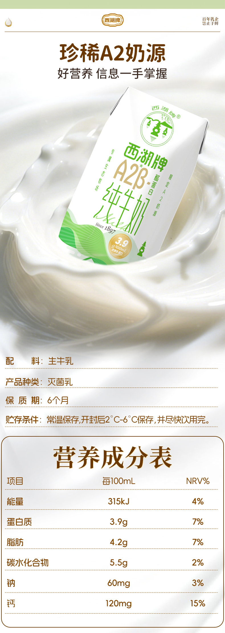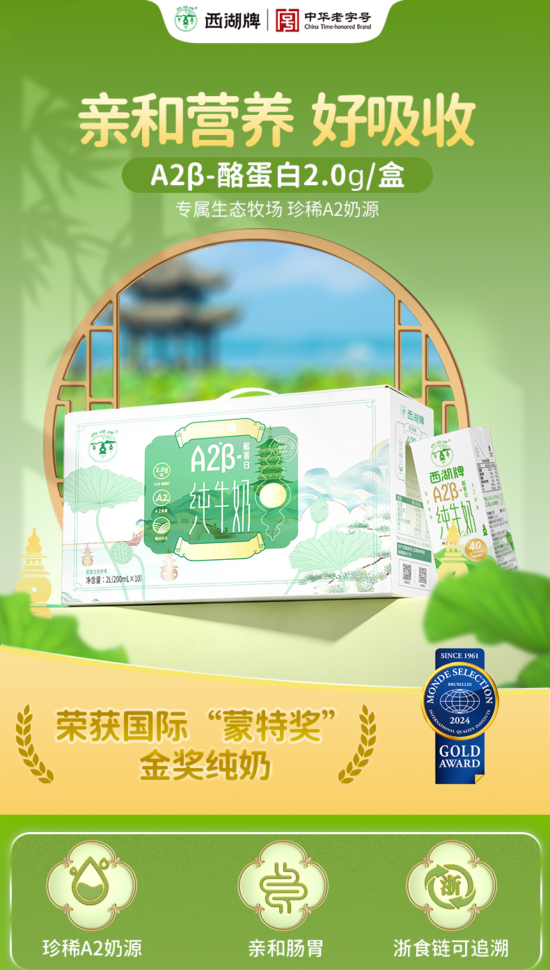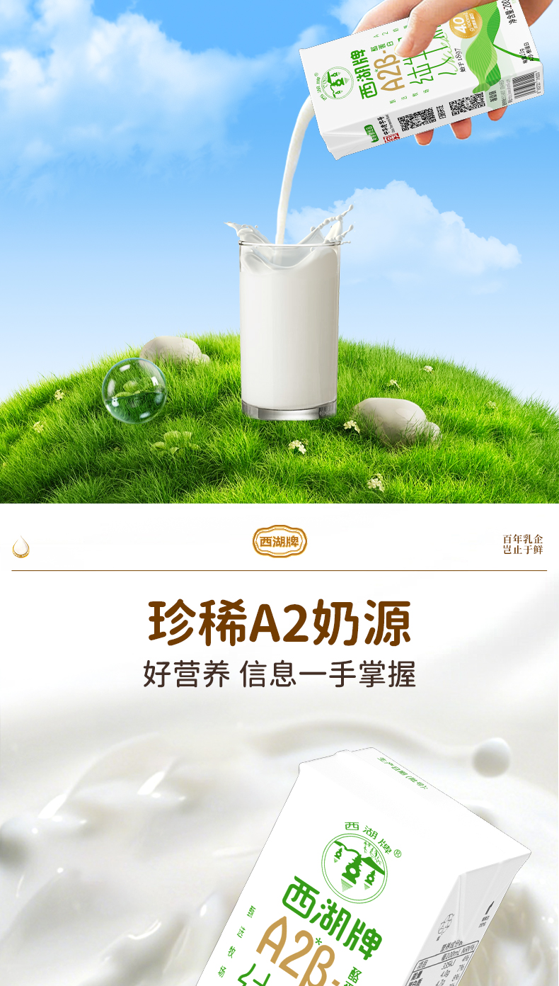 【快递直达】西湖牌钻石包A2β-酪蛋白纯牛奶200mL*10盒*1箱
