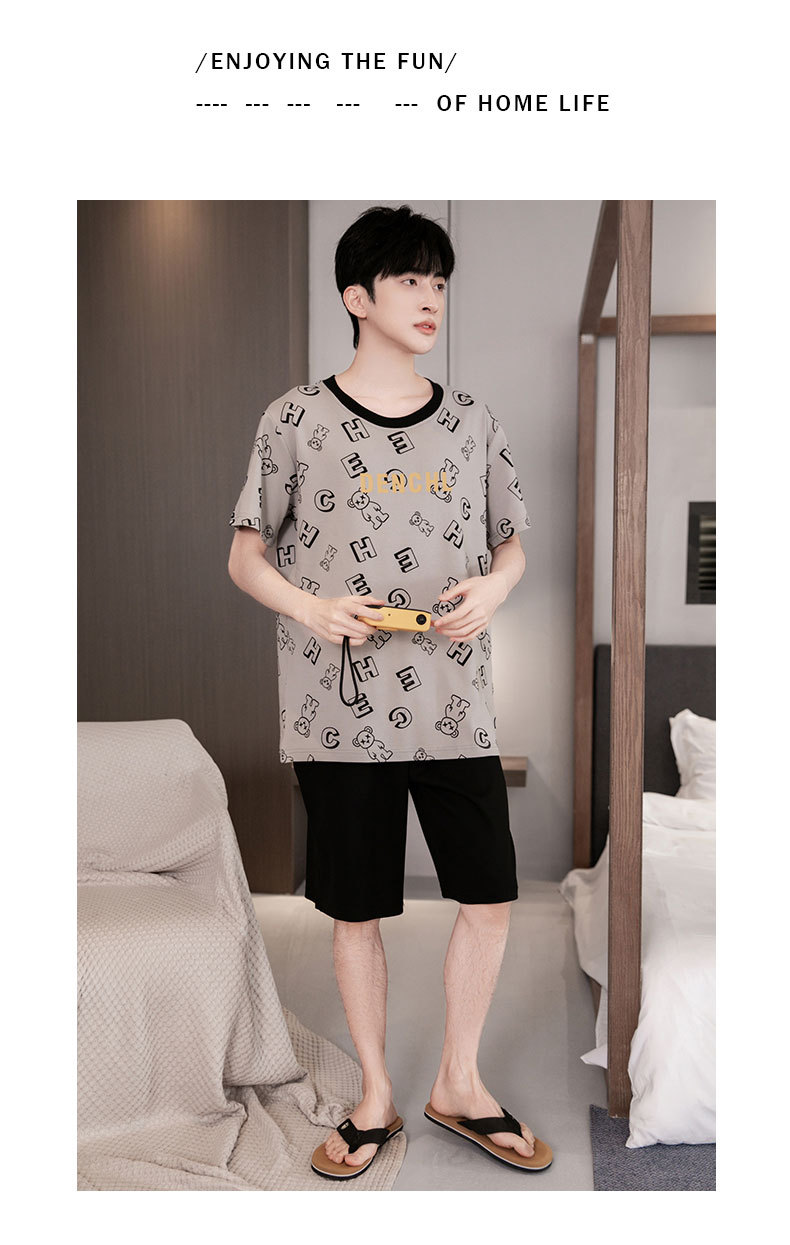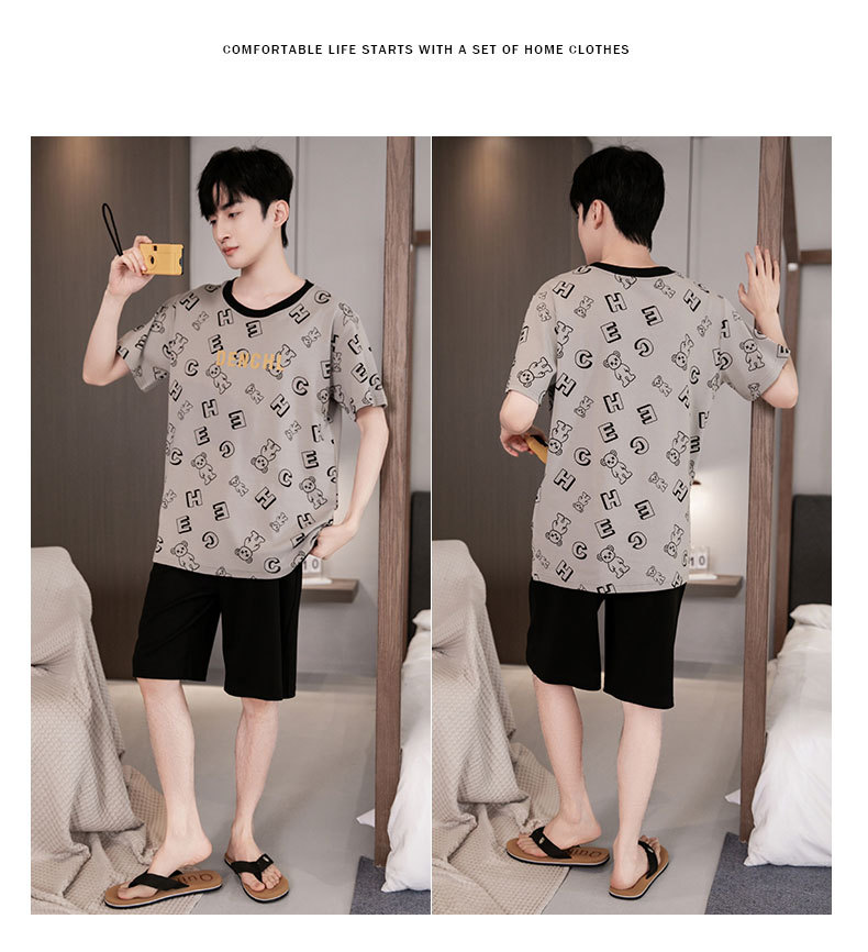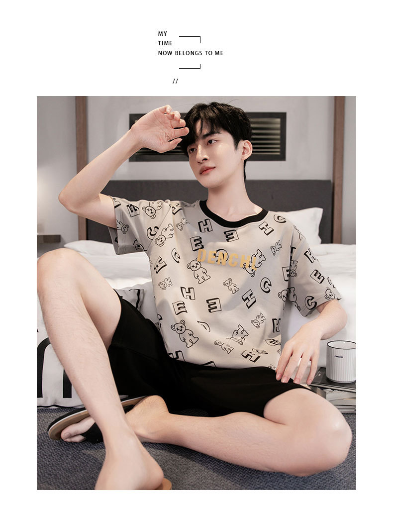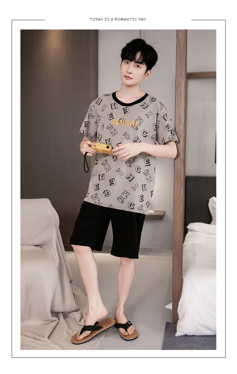 睡衣男士夏季纯棉短袖短裤套装薄款透气卡通休闲青年可出门家居服 JL-YS9039