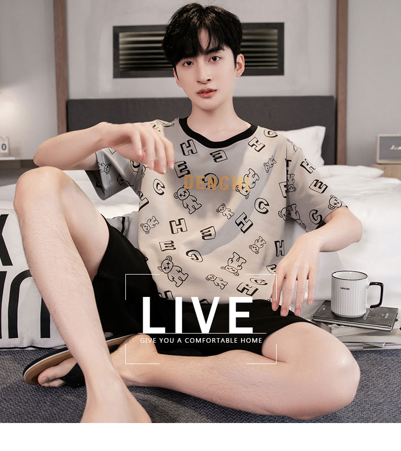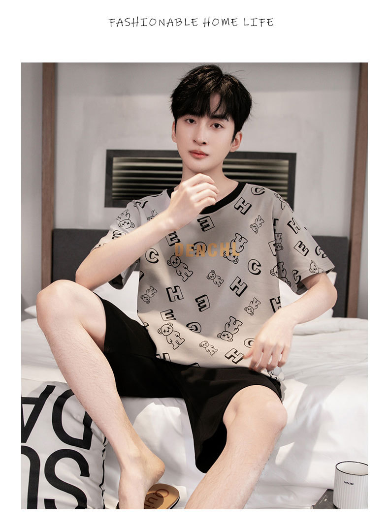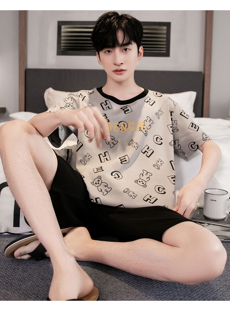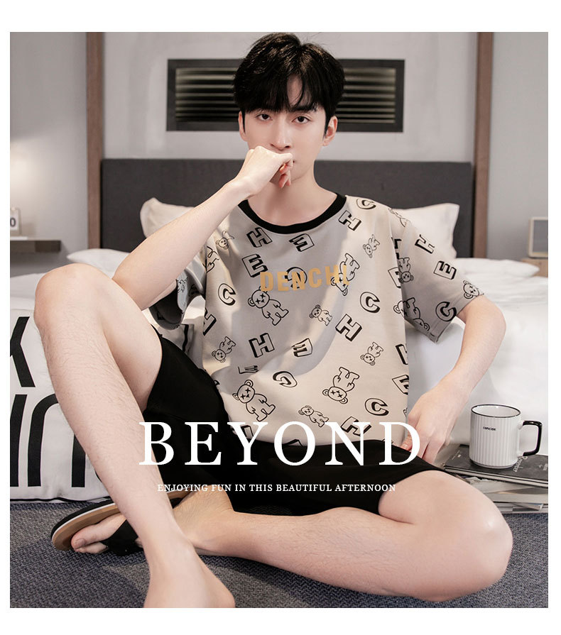 睡衣男士夏季纯棉短袖短裤套装薄款透气卡通休闲青年可出门家居服 JL-YS9039
