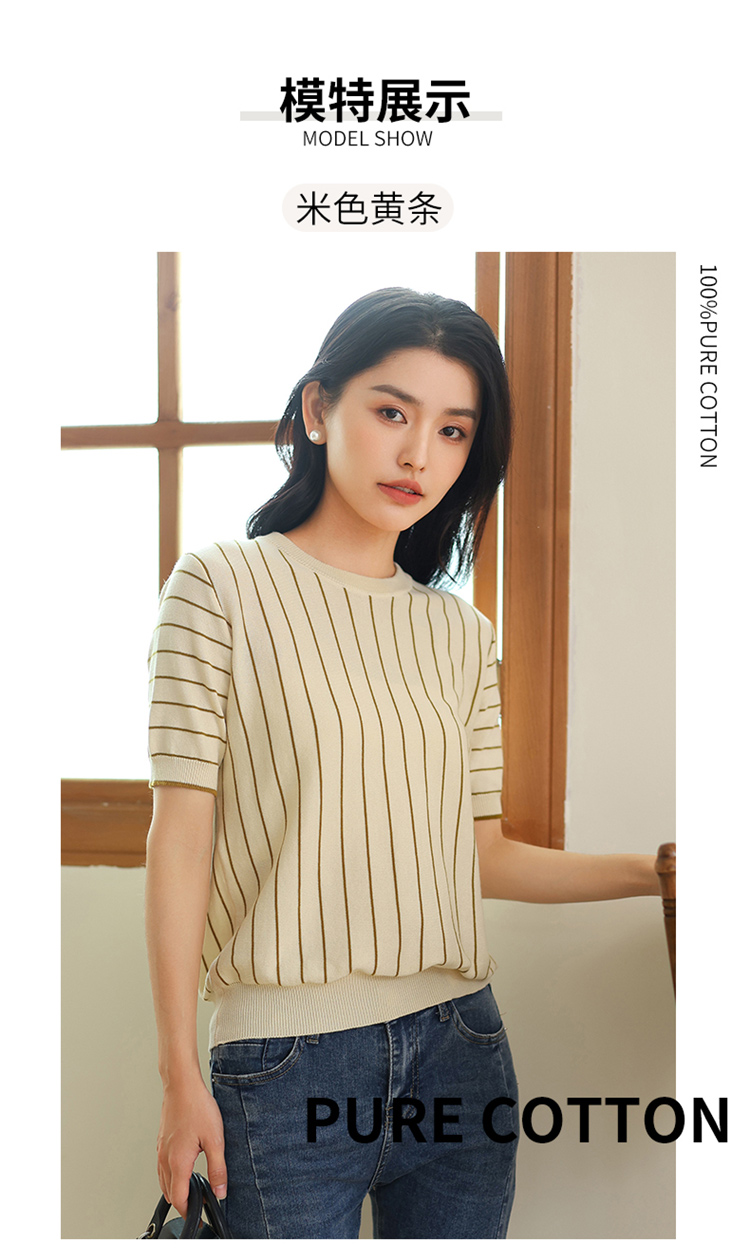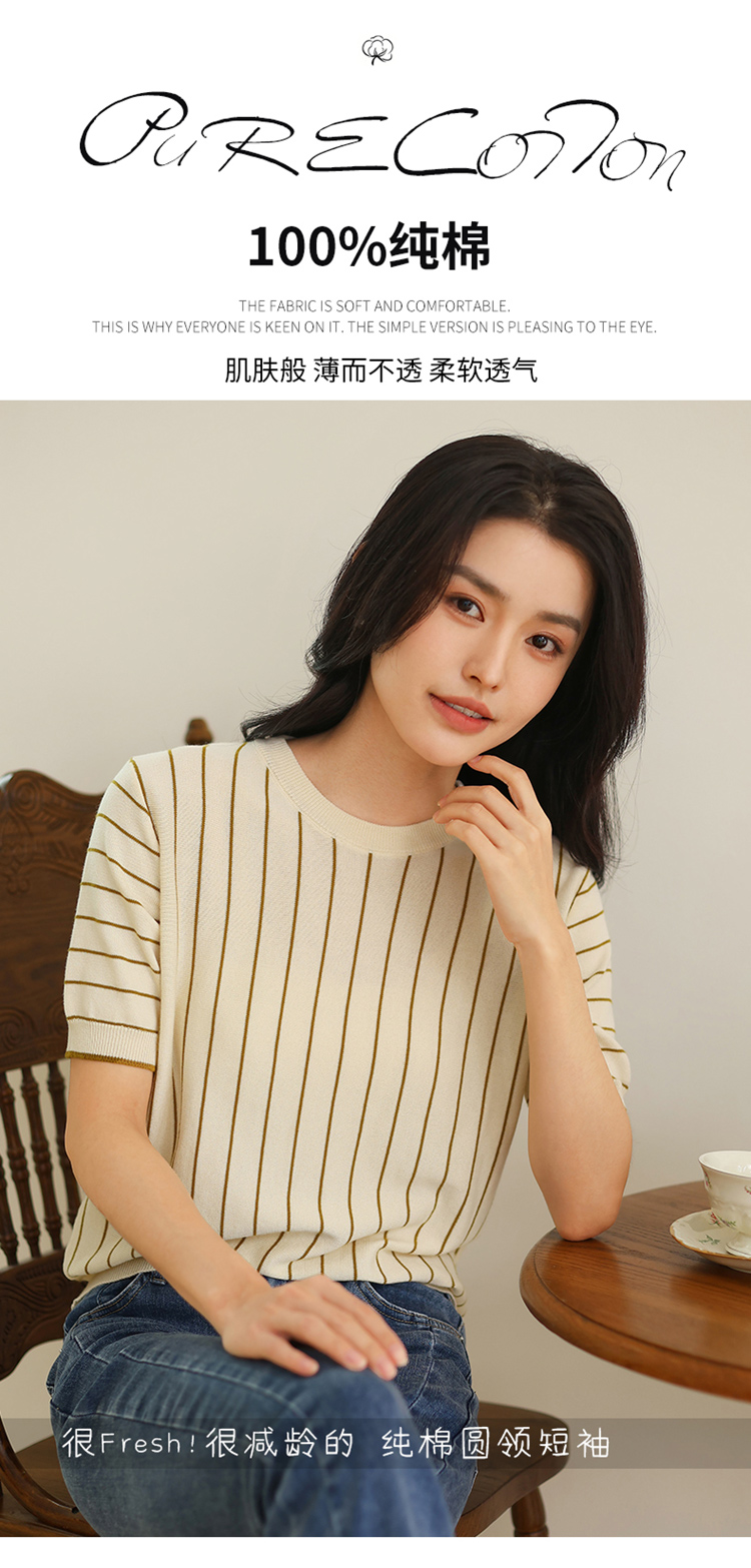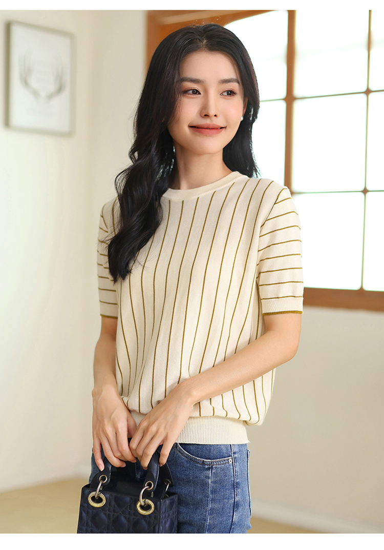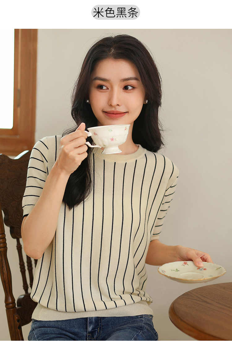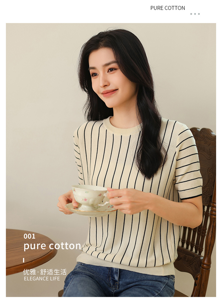 纤束马法式知性竖条纹短袖T恤 YRT-716
