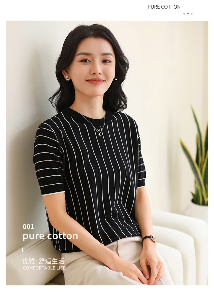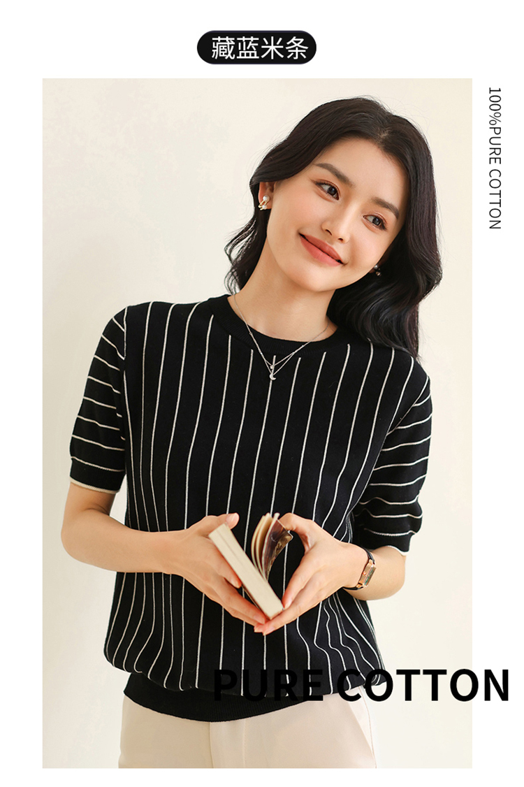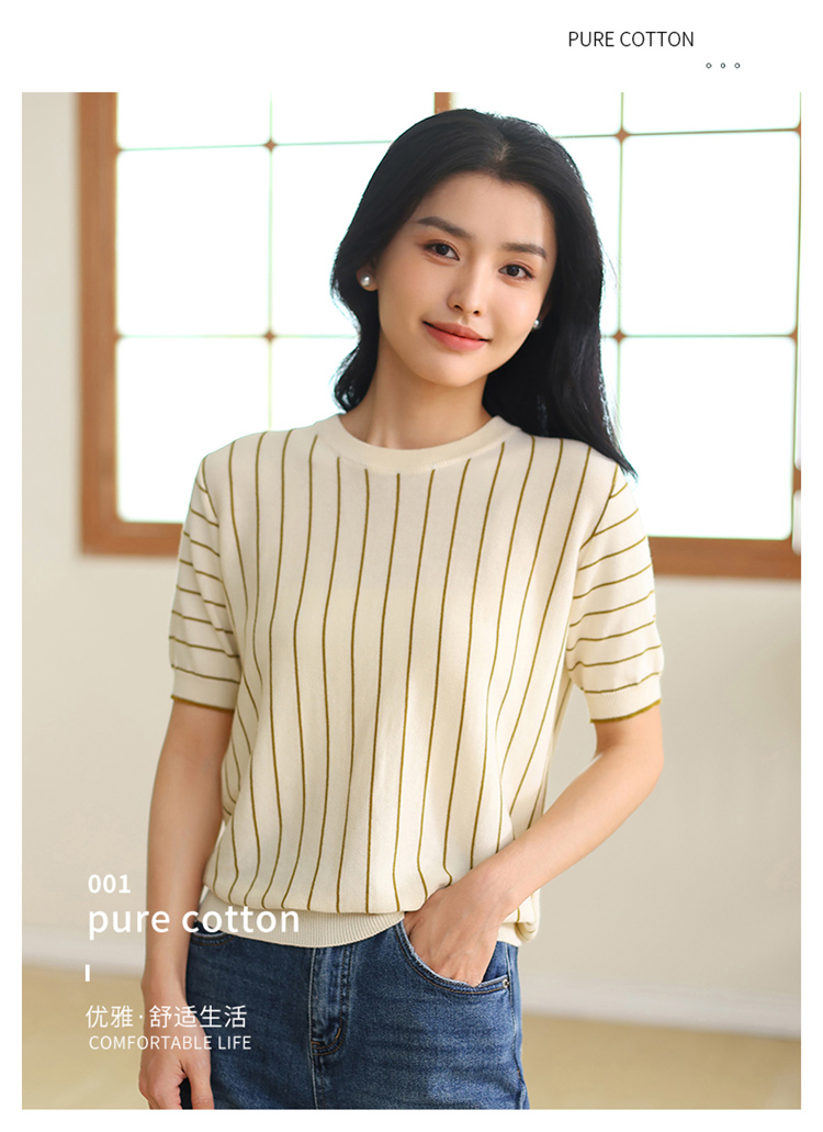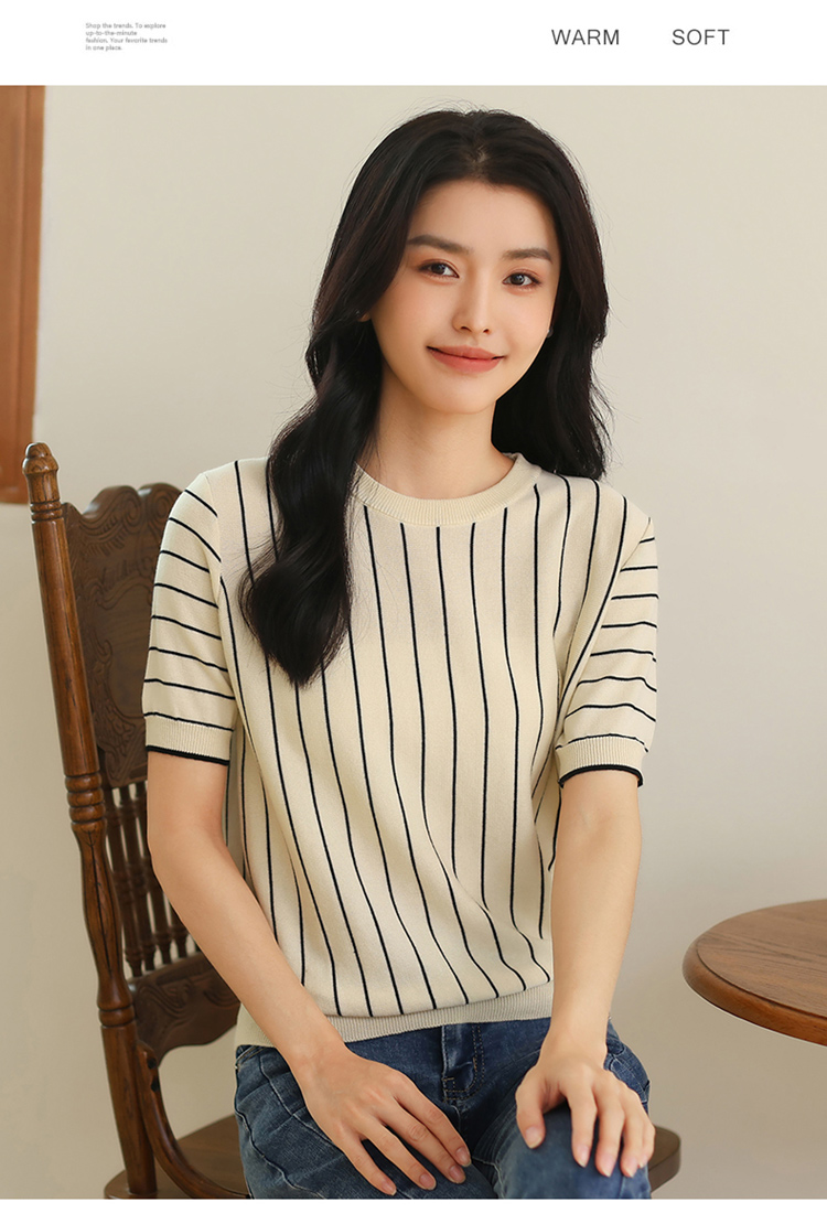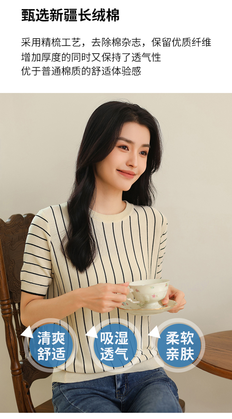 纤束马法式知性竖条纹短袖T恤 YRT-716