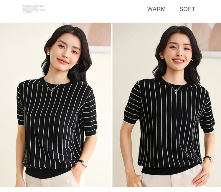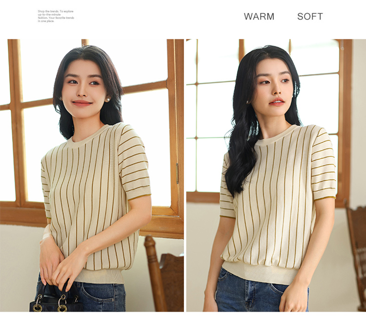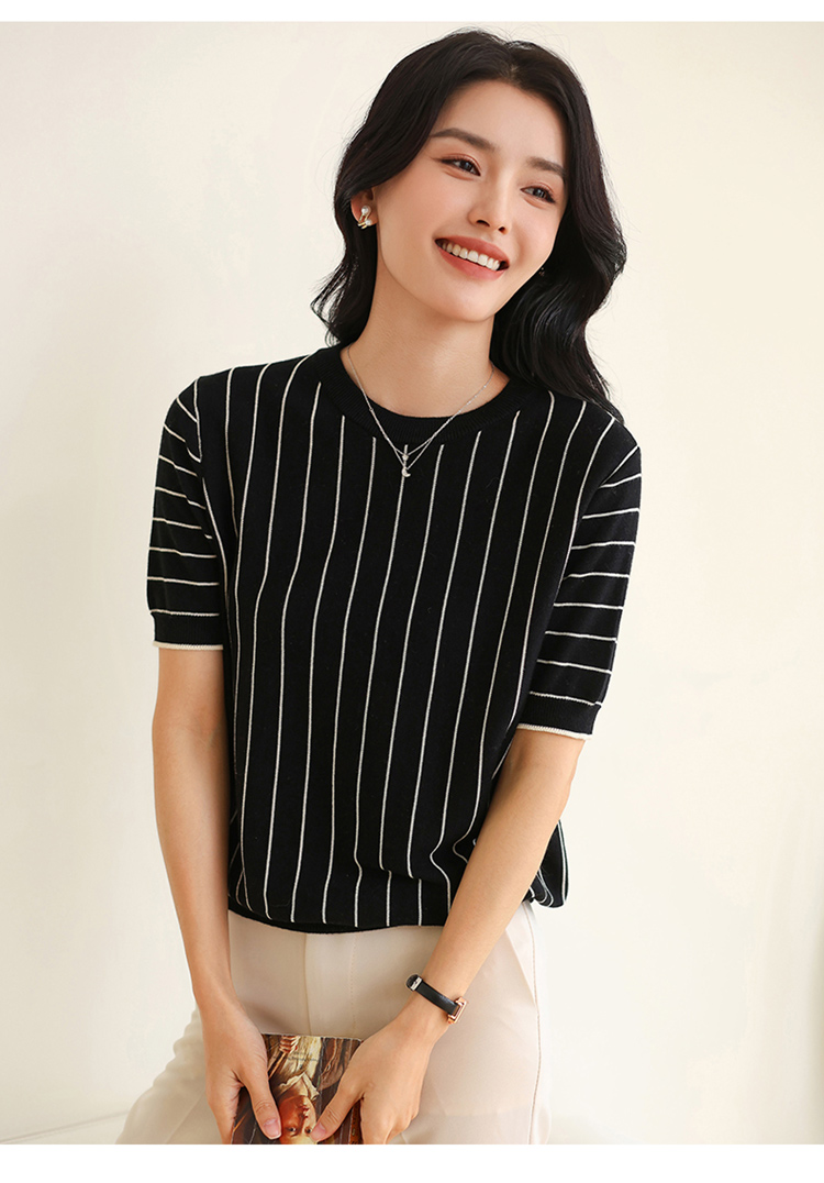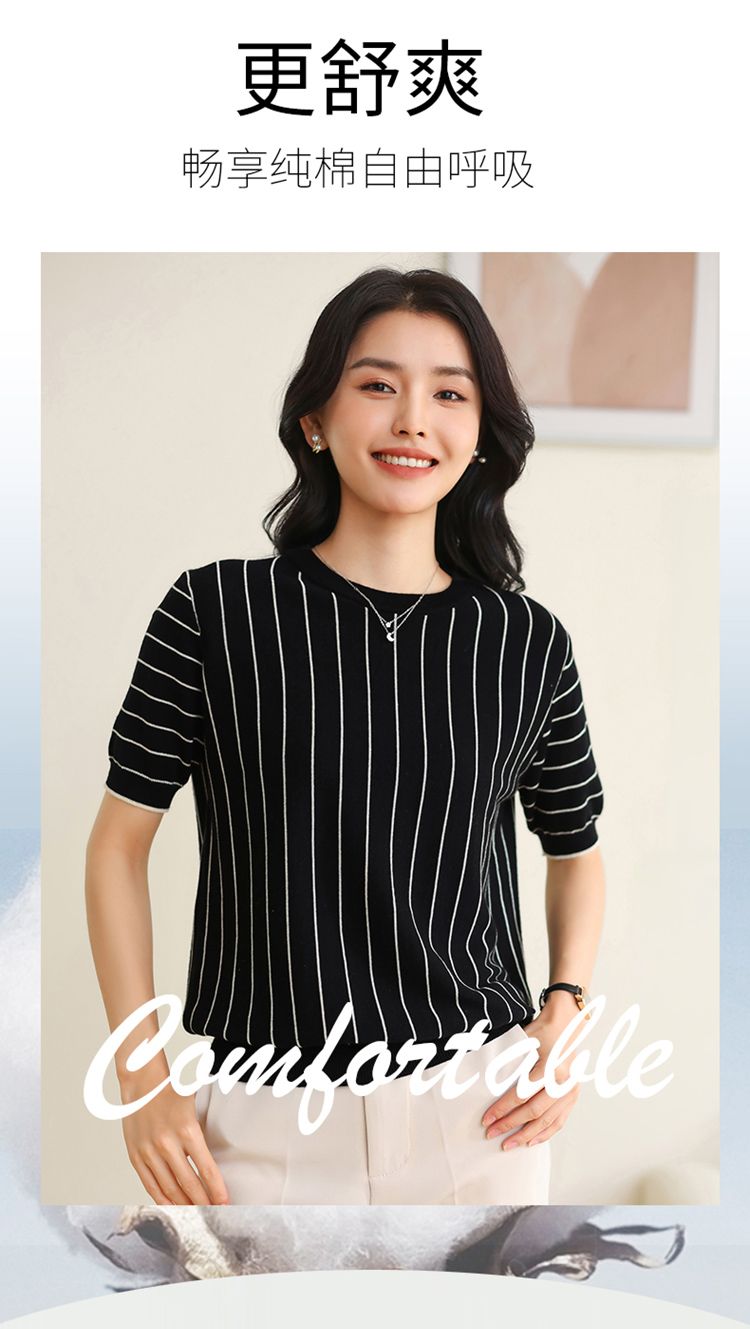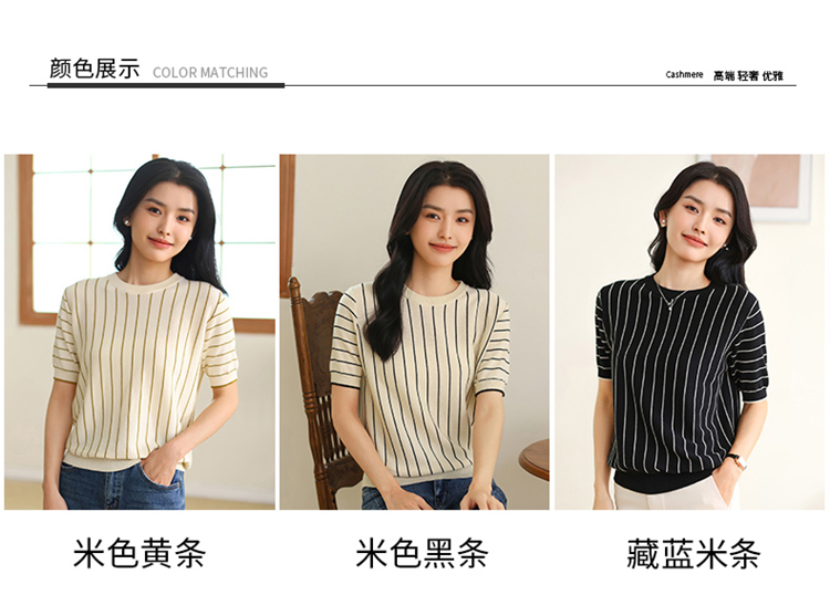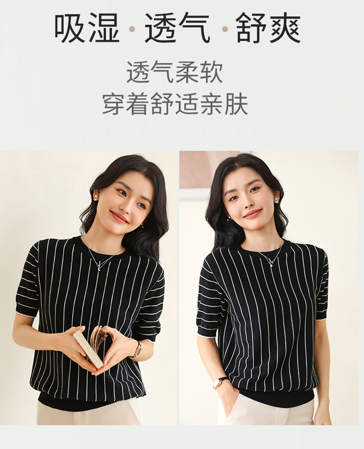 纤束马法式知性竖条纹短袖T恤 YRT-716