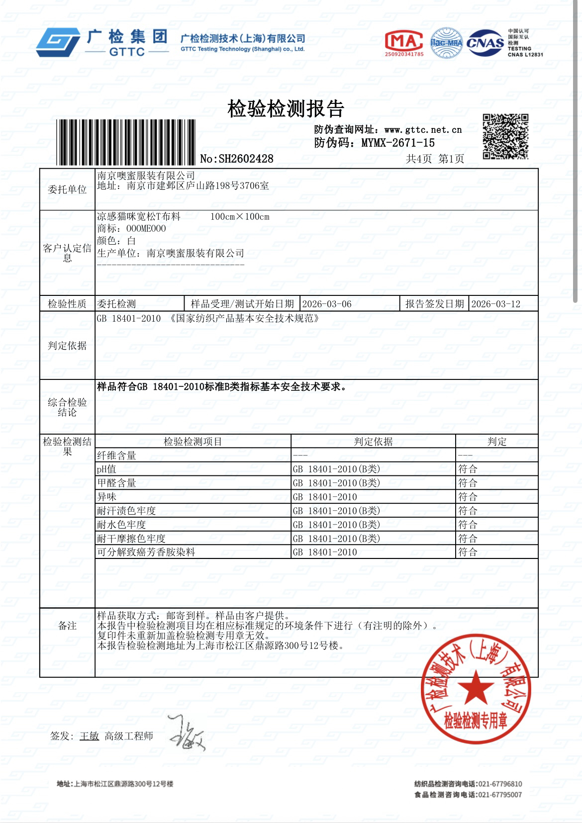 【检测报告】为质量负责