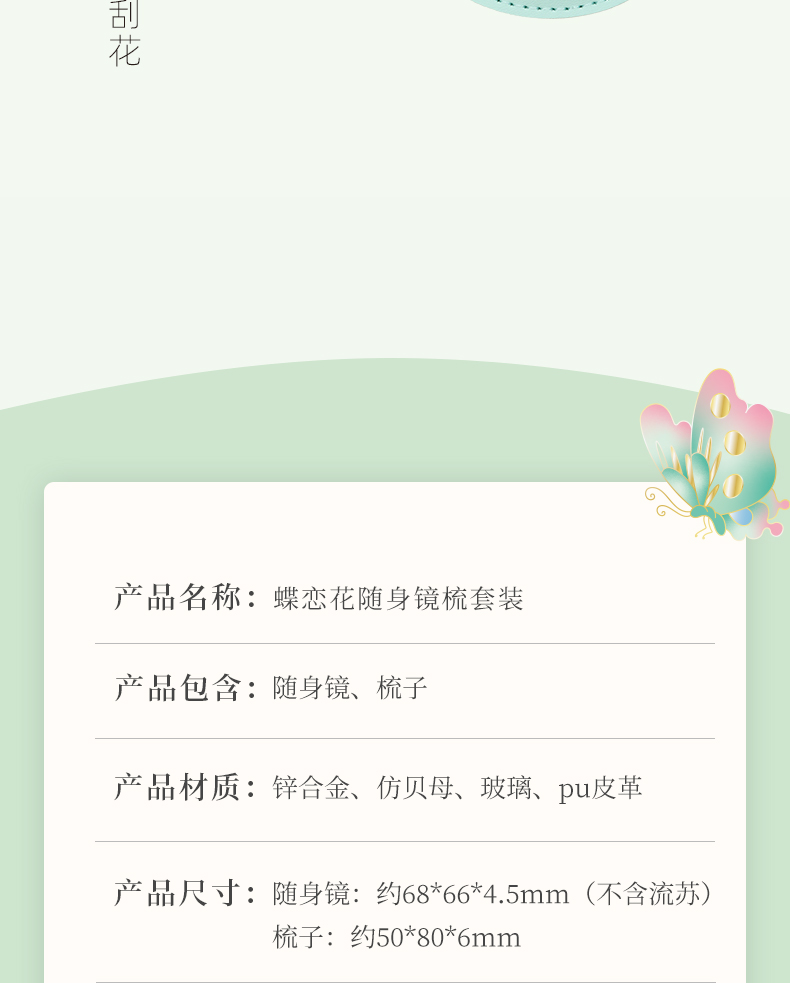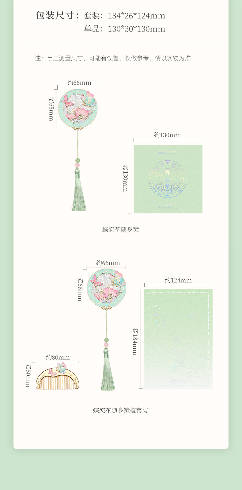 苏州博物馆 蝶恋花随身镜/镜梳套装