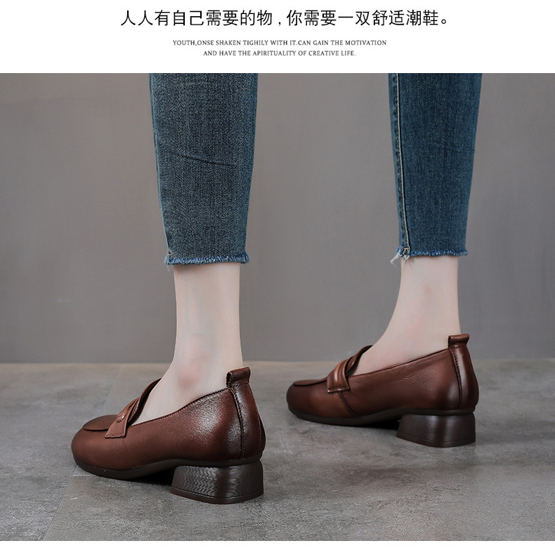 YR 2736真皮粗跟大码舒适单鞋休闲鞋 商品图1
