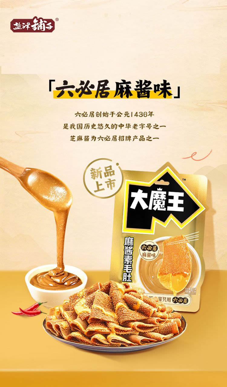 【魔王香菜麻酱,美味无限】盐津铺子大魔王香菜麻酱素毛肚 六必居麻酱味素毛肚 脆零食整盒-QQ