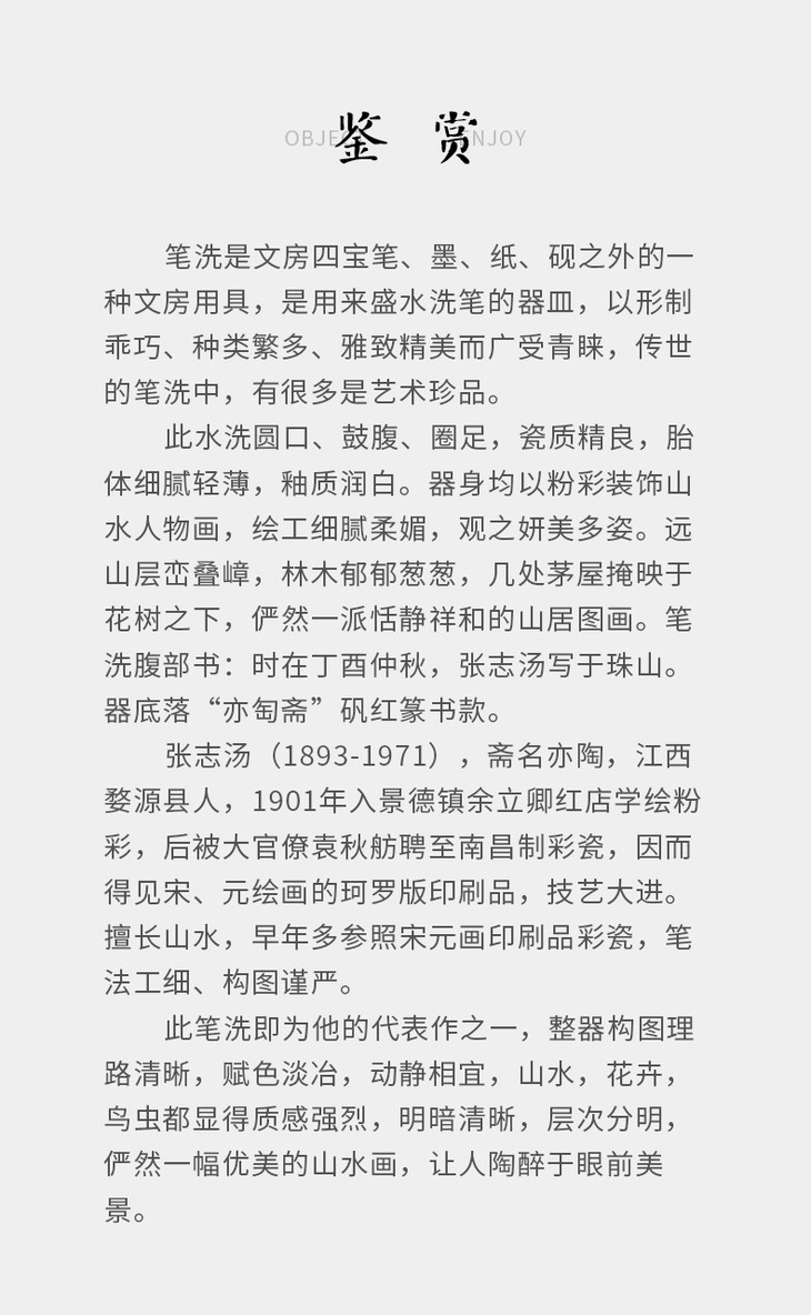 民国 亦匋斋张志汤作粉彩山水人物笔洗