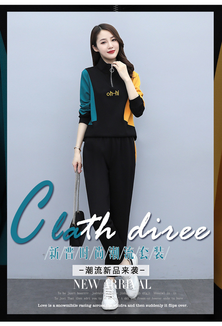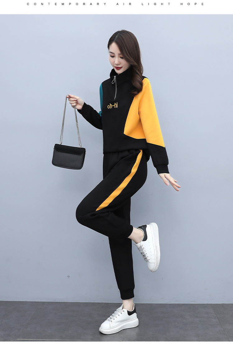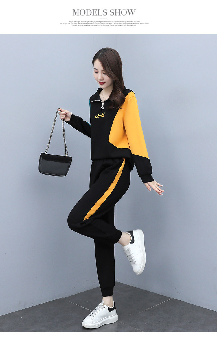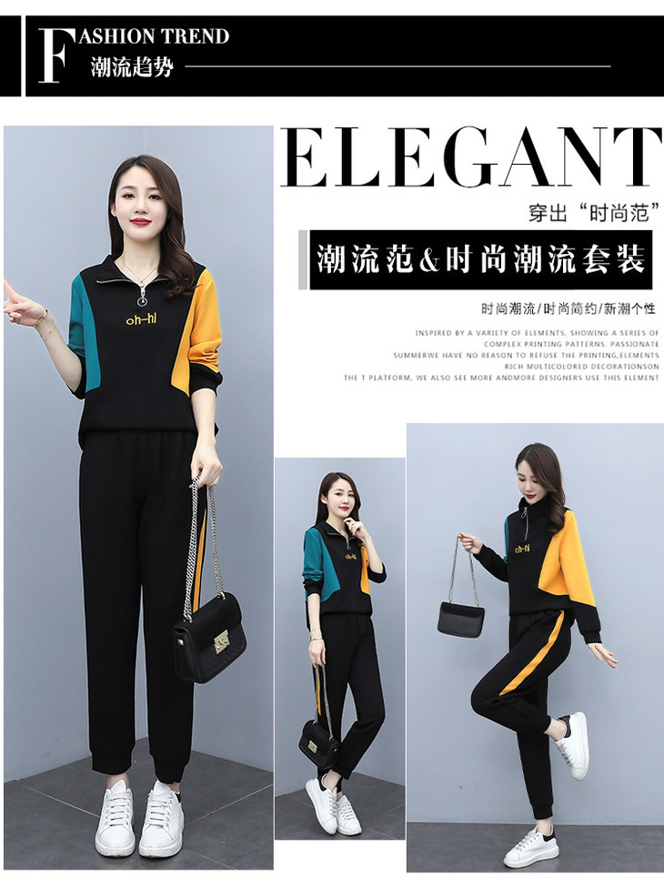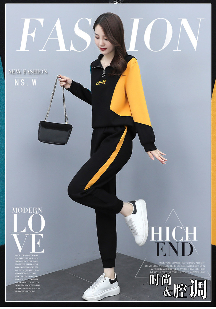 YHSS194569新款时尚气质休闲撞色卫衣运动裤两件套