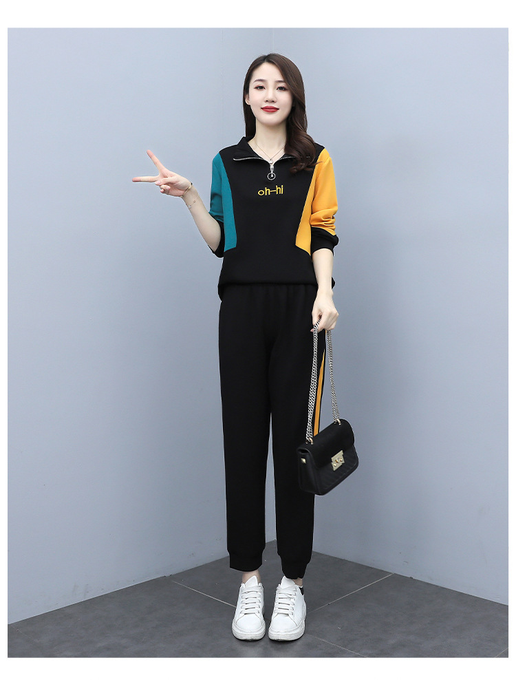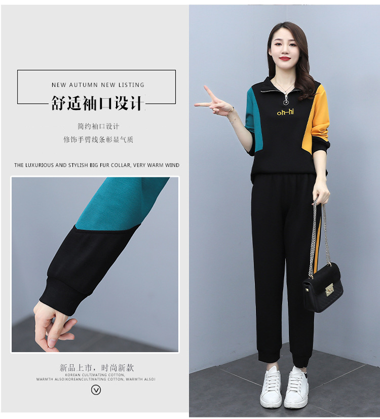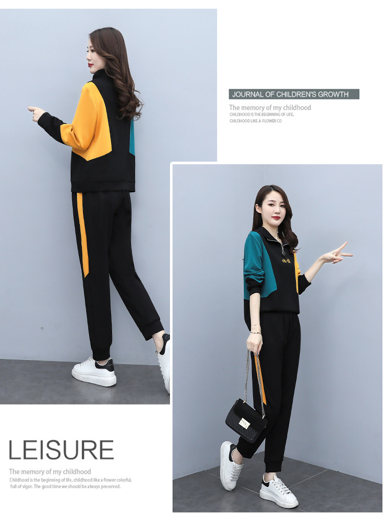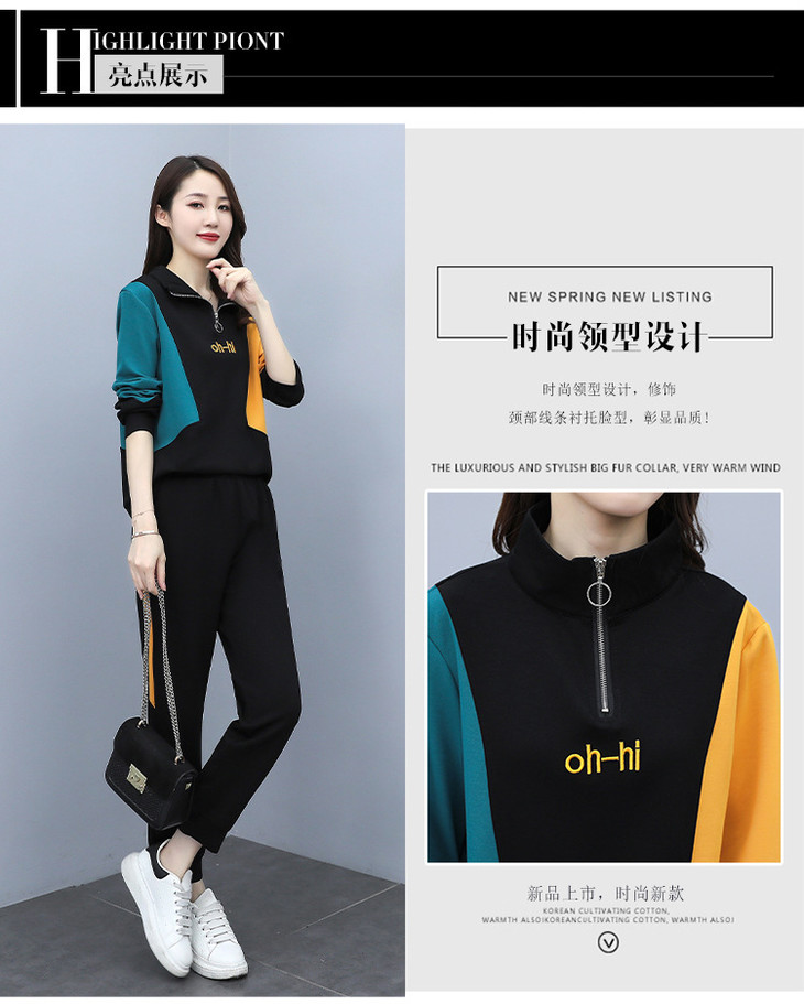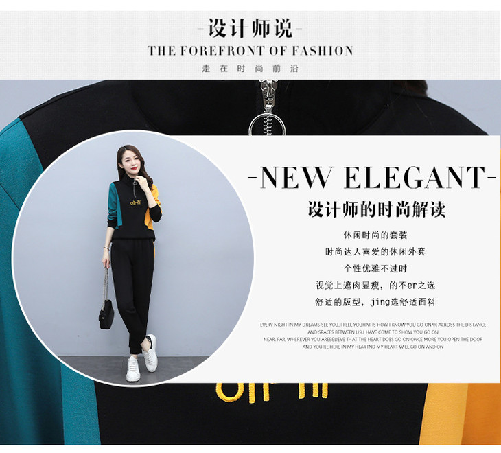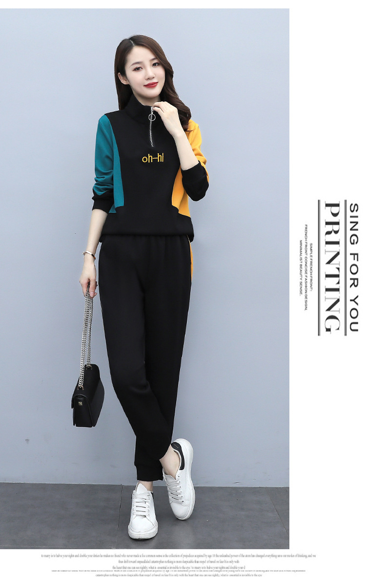 YHSS194569新款时尚气质休闲撞色卫衣运动裤两件套