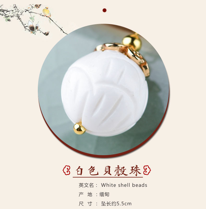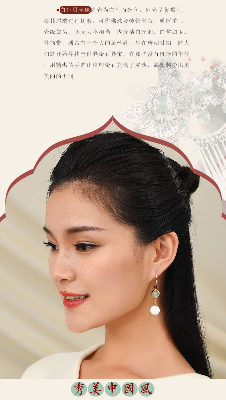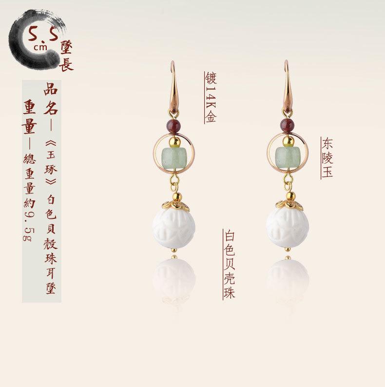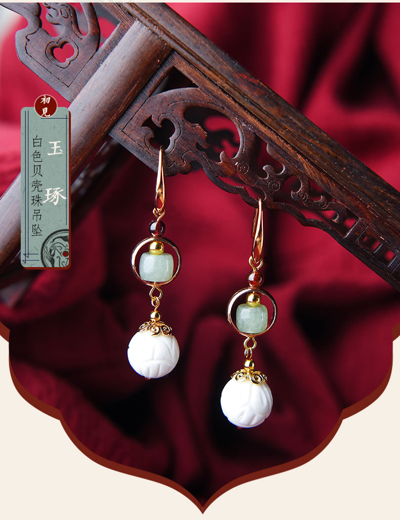 JGL-03220100气质古风复古耳环简约白贝壳莲花耳坠汉服耳环