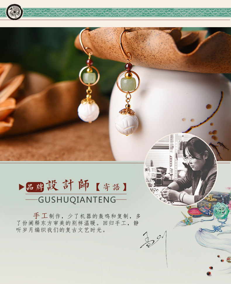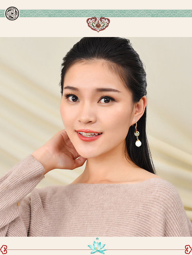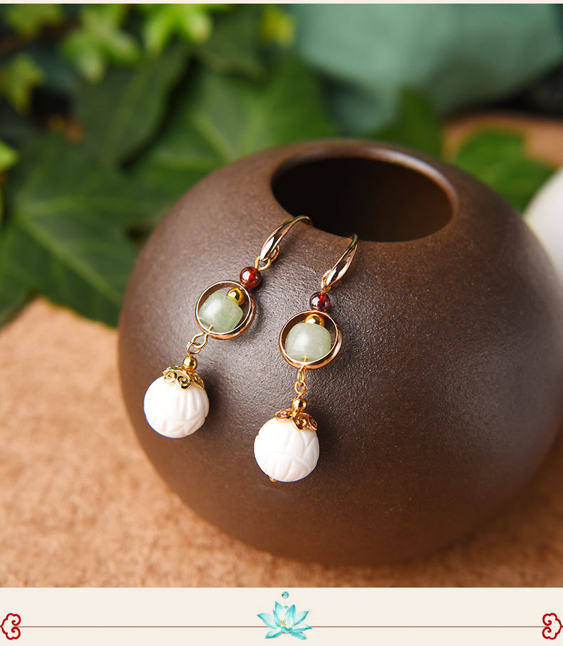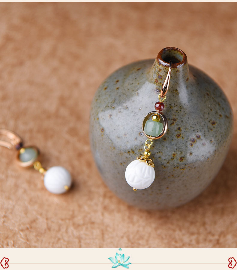 JGL-03220100气质古风复古耳环简约白贝壳莲花耳坠汉服耳环