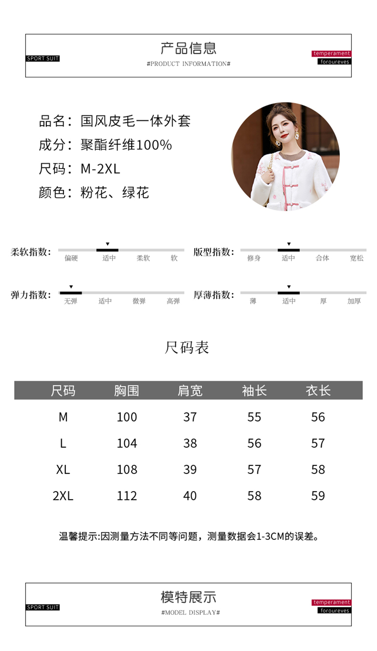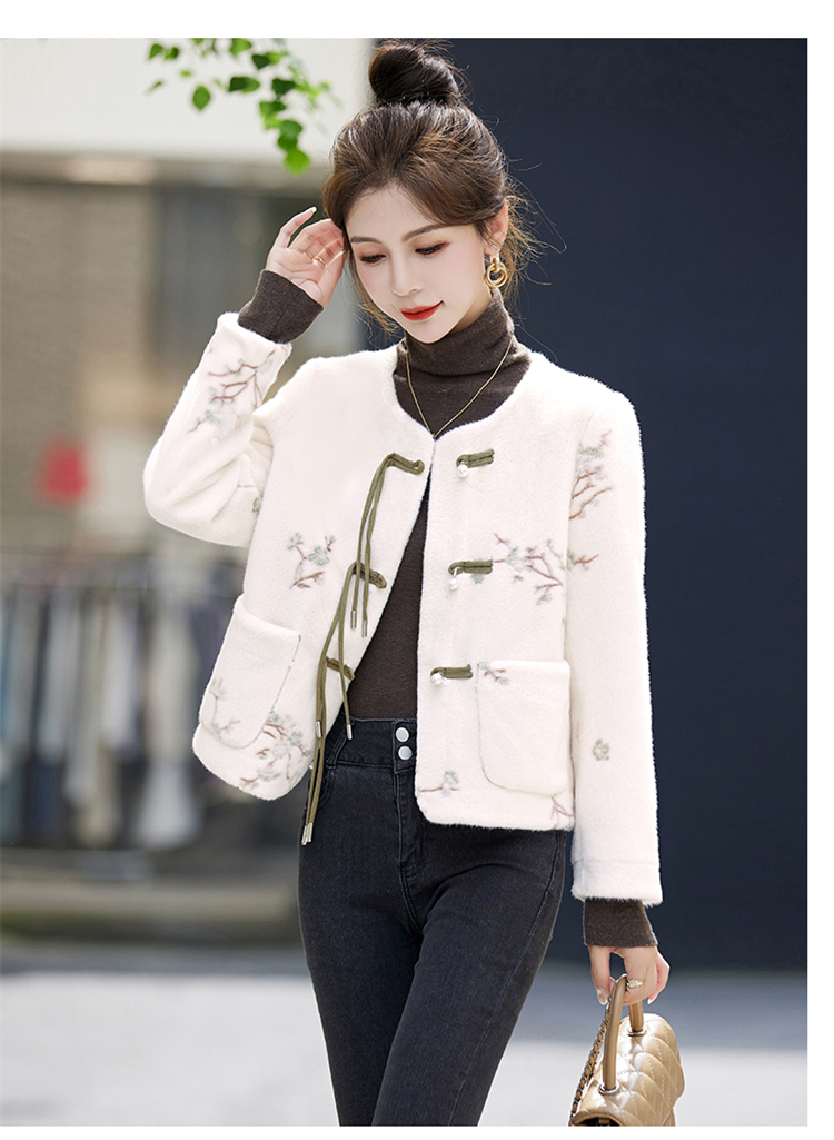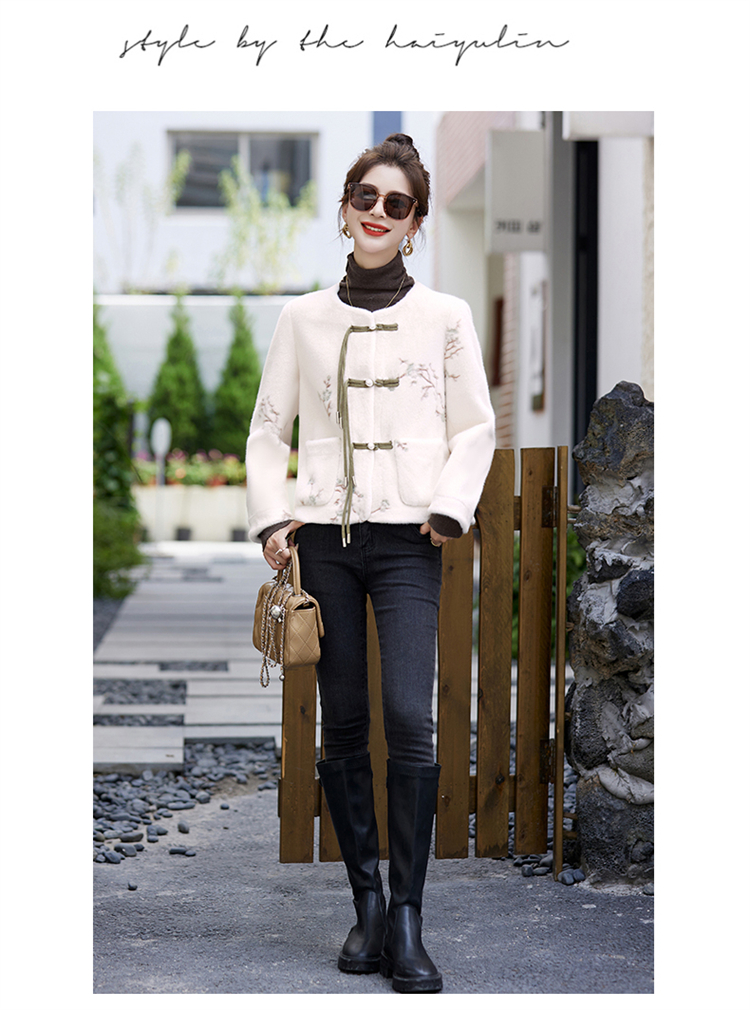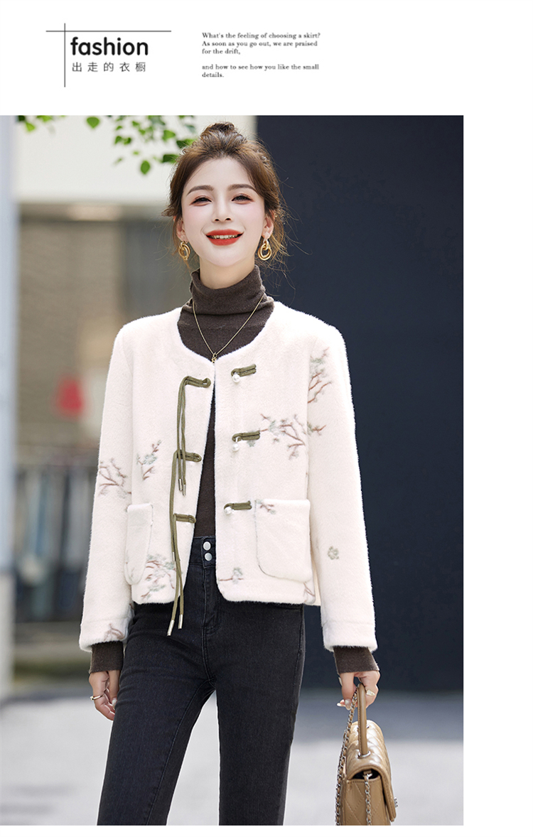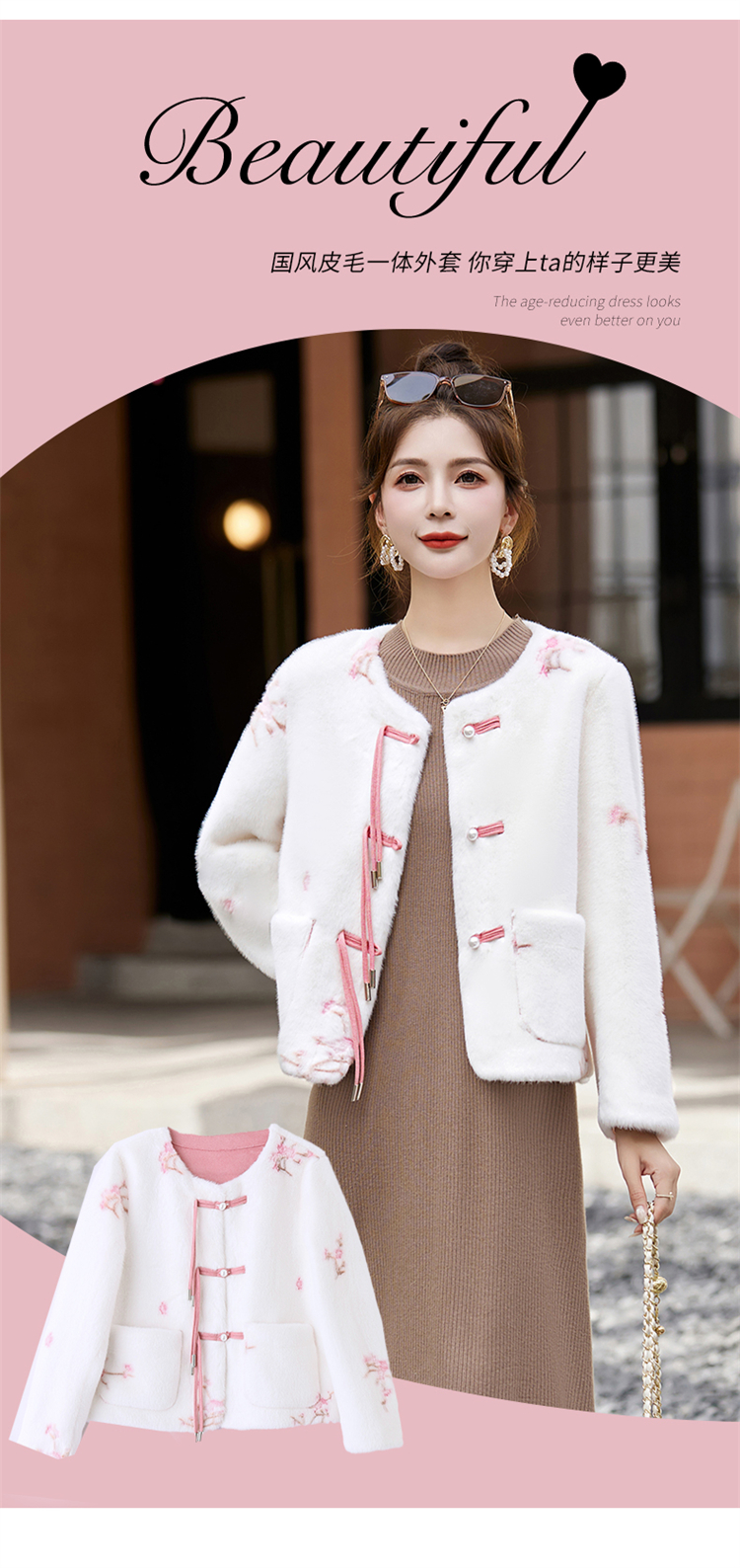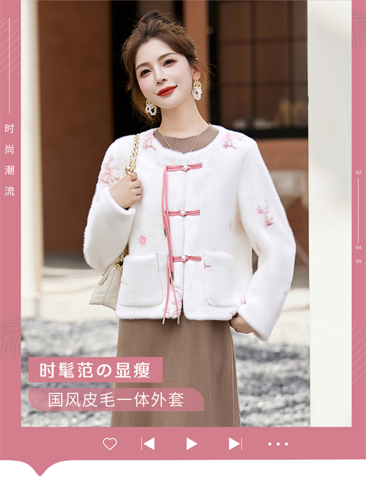 冬季新款,新中式盘扣时尚皮毛一体外套HR-XXM90