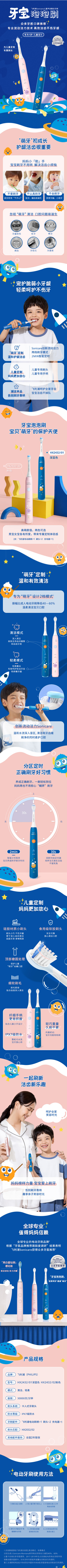 PHILIPS飞利浦儿童声波震动电动牙刷(HX2432/01 HX2432/02)