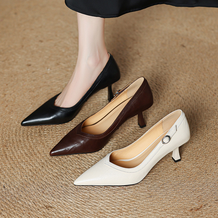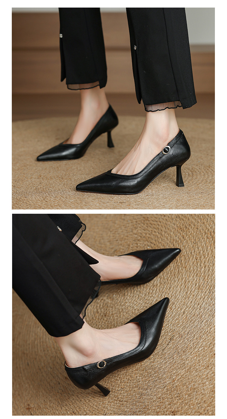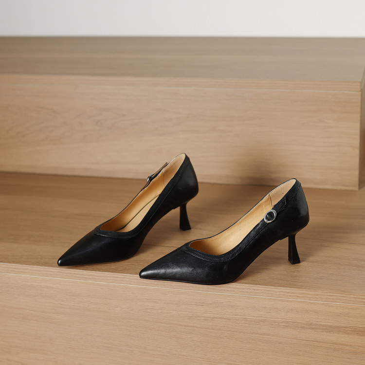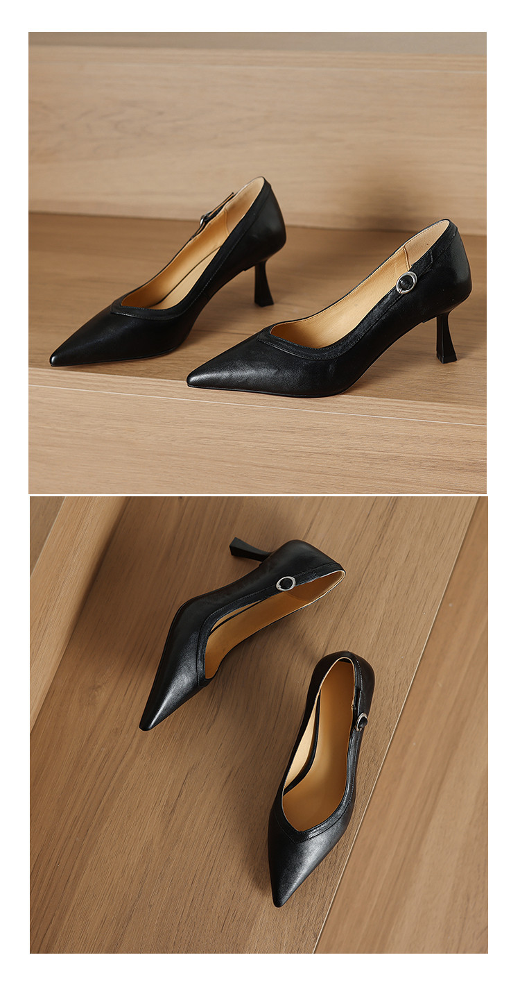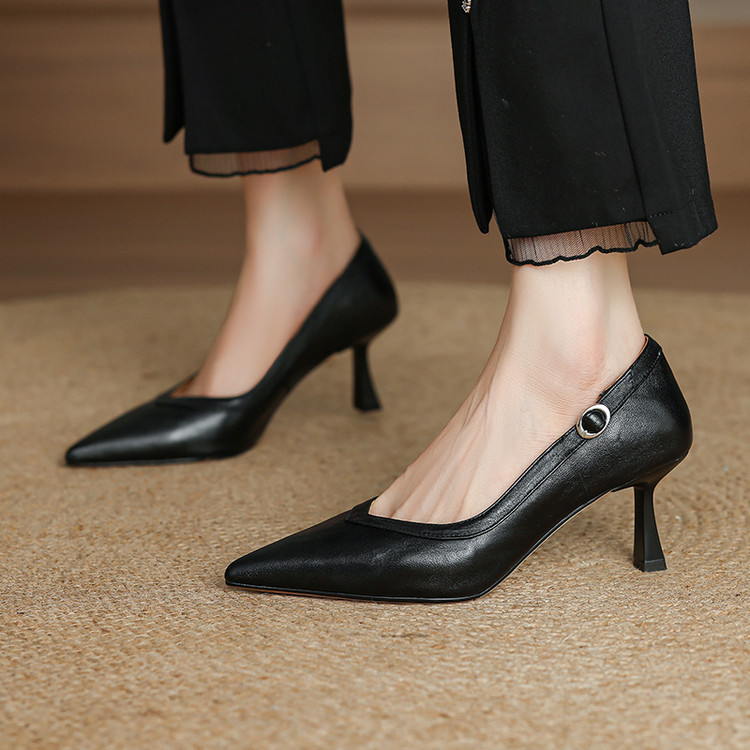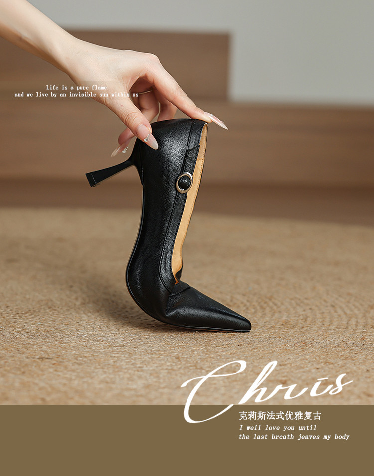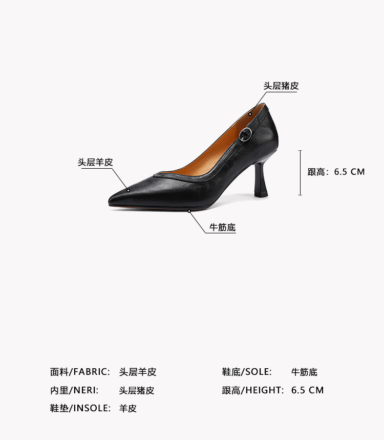 【预售5天】职场女王范植鞣软羊皮工作鞋秋细跟高跟尖头真皮浅口单鞋MLJ&C165