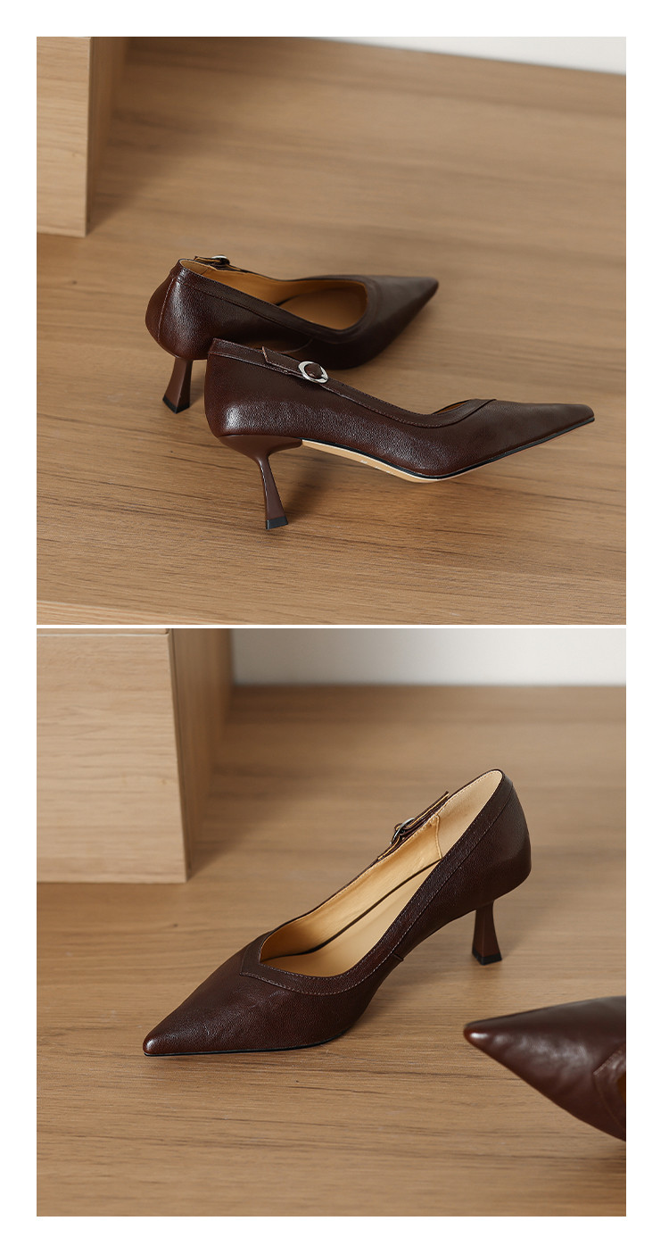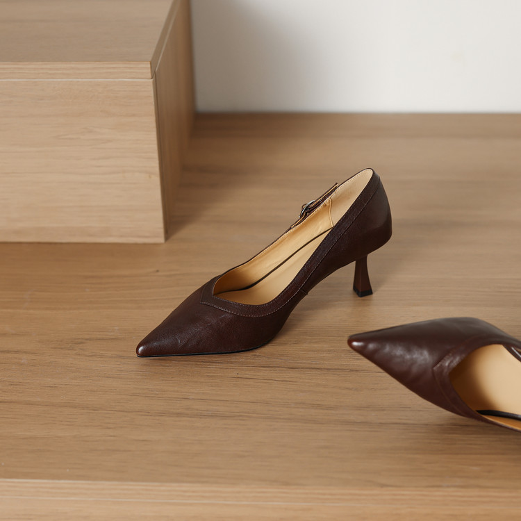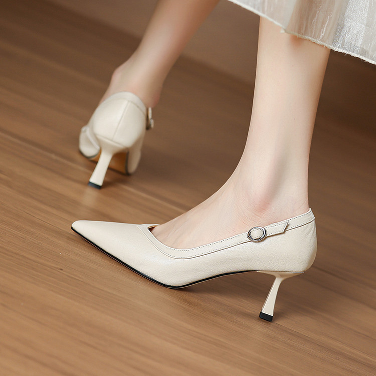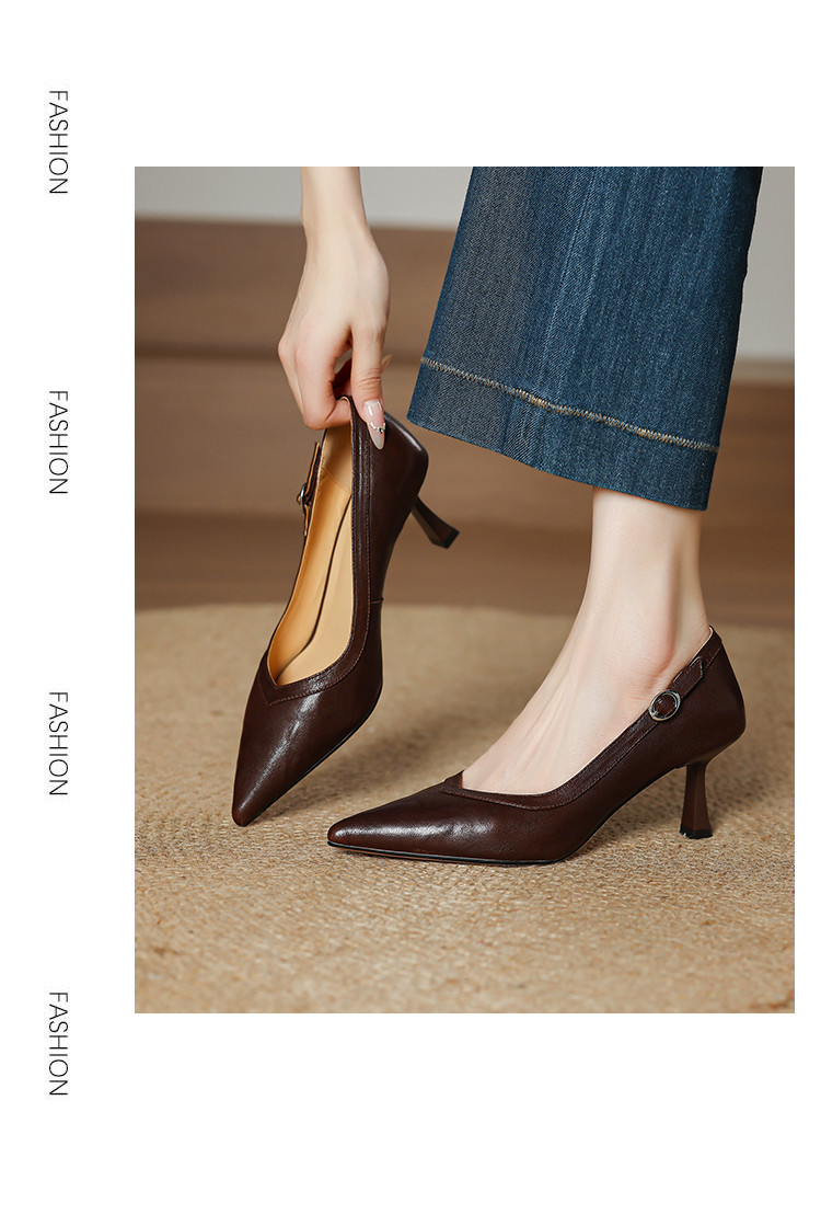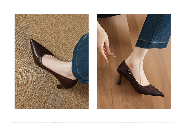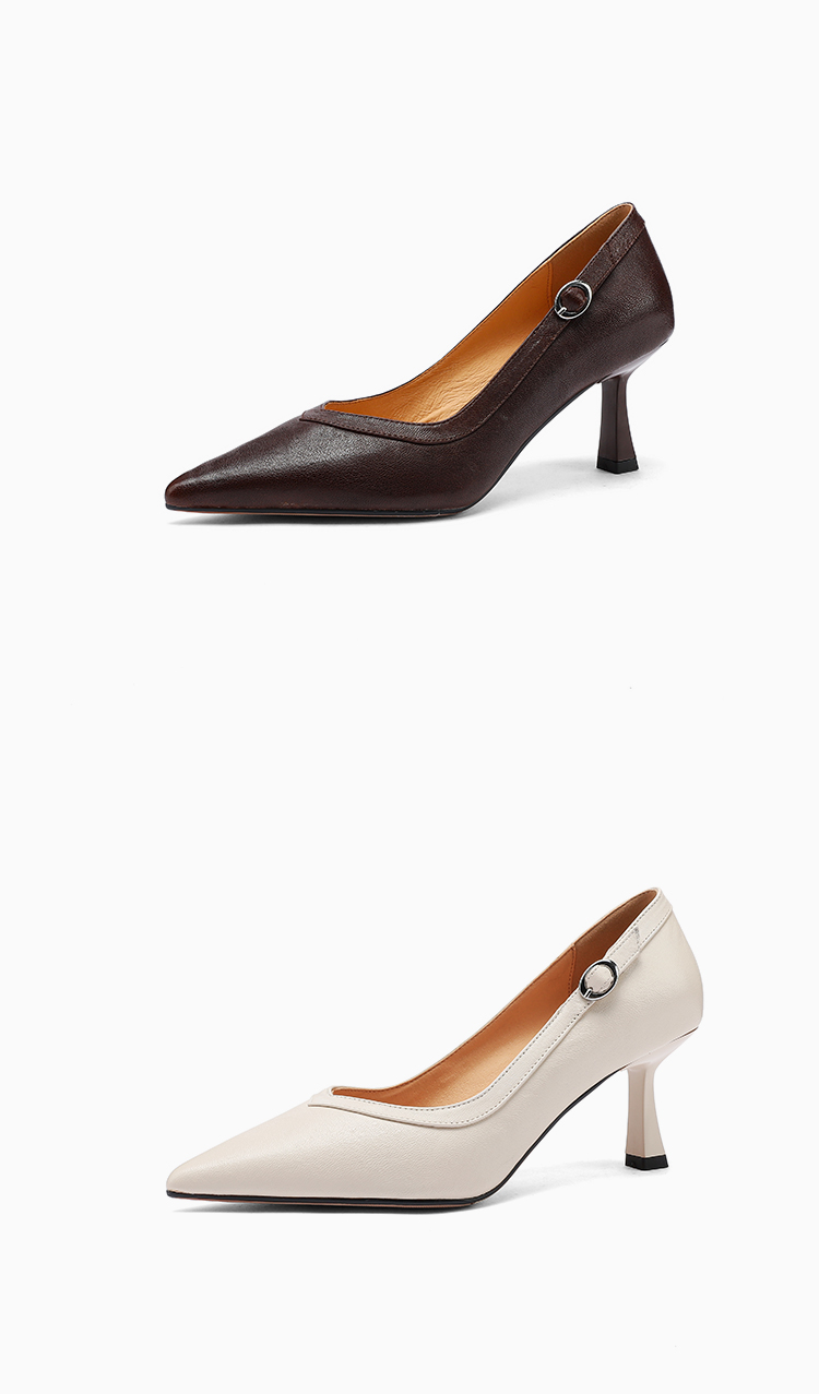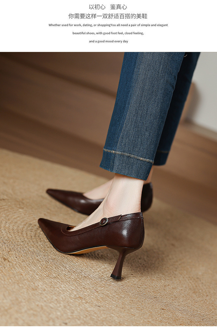 【预售5天】职场女王范植鞣软羊皮工作鞋秋细跟高跟尖头真皮浅口单鞋MLJ&C165
