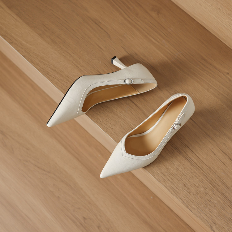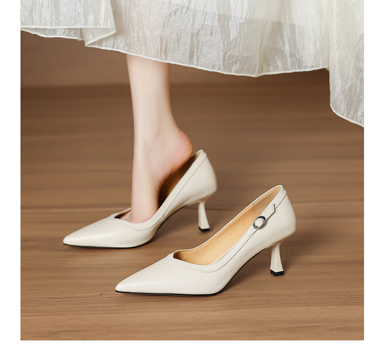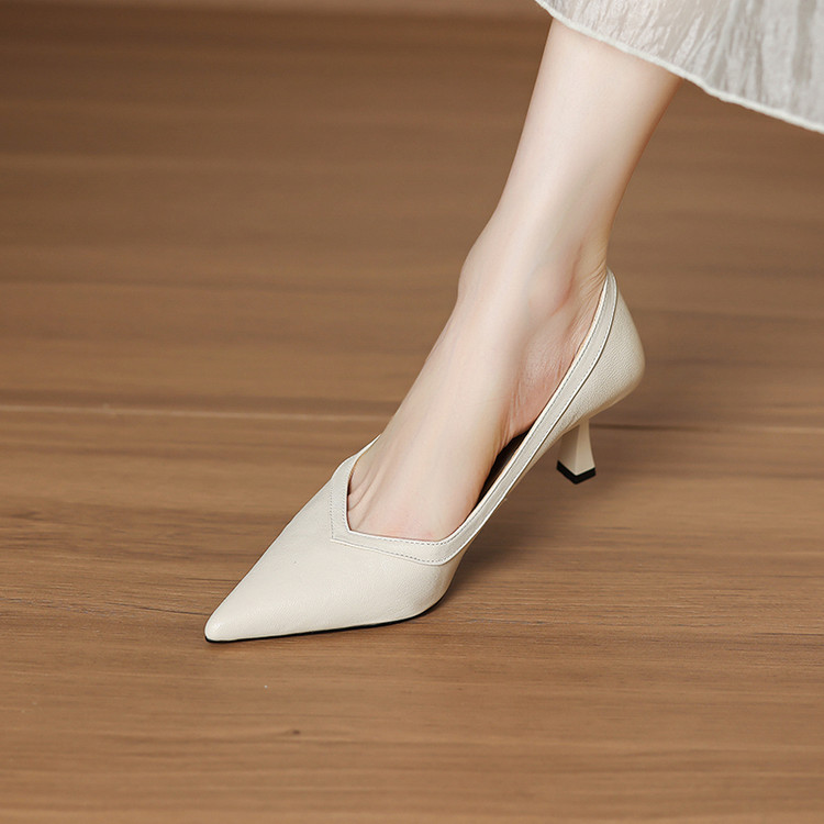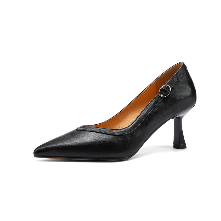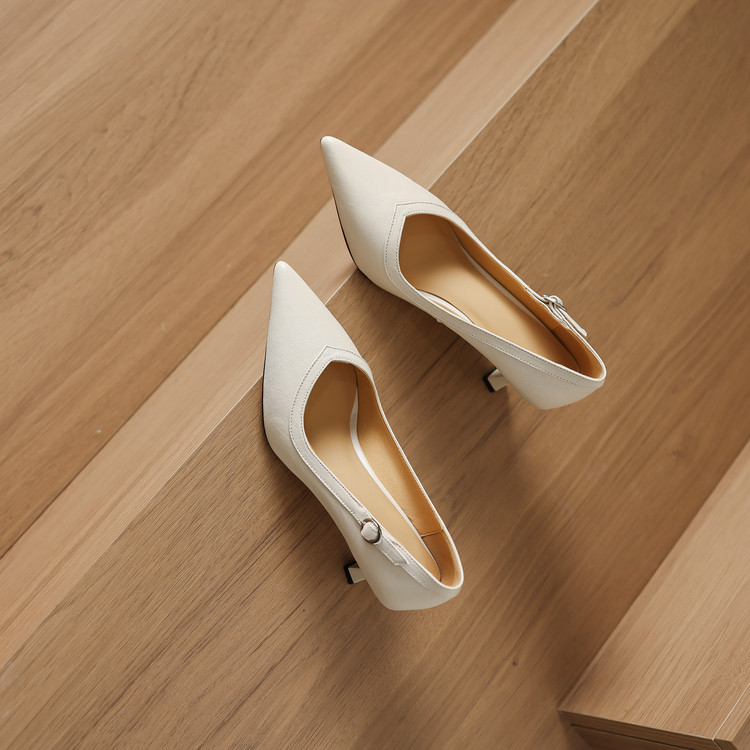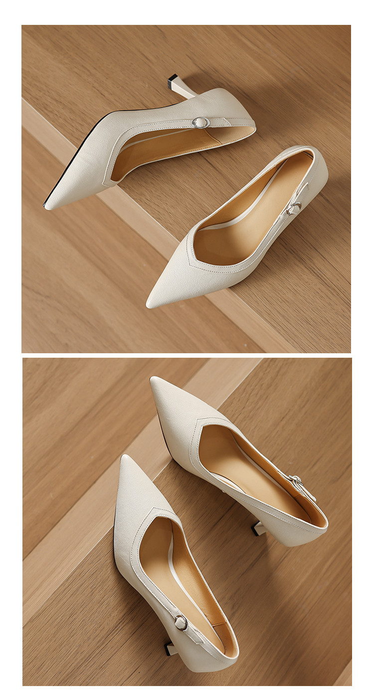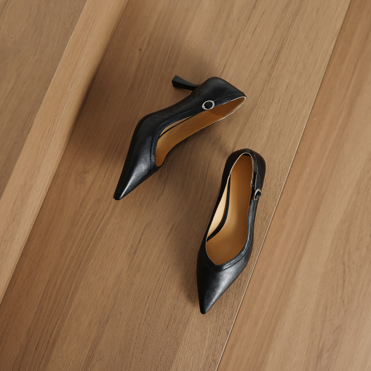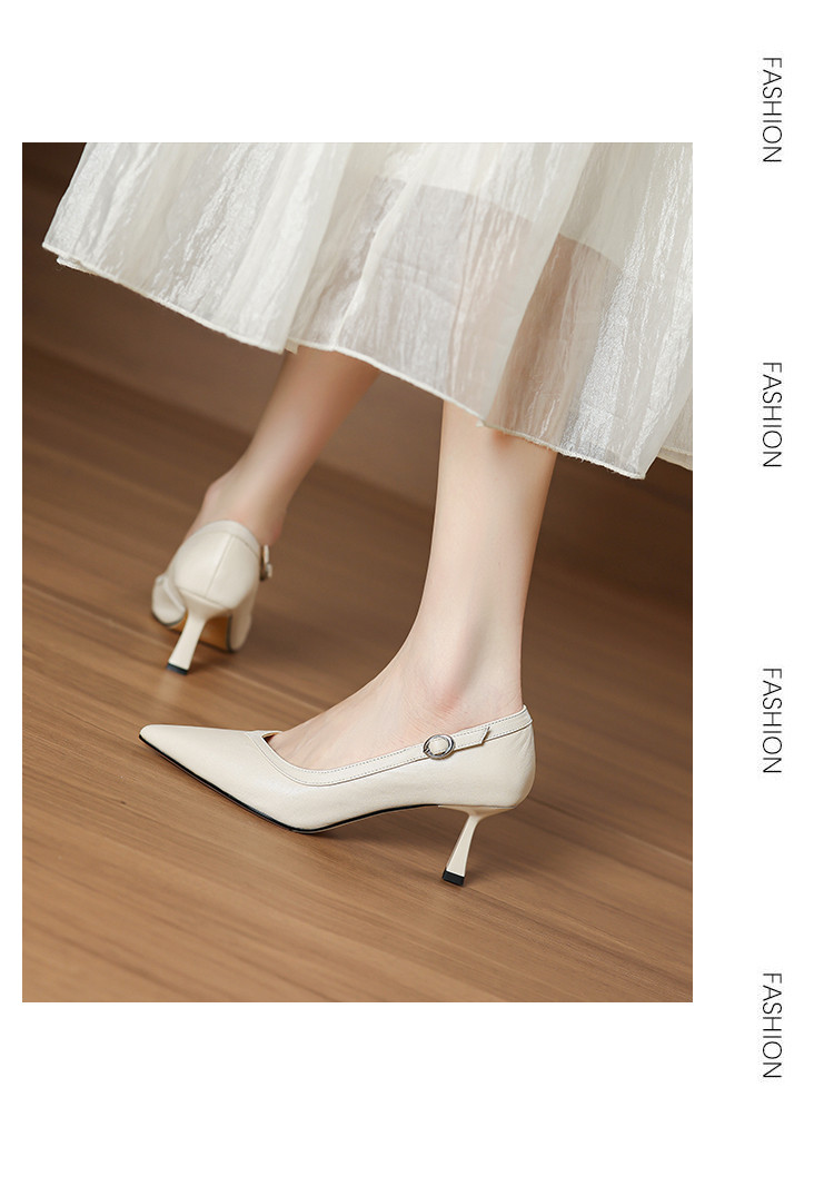 【预售5天】职场女王范植鞣软羊皮工作鞋秋细跟高跟尖头真皮浅口单鞋MLJ&C165