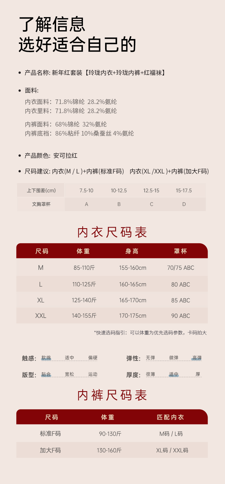 1、内裤、袜子请勿擅自拆封,一经拆封不支持无理由退换货,请于确认收货前不要拆封哦,以免影响内衣尺码更换;