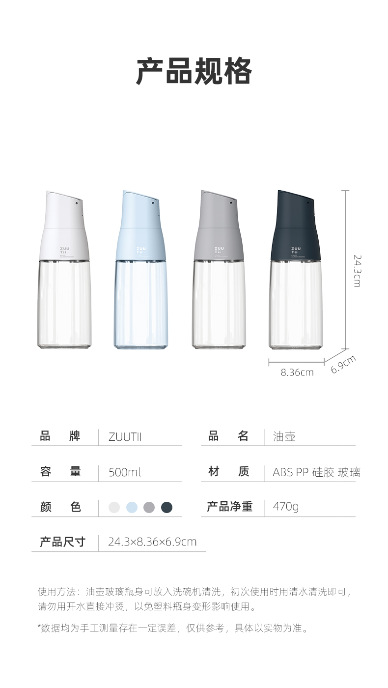 加拿大ZUUTii玻璃油壶套装自动开盖油壶