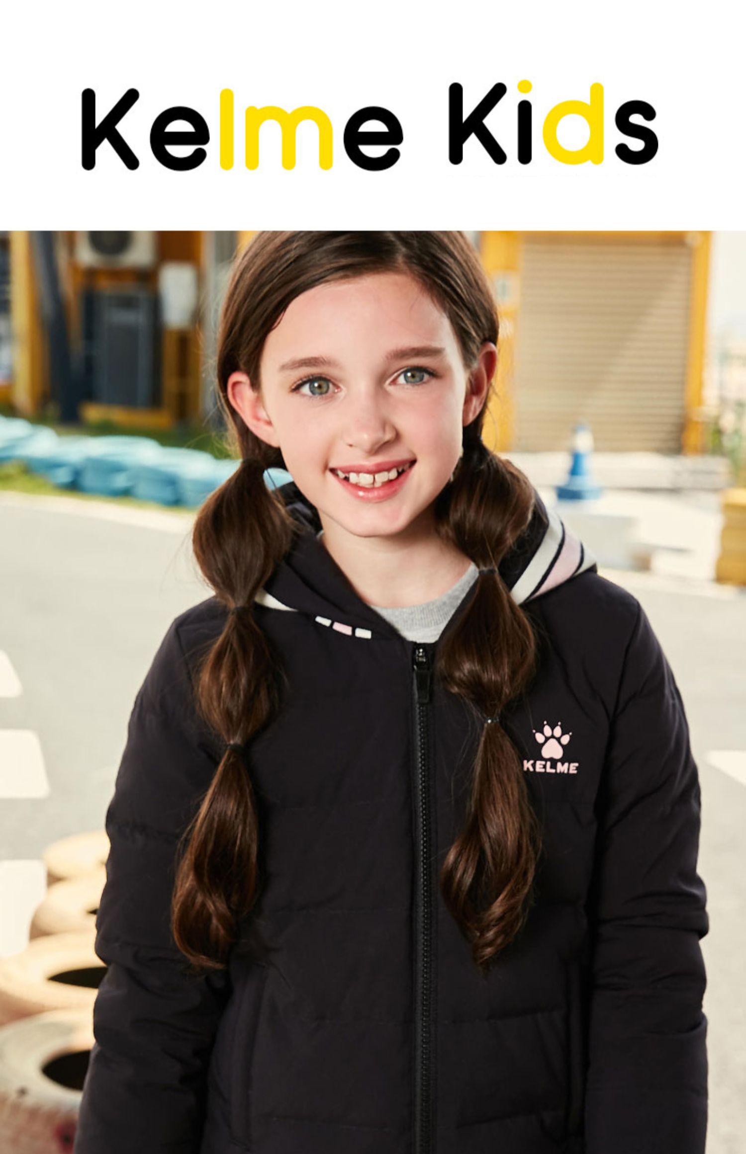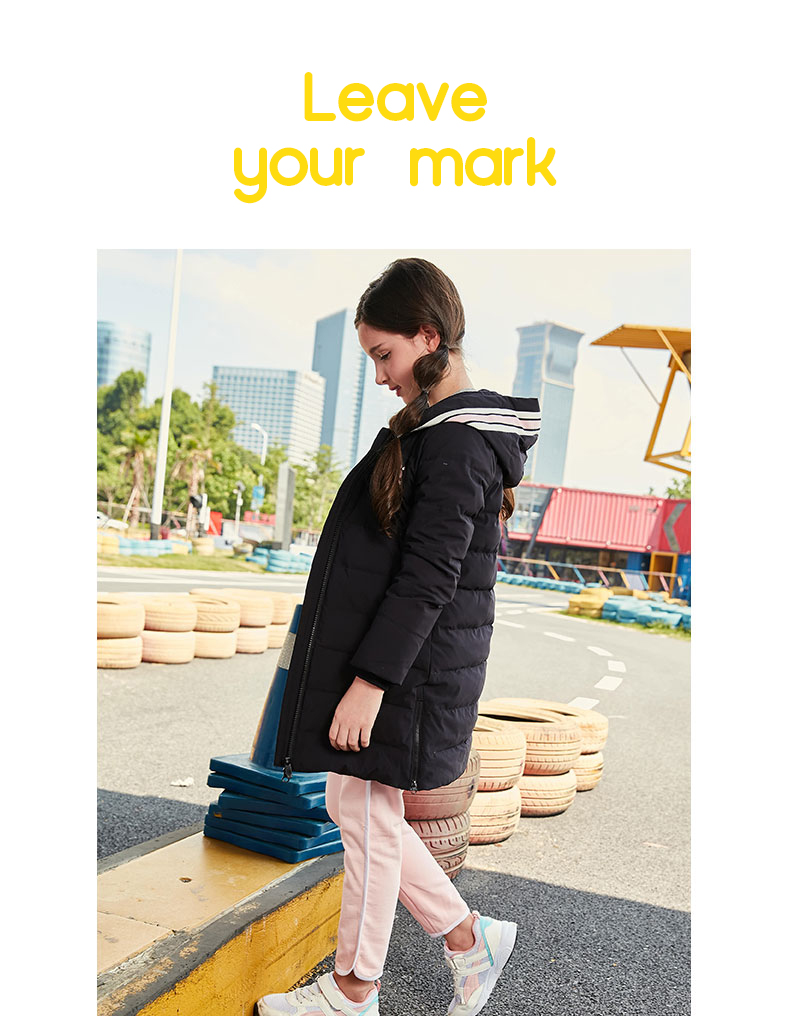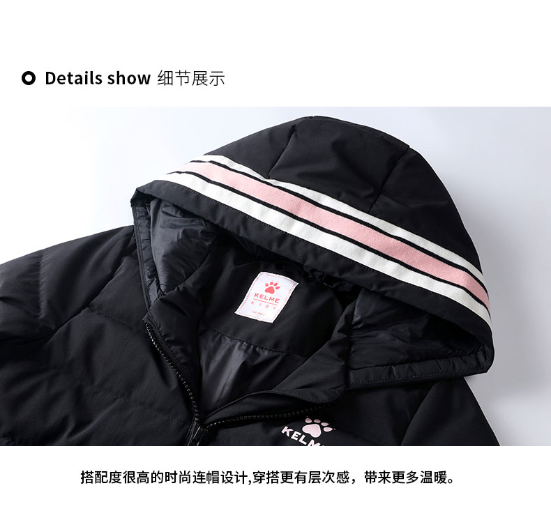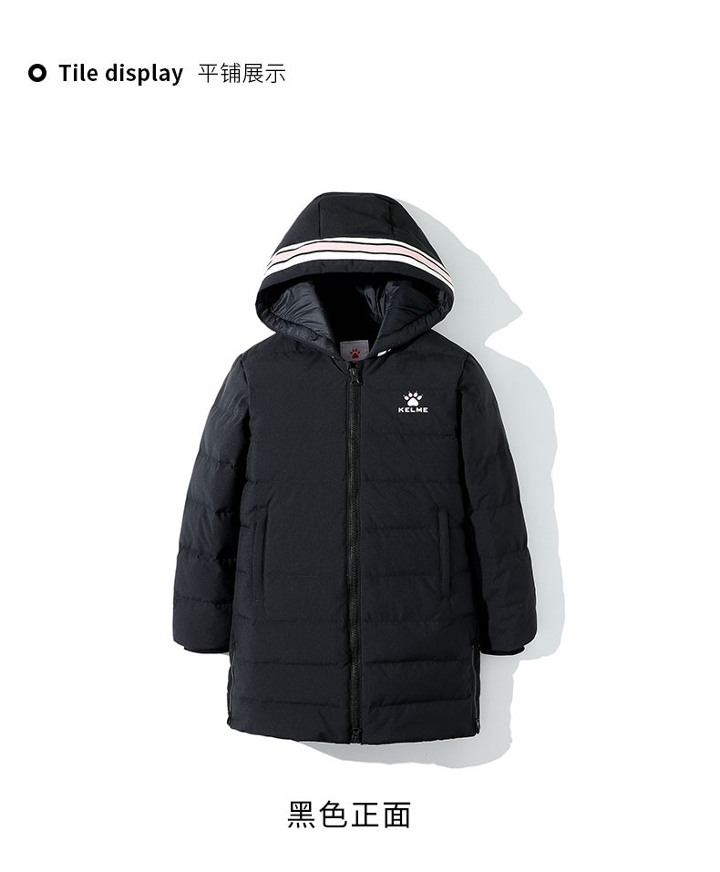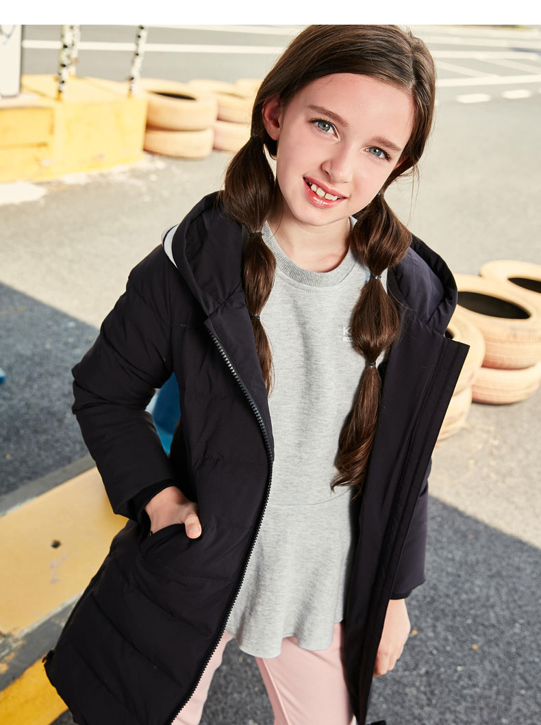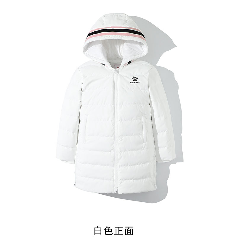 kelme(kids)女童中长款羽绒服秋冬新款白鸭绒舒适保暖外套