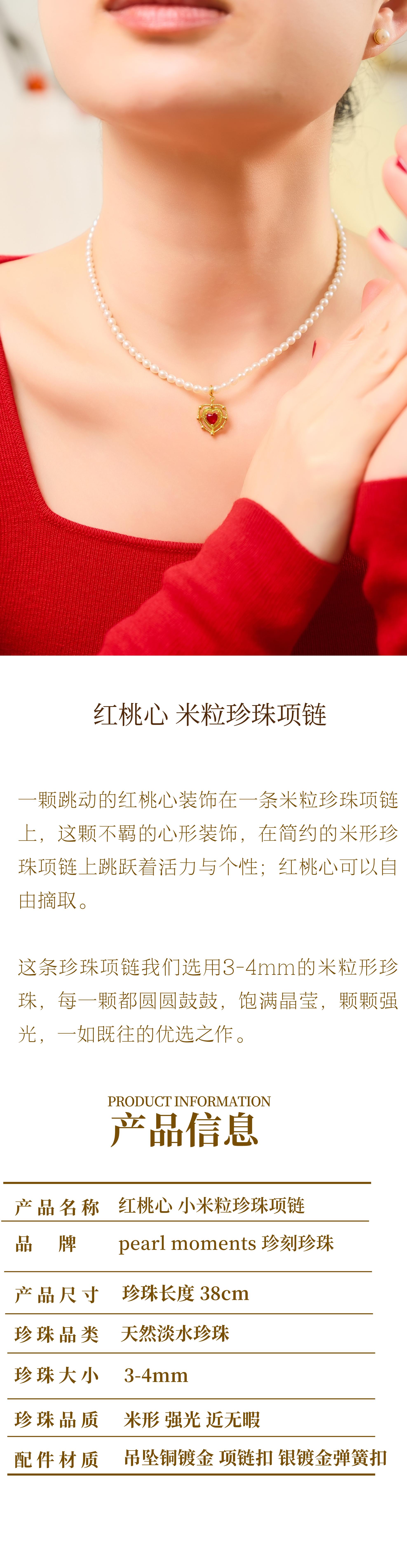 pearl moments珍刻 红桃心 米粒珍珠项链