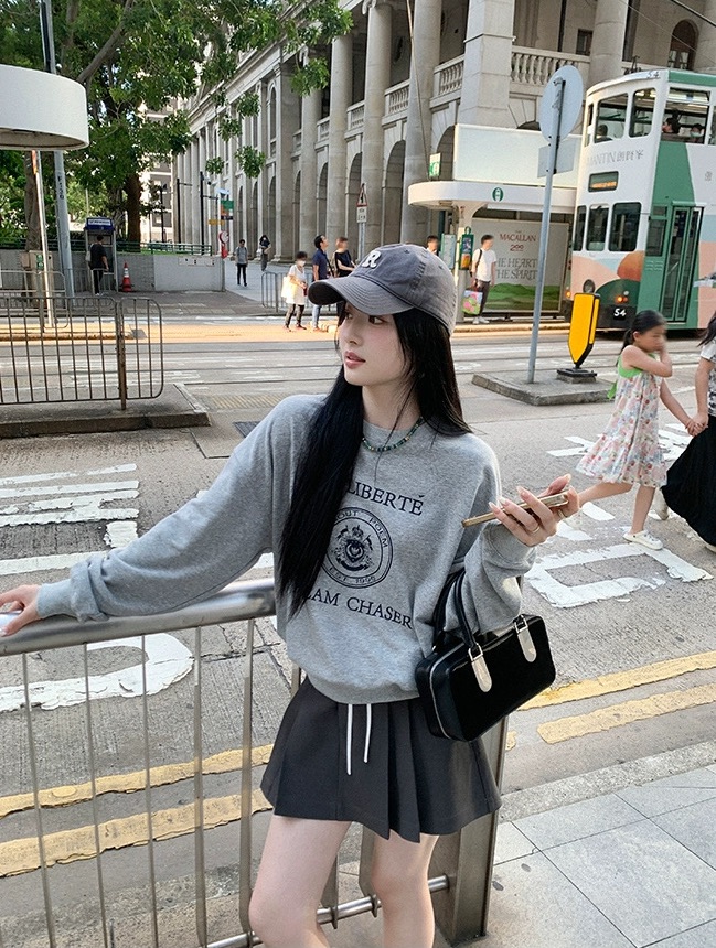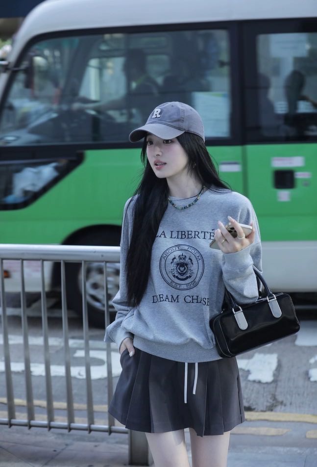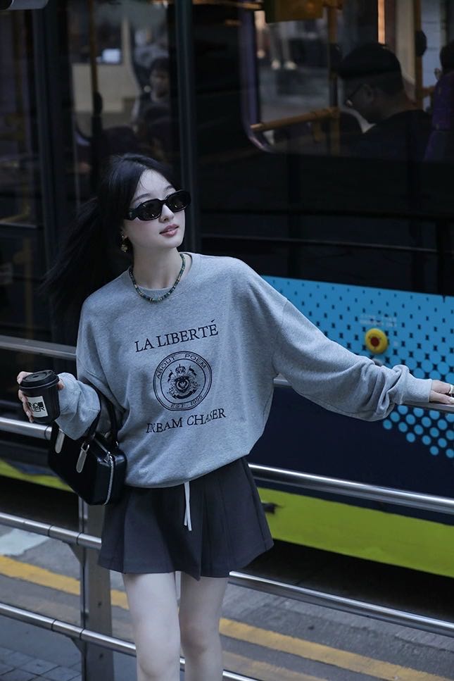 这个灰色绒tee,颜色高级特百搭,不挑肤色,不挑风格!