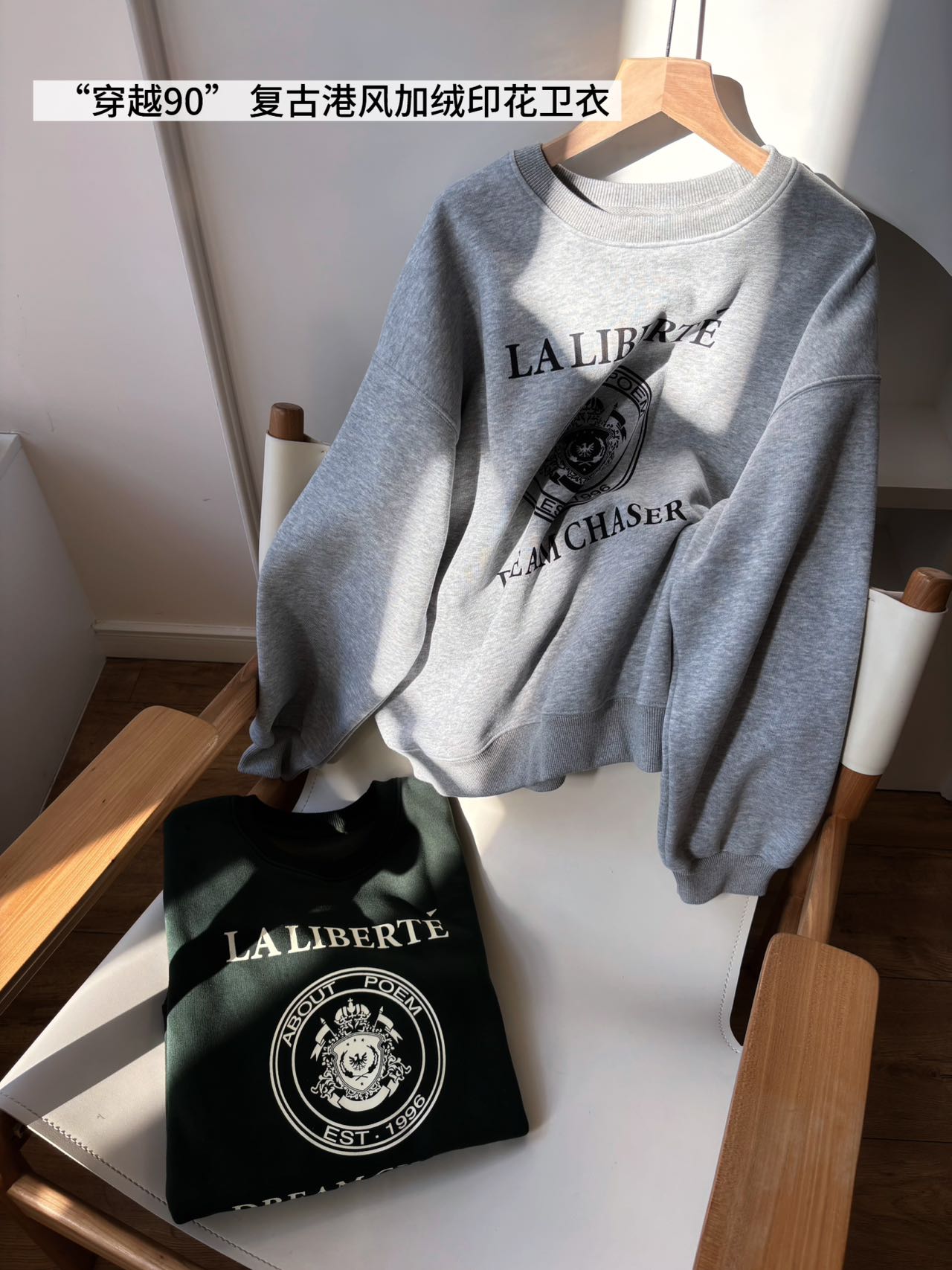 港风加绒印花卫衣、古着加绒印花卫衣、刺绣印花加绒卫衣面料成分:69%棉,31%聚酯纤维