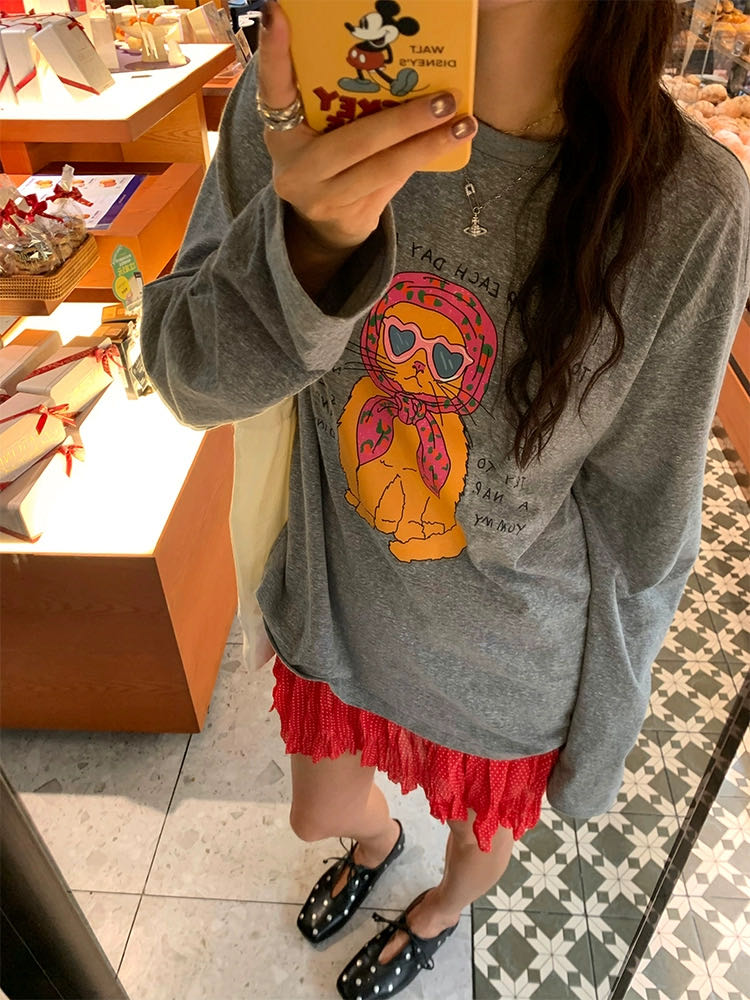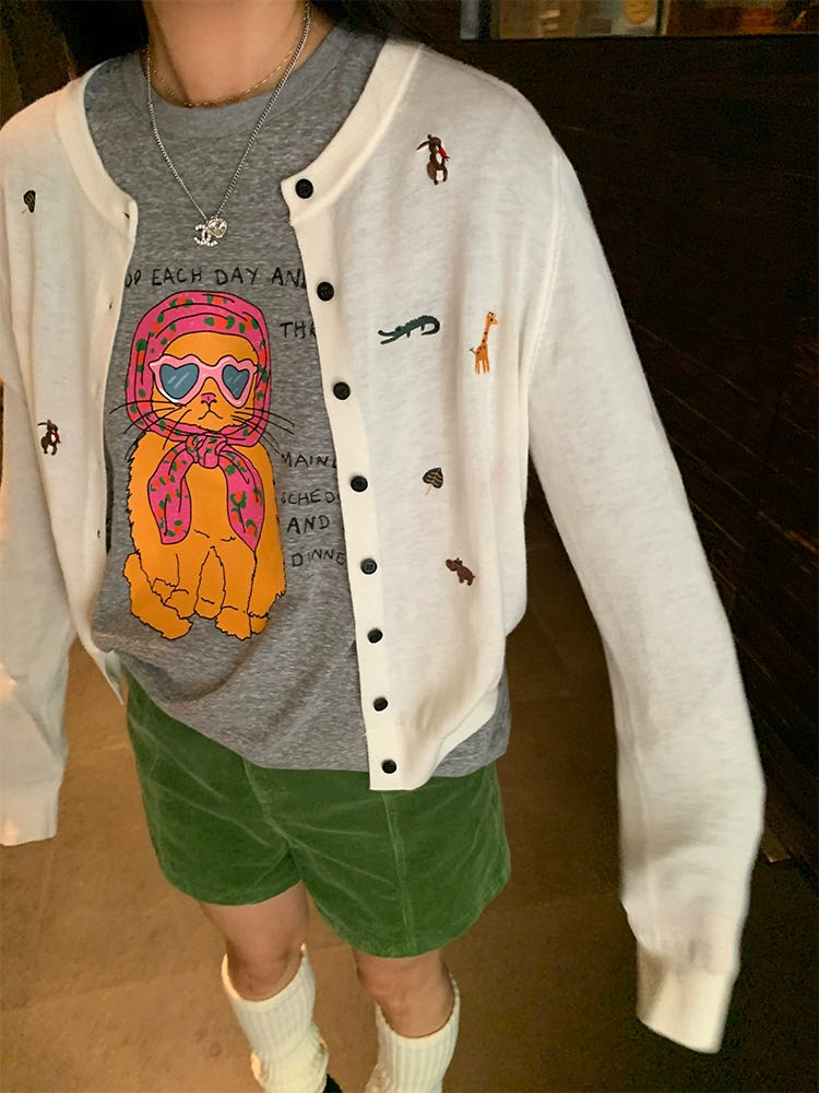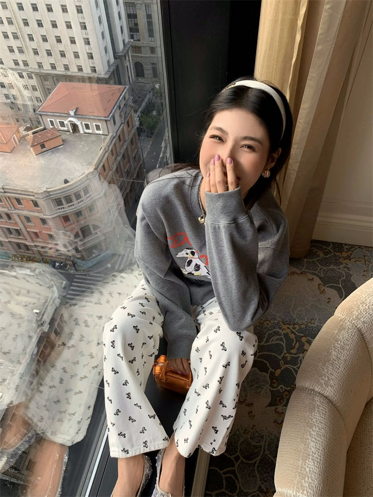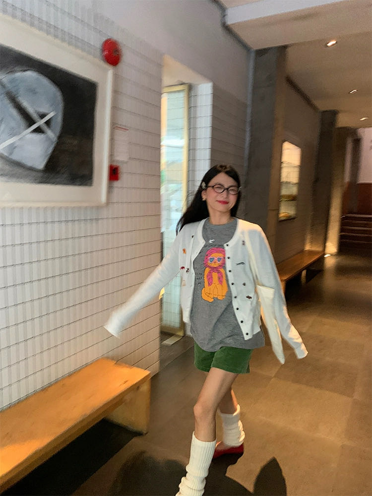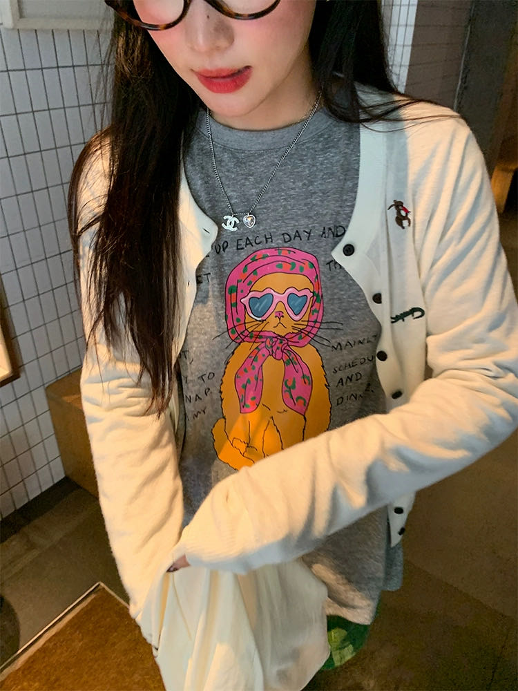 衣身的卡通图案也hen有意思,图案清晰俏皮,减龄且百搭~