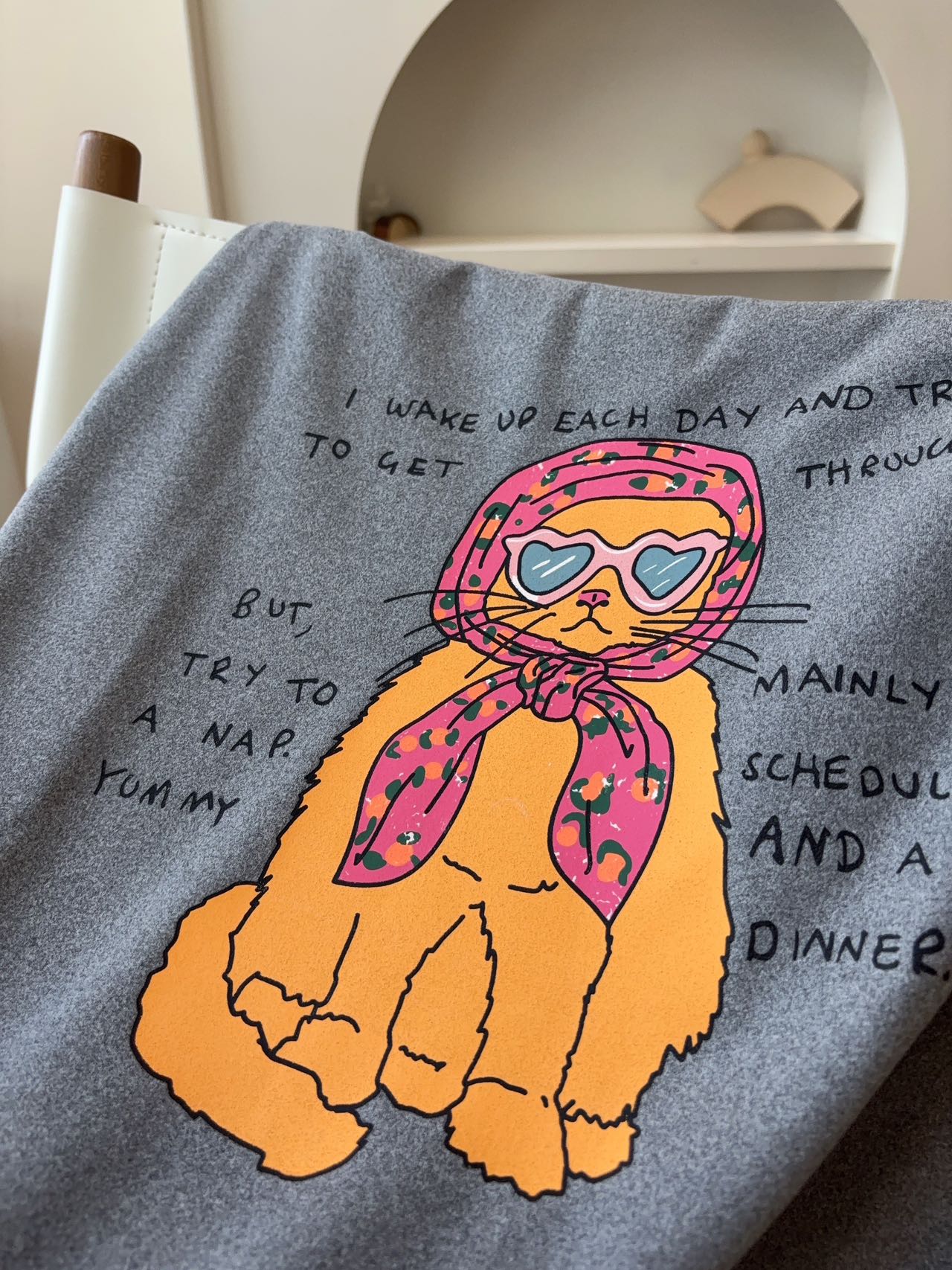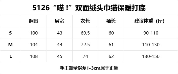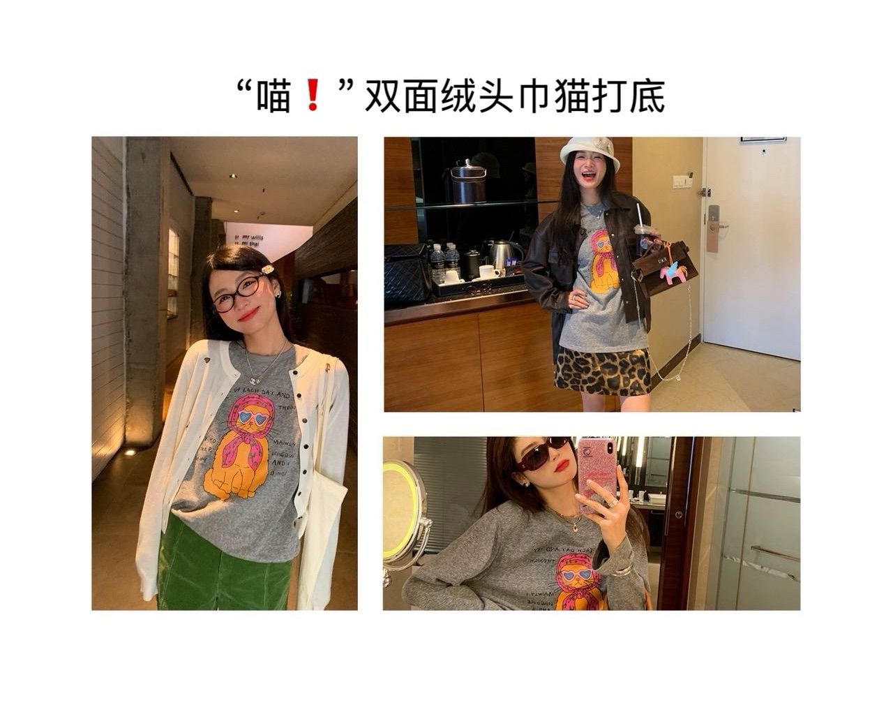 双面绒头巾猫打底T恤面料成分:94%聚酯纤维 6%氨纶
