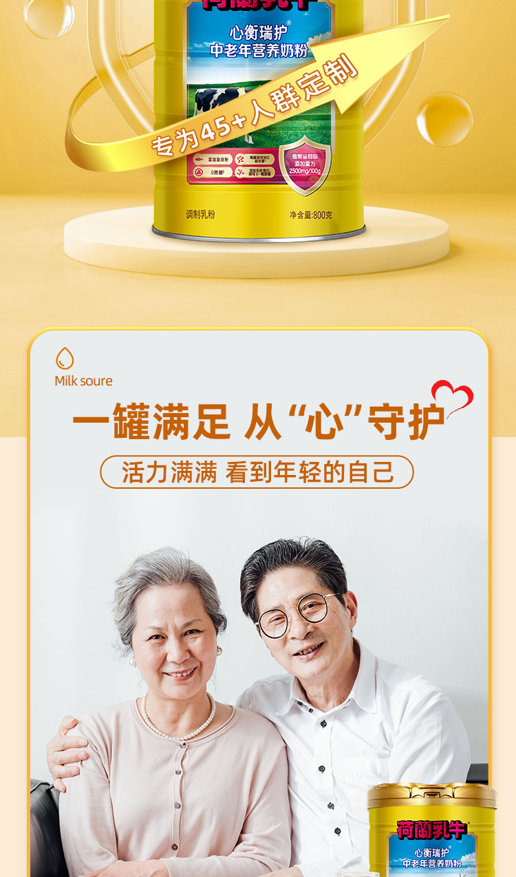 【送麦片】荷兰乳牛心衡瑞护中老年营养奶粉800g罐 富硒鱼油配方牛乳乳铁蛋白奶粉 25年1月产