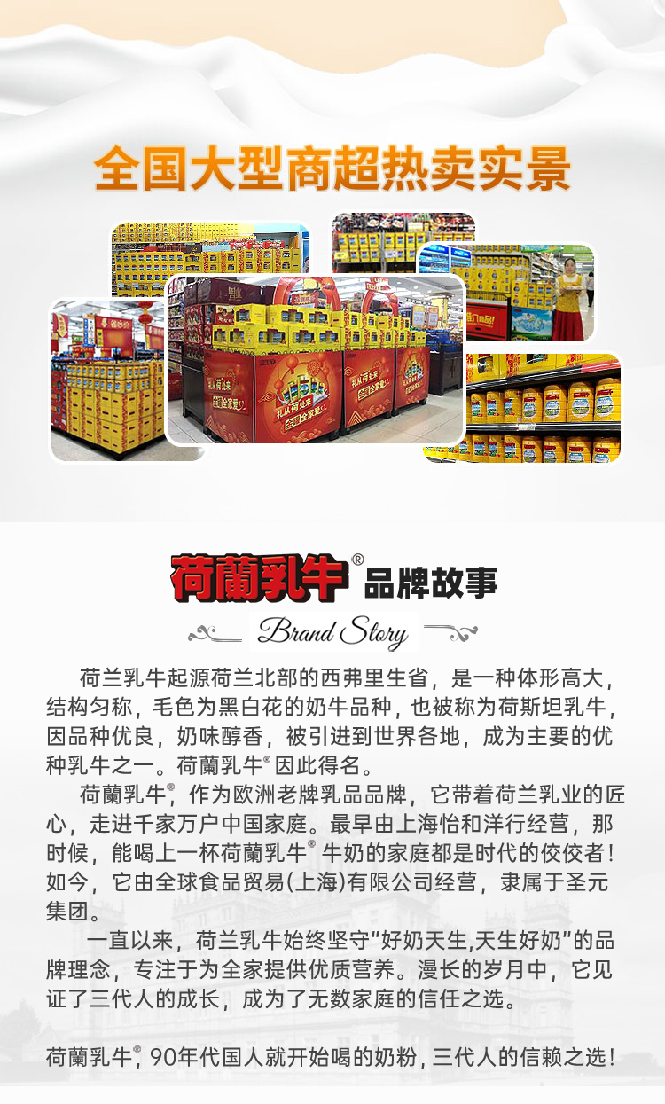 - 荷兰乳牛品牌于1990年进入中国,相伴31年始终致力于为更多家庭奉上优种荷兰乳牛带来的营养与美味。秉承“珍选至纯营养,传承经典醇香”的理念,打造一个覆盖全人群、多品类、高品质的国际化品牌。