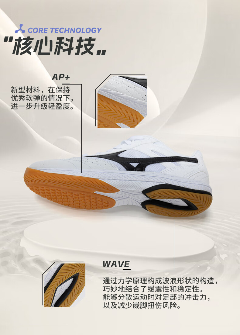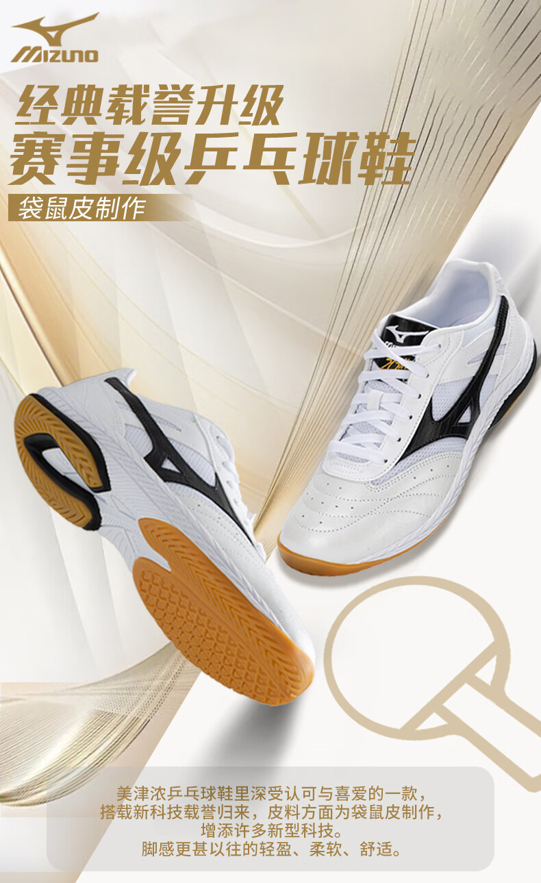 Mizuno美津浓乒乓球鞋220109专业乒乓球运动鞋白黑色(附赠鞋袋)
