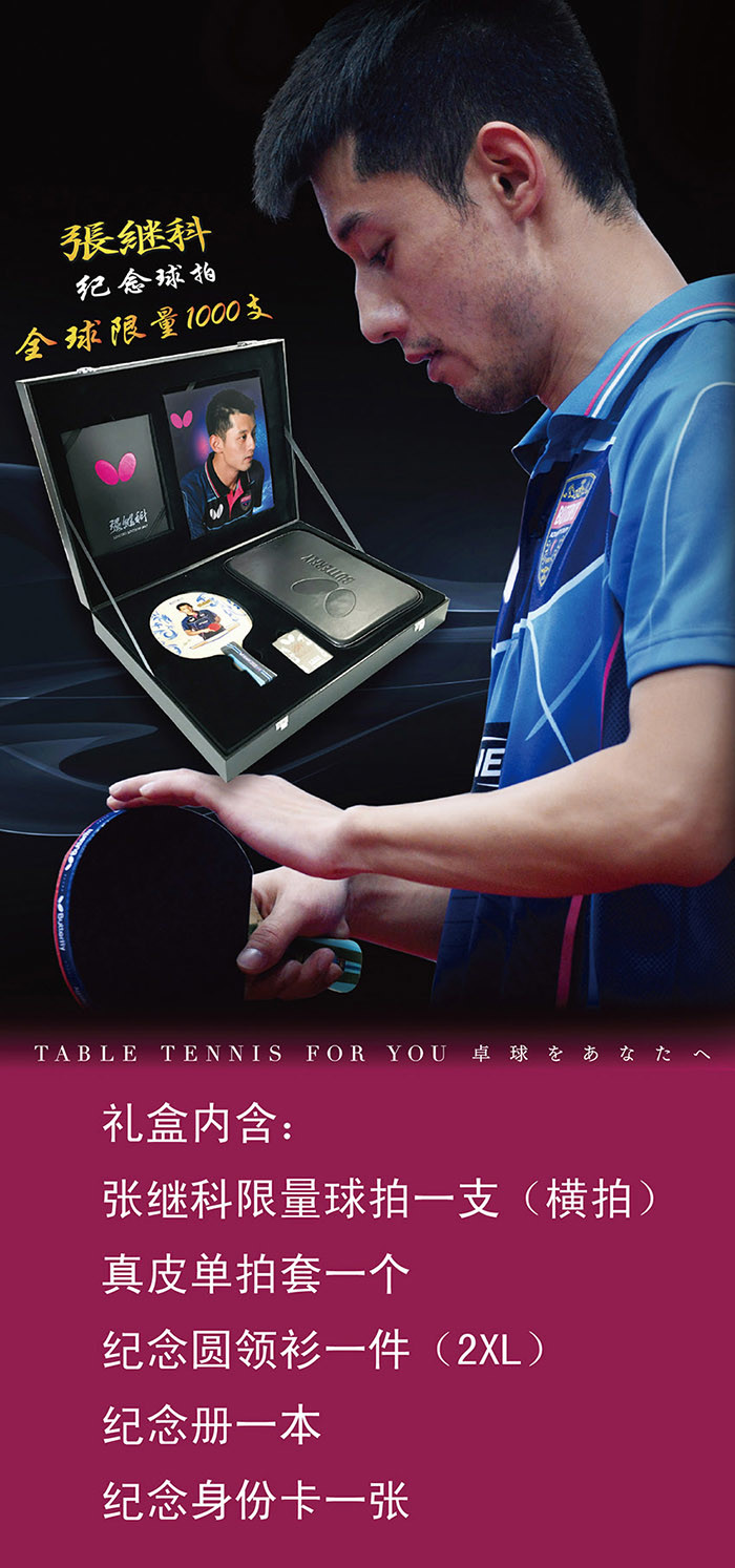 商品名称:蝴蝶BUTTERFLY 2017张继科限量纪念球拍礼盒(横板FL柄) 全球限量发售 先抢先得 极具收藏价值!!!