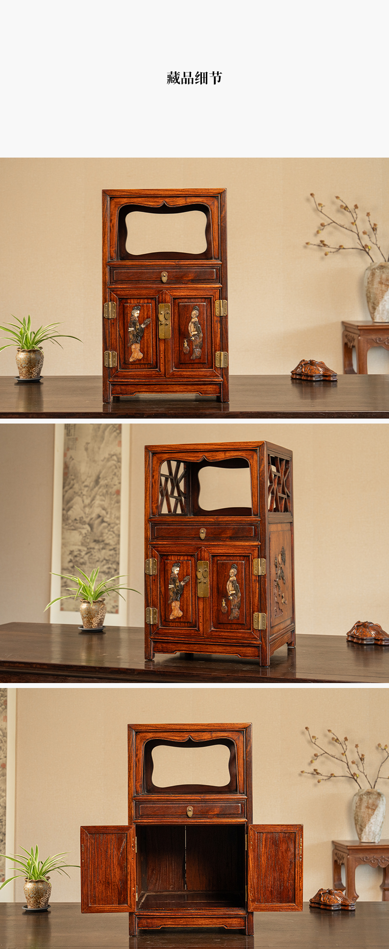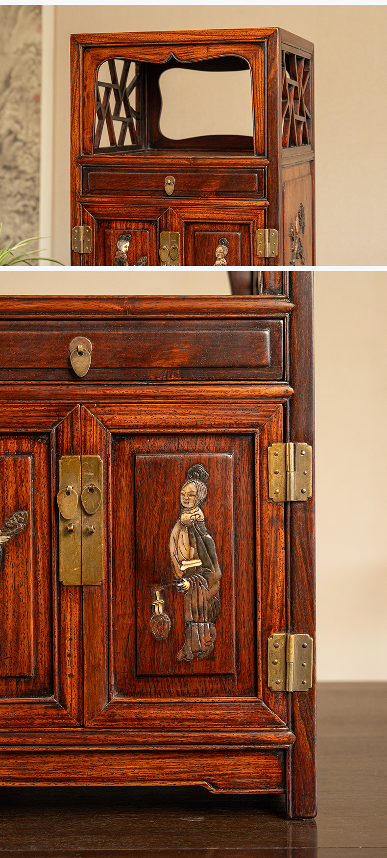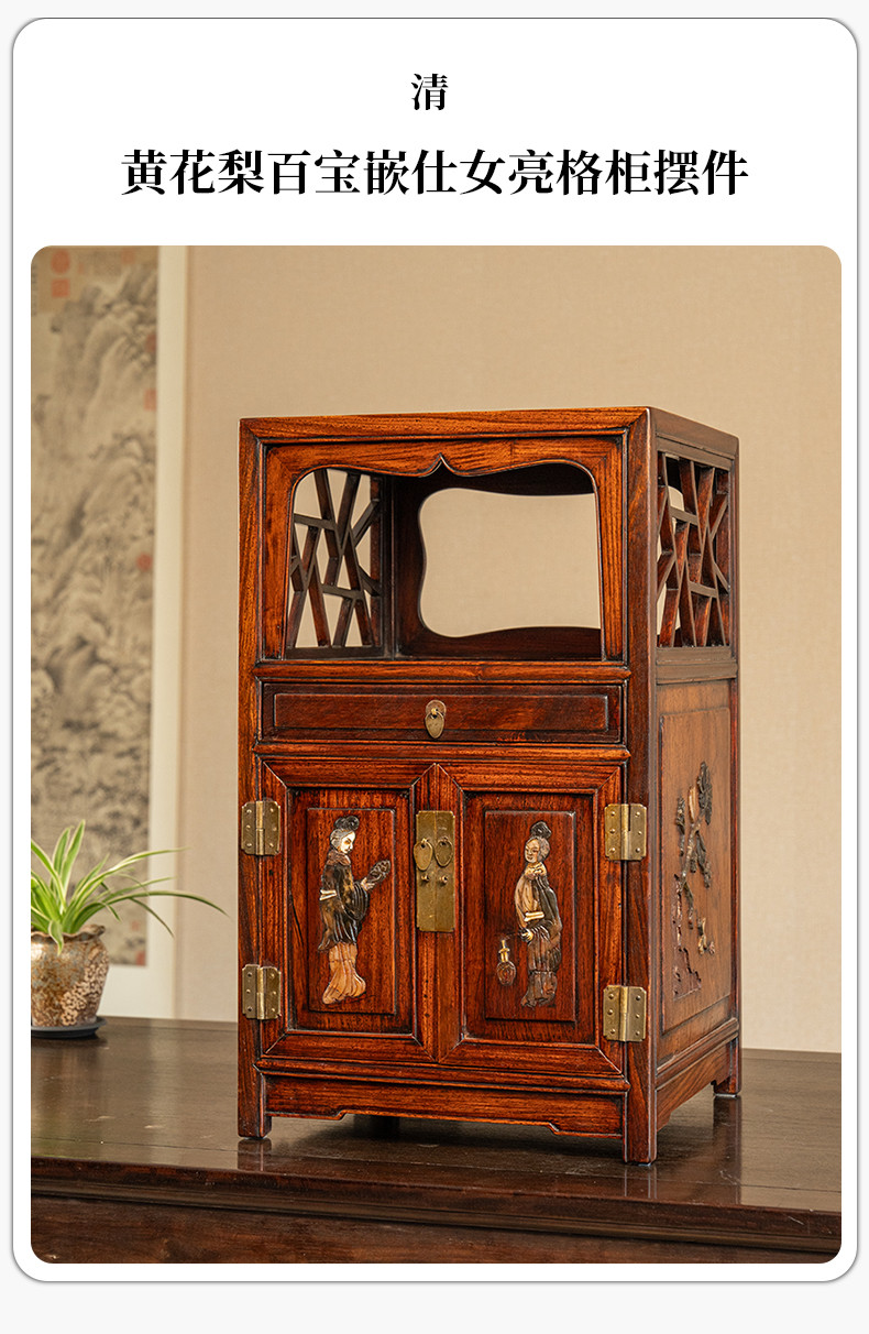 清 黄花梨百宝嵌仕女亮格柜摆件