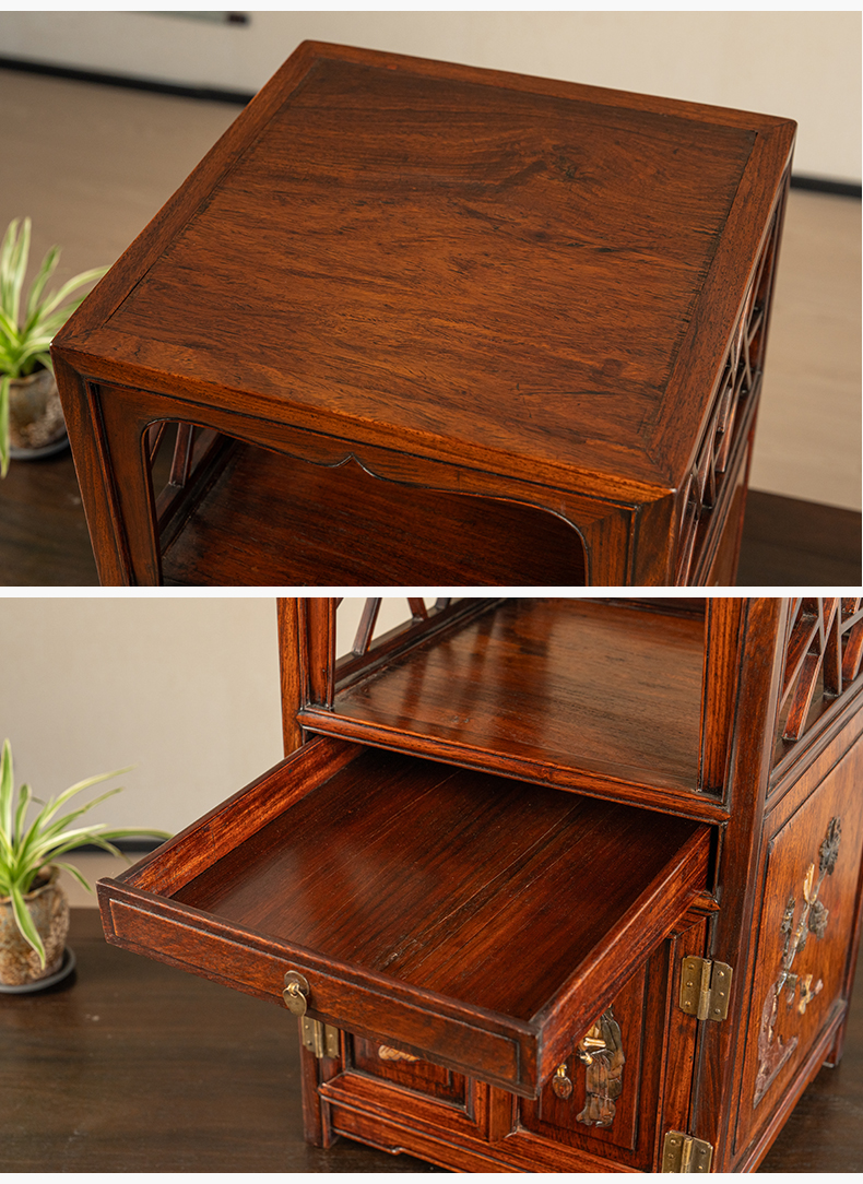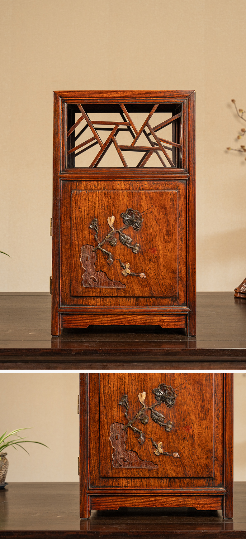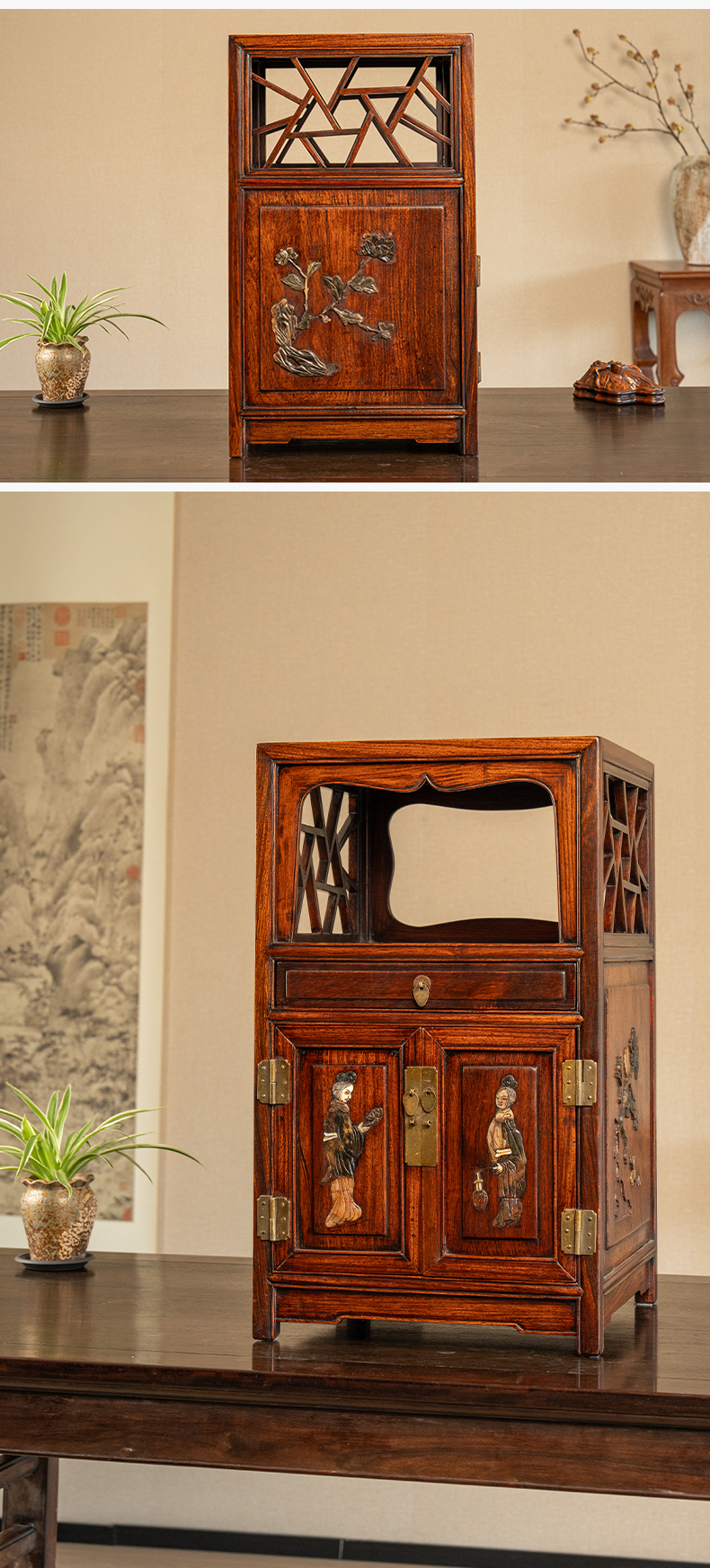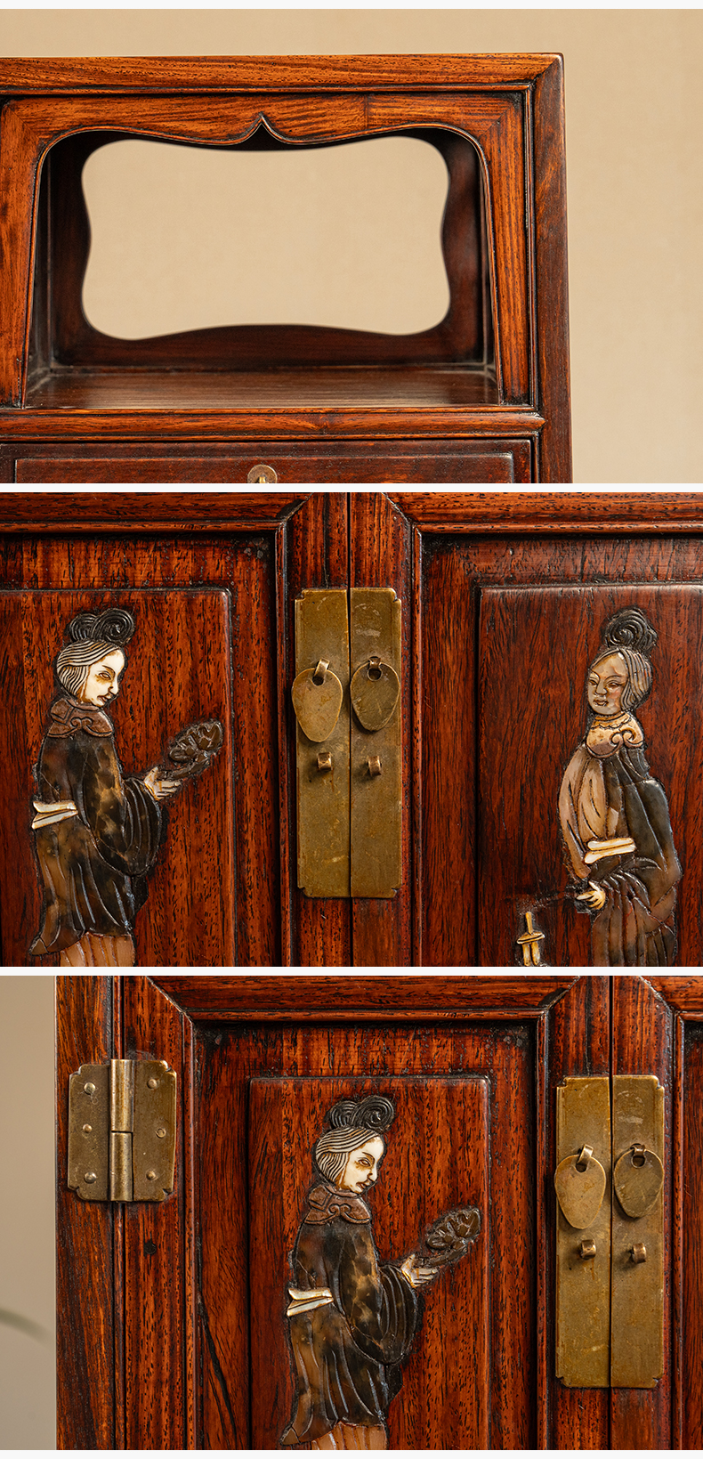 清 黄花梨百宝嵌仕女亮格柜摆件
